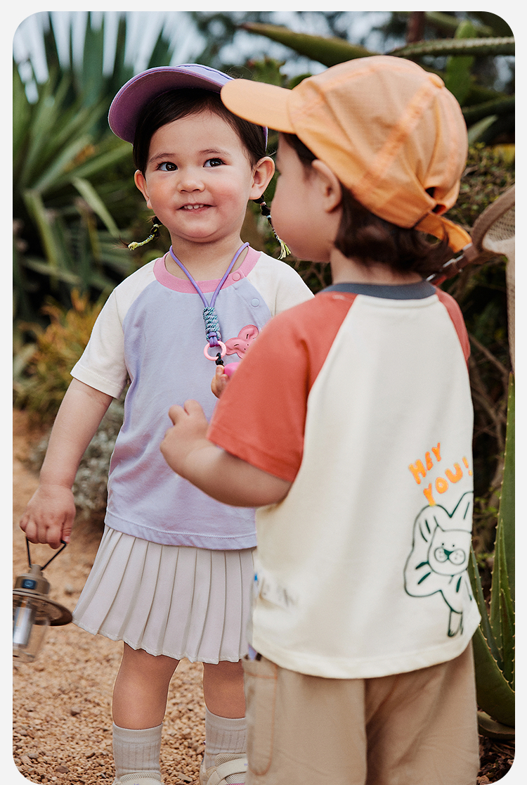 【纯棉亲肤T恤】迷你巴拉男女童不易变形撞色萌趣短袖T恤夏