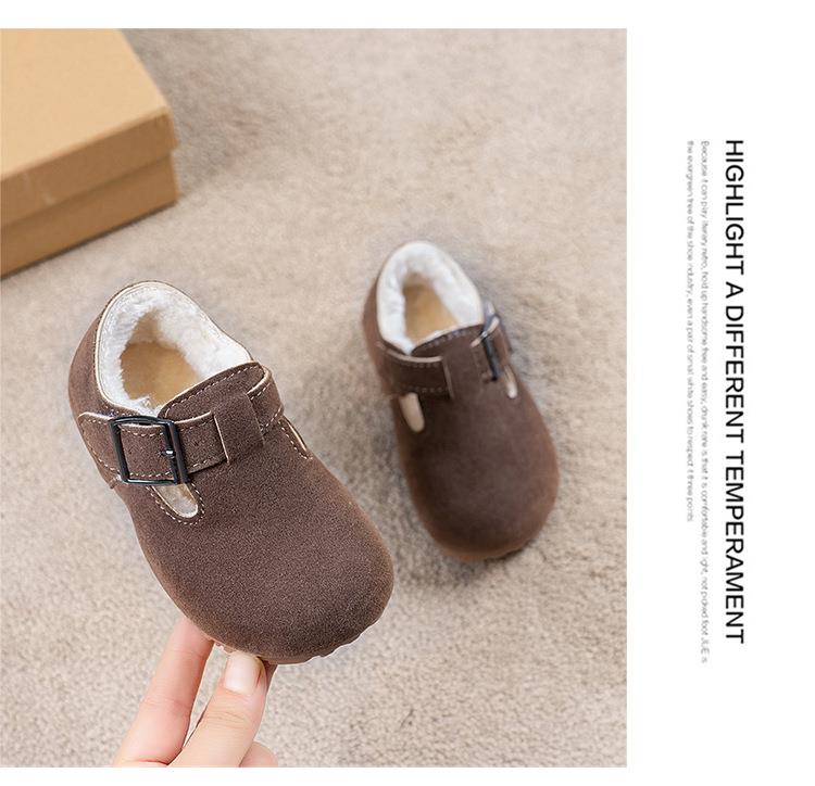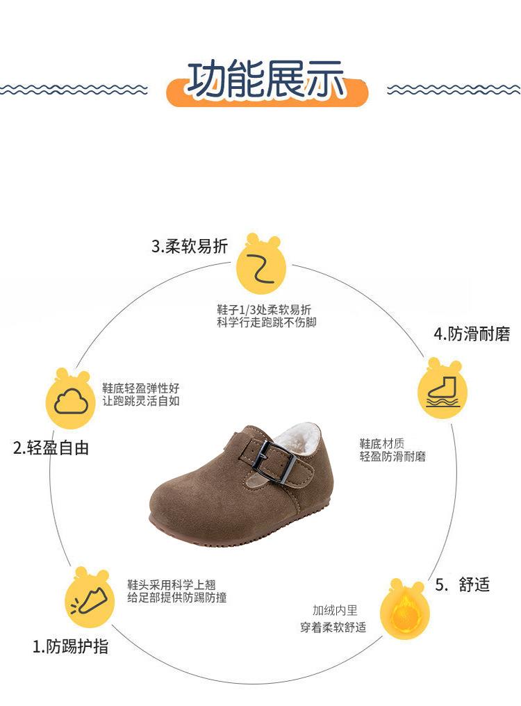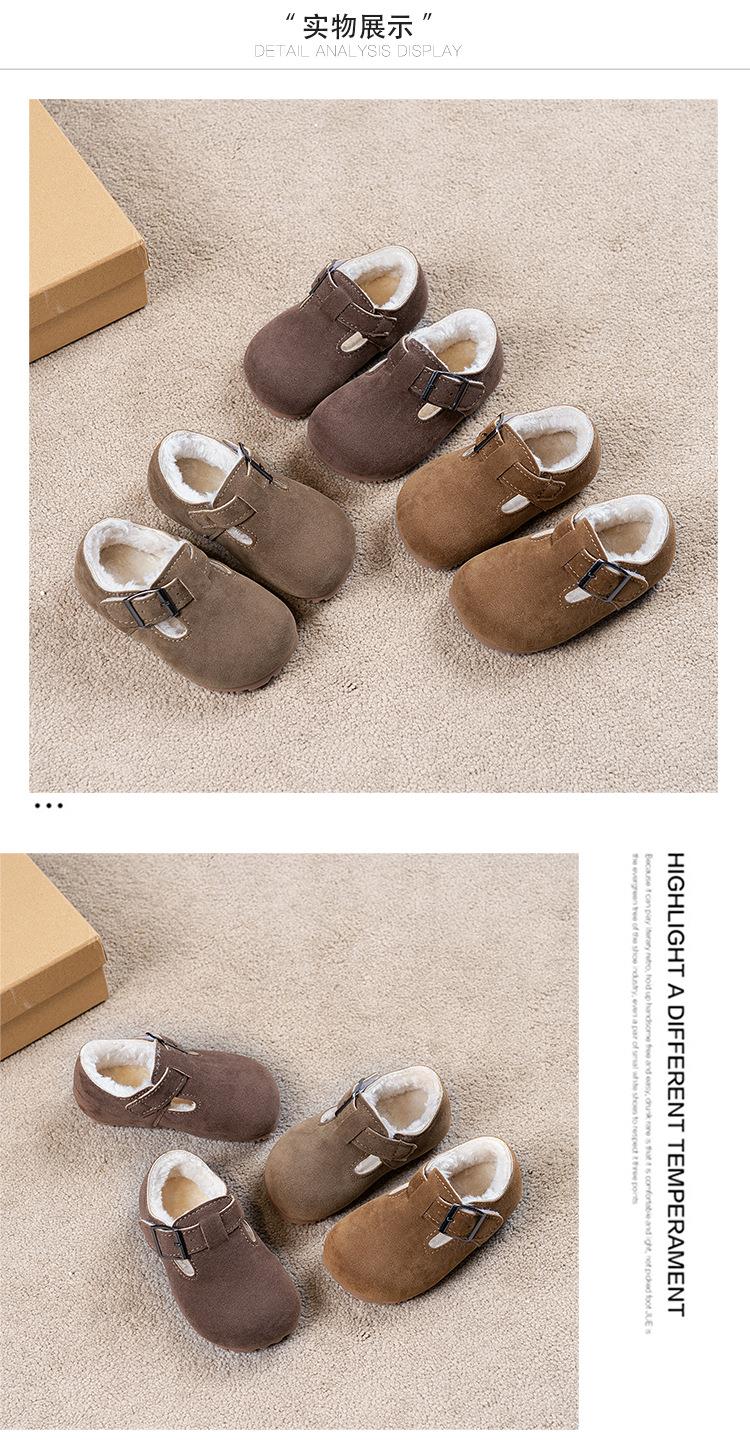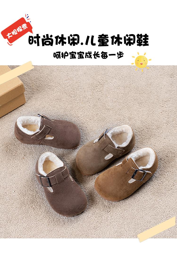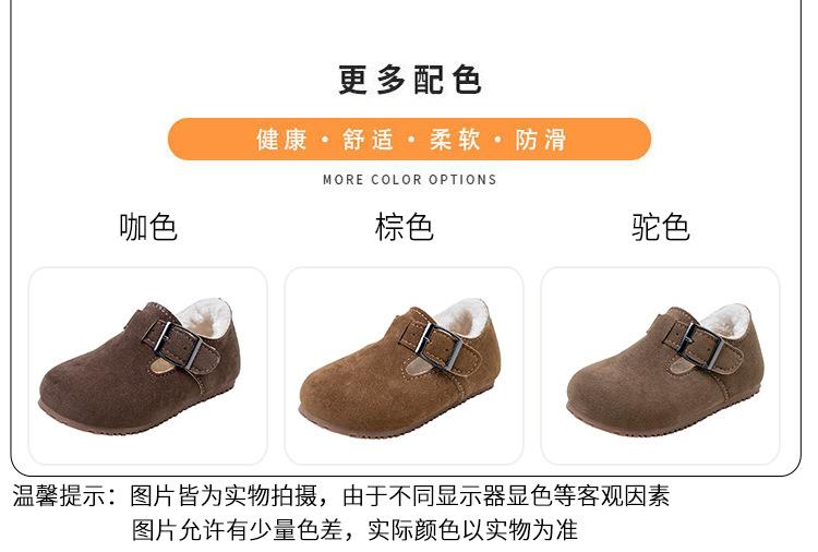 九峰鸟秋冬季新款儿童勃肯鞋小童单鞋软底女宝宝加绒豆豆鞋女童皮鞋24-36