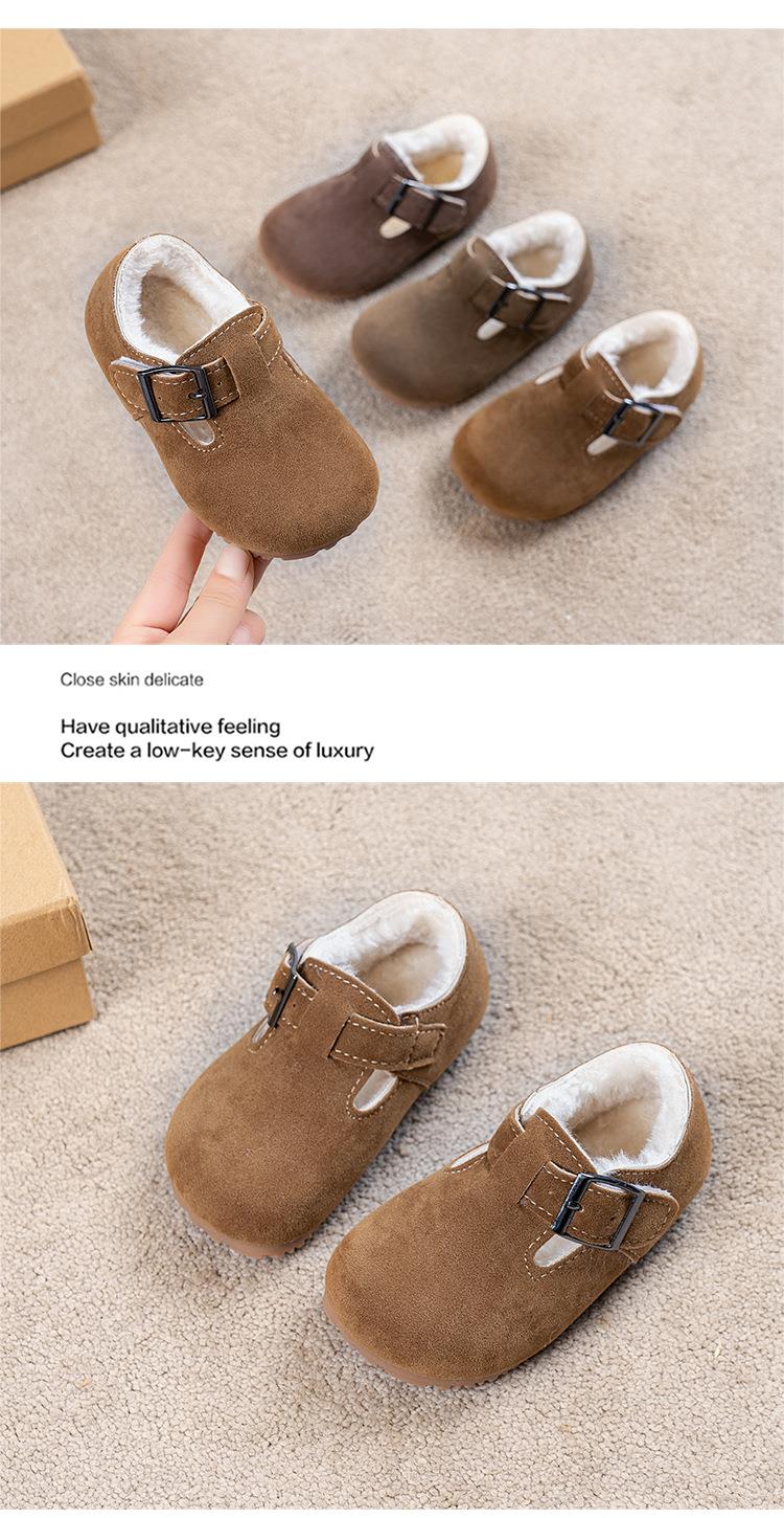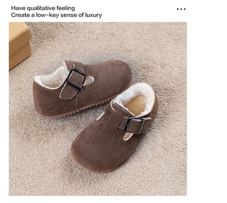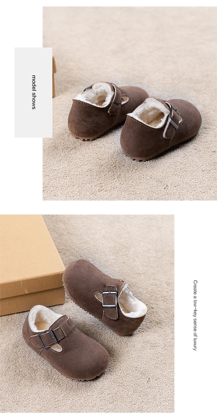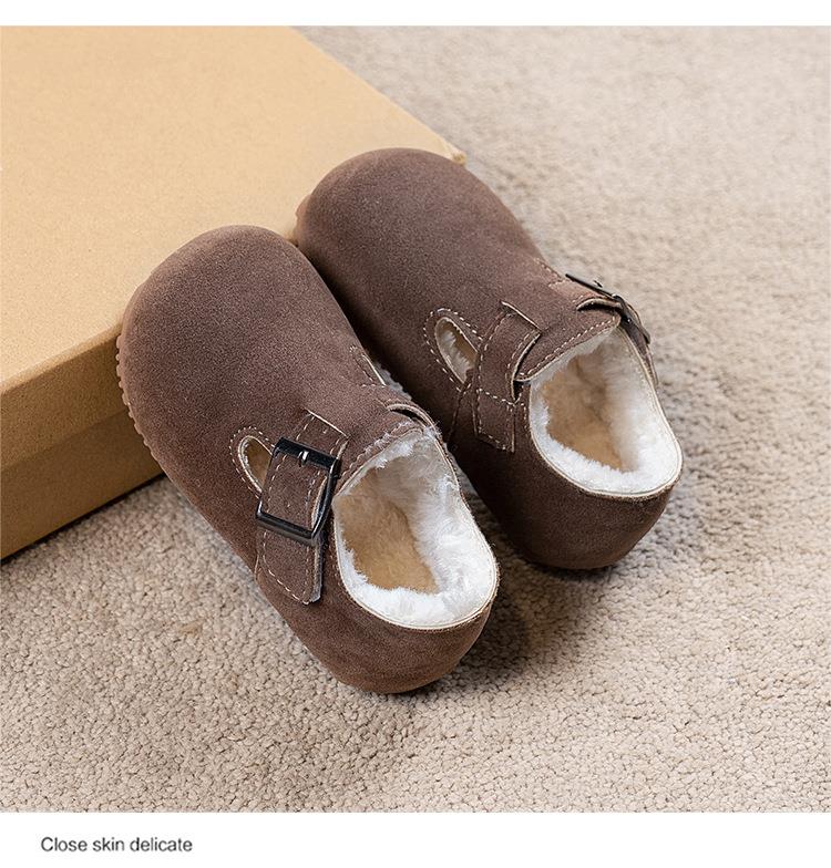 九峰鸟秋冬季新款儿童勃肯鞋小童单鞋软底女宝宝加绒豆豆鞋女童皮鞋24-36