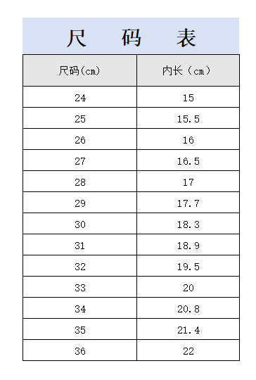 | 尺码: | 24-36详见尺码表 该款鞋子相对标准码偏小,建议拍大一码 | |
