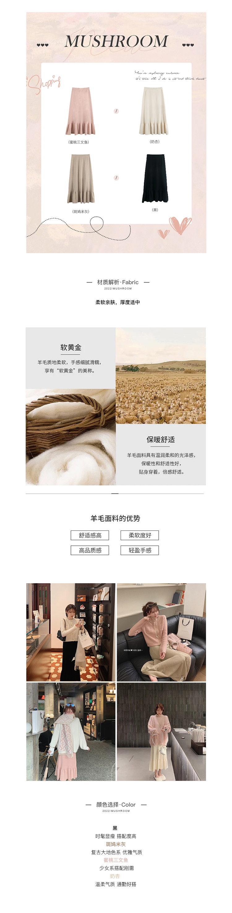 金蘑菇菇 不用力精致 美人鱼裙裙 / 不显胯 休闲针织鱼尾半裙