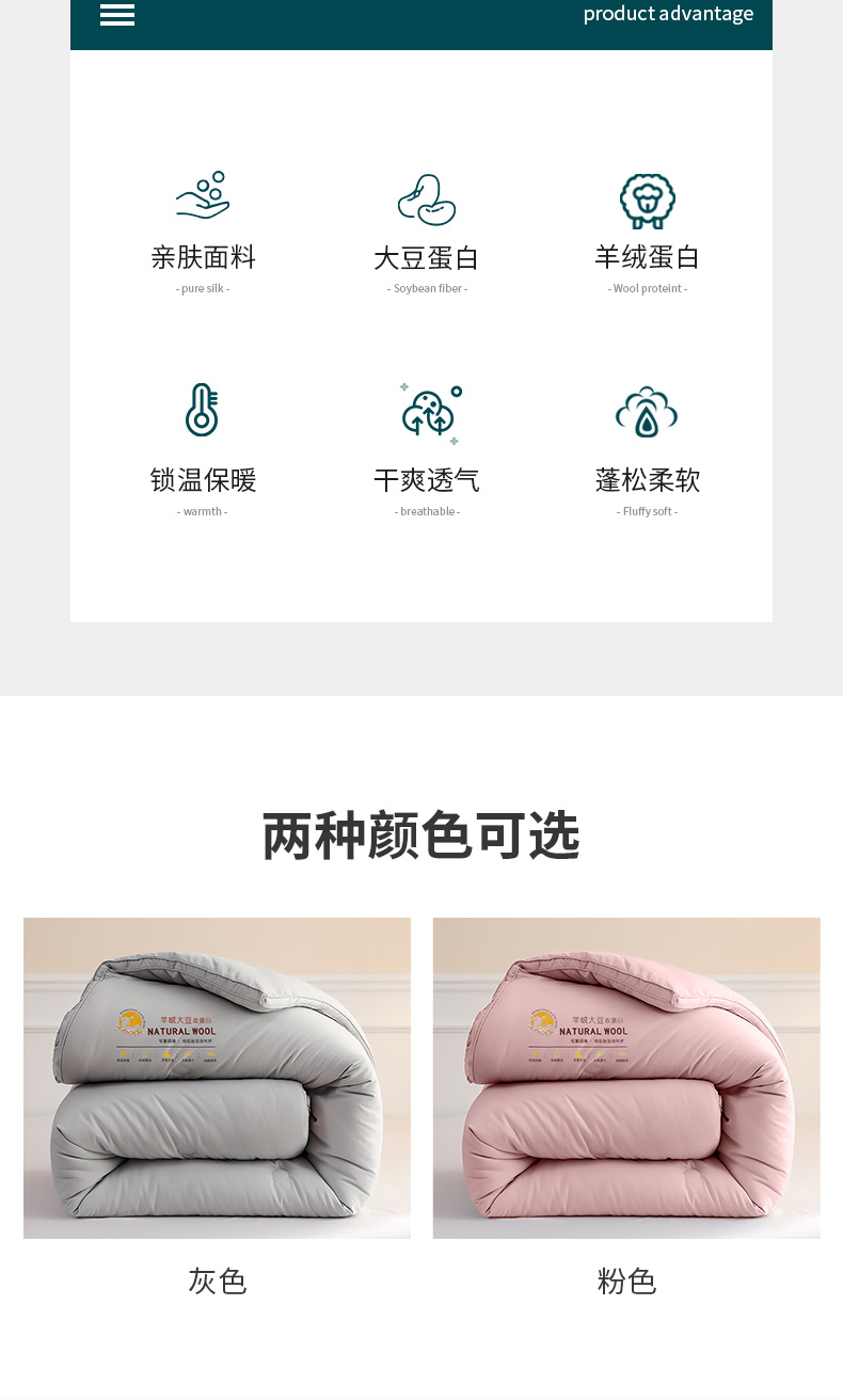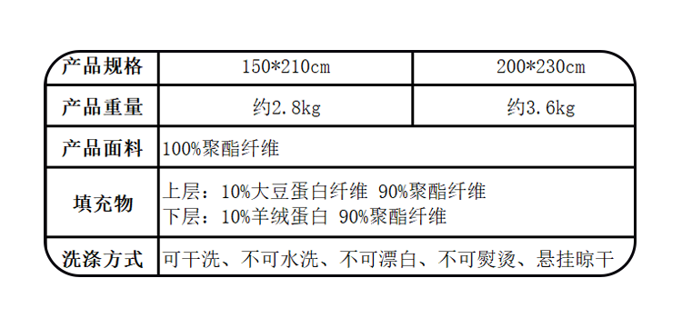 【品牌直发】加倍生活 羊绒大豆双蛋白冬被 亲肤柔软 透气保暖