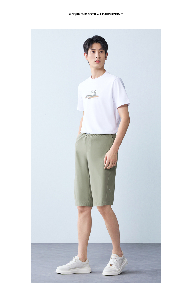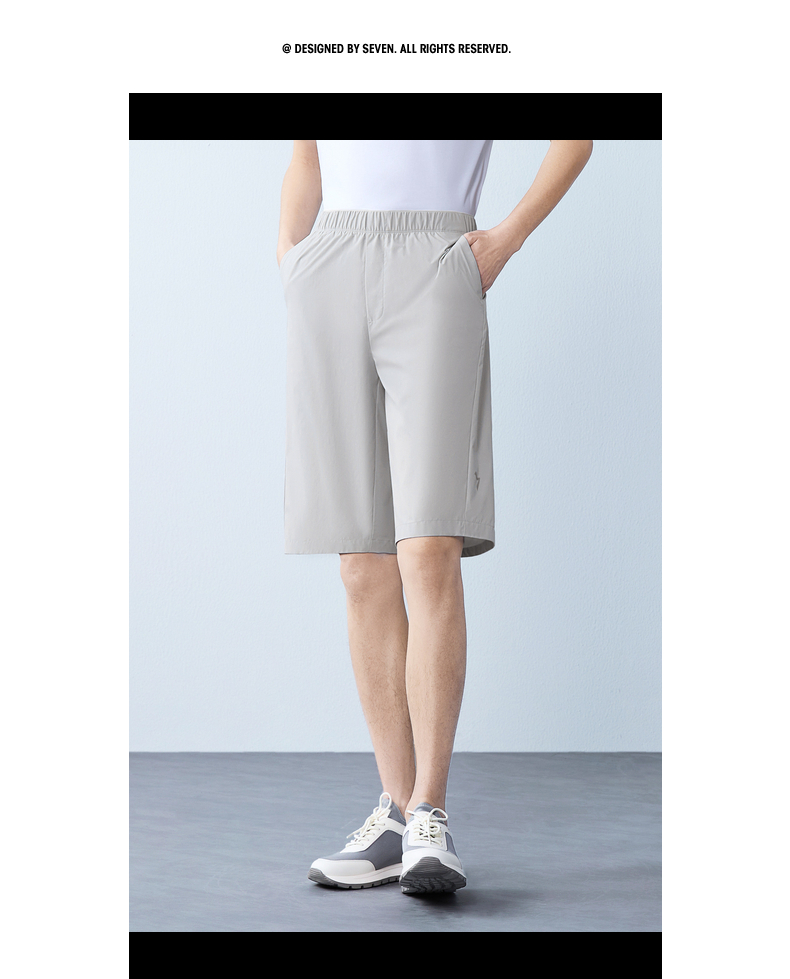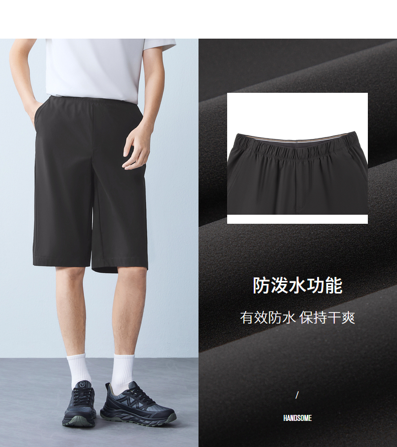 【防泼水】柒牌男装2026夏季新品宽松五分轻薄提花松紧腰便装短裤 130H70070