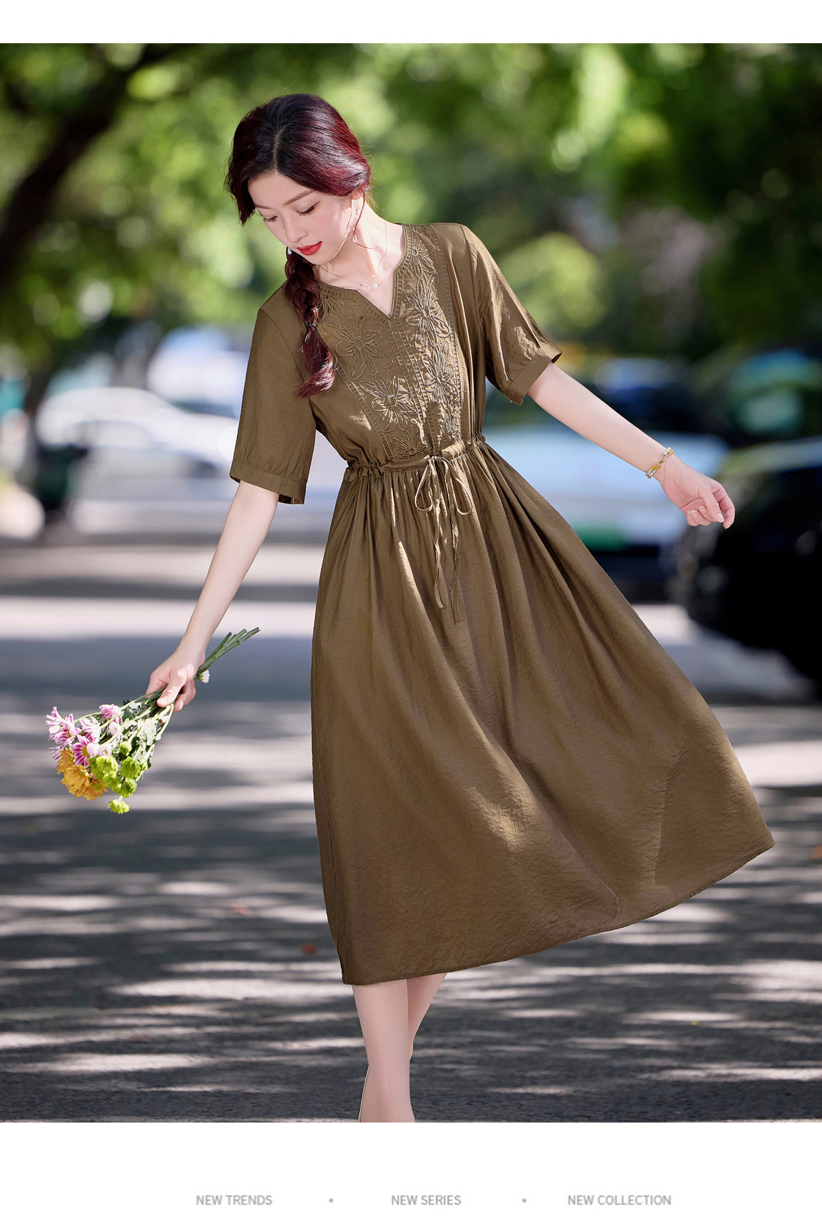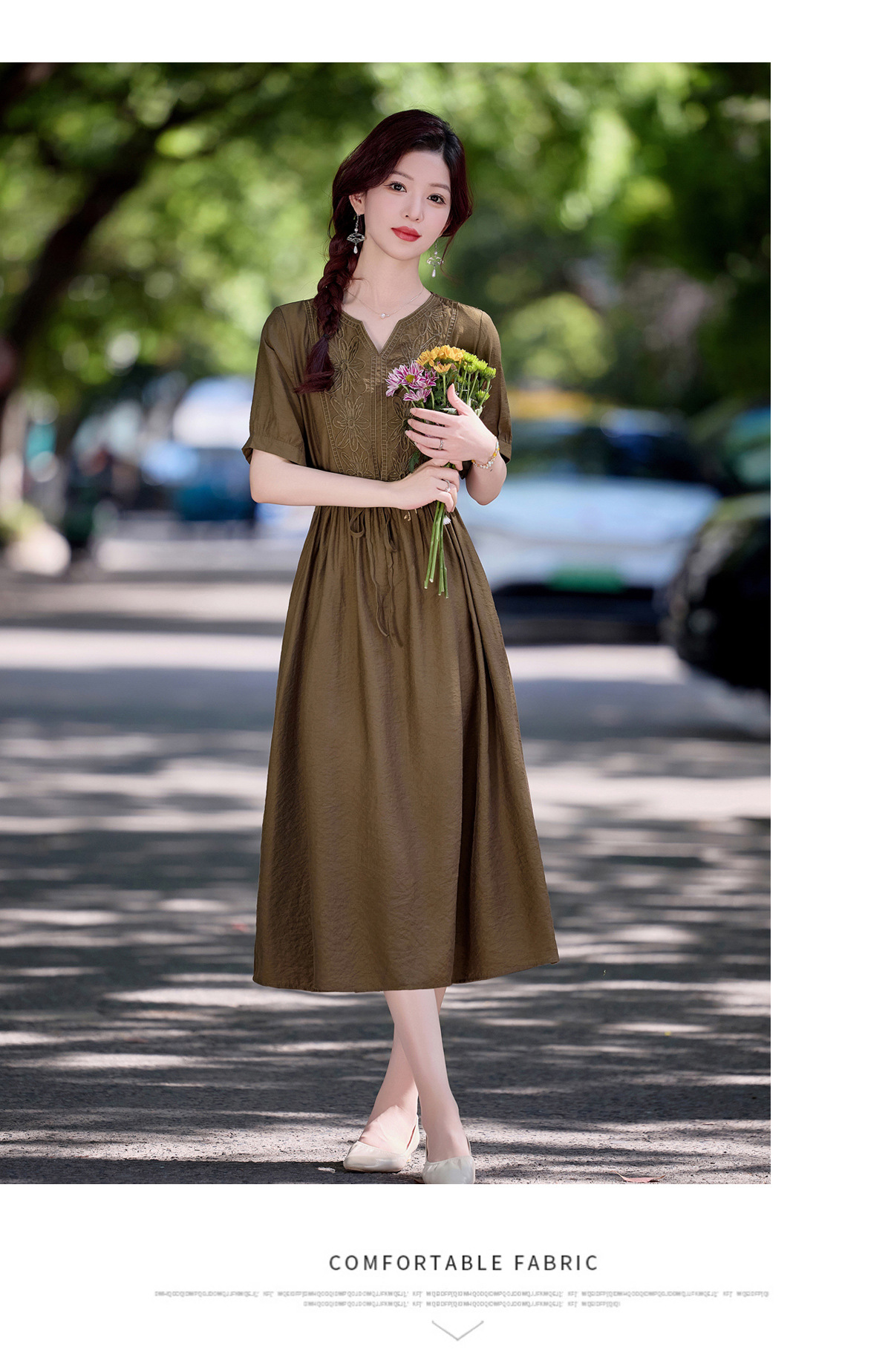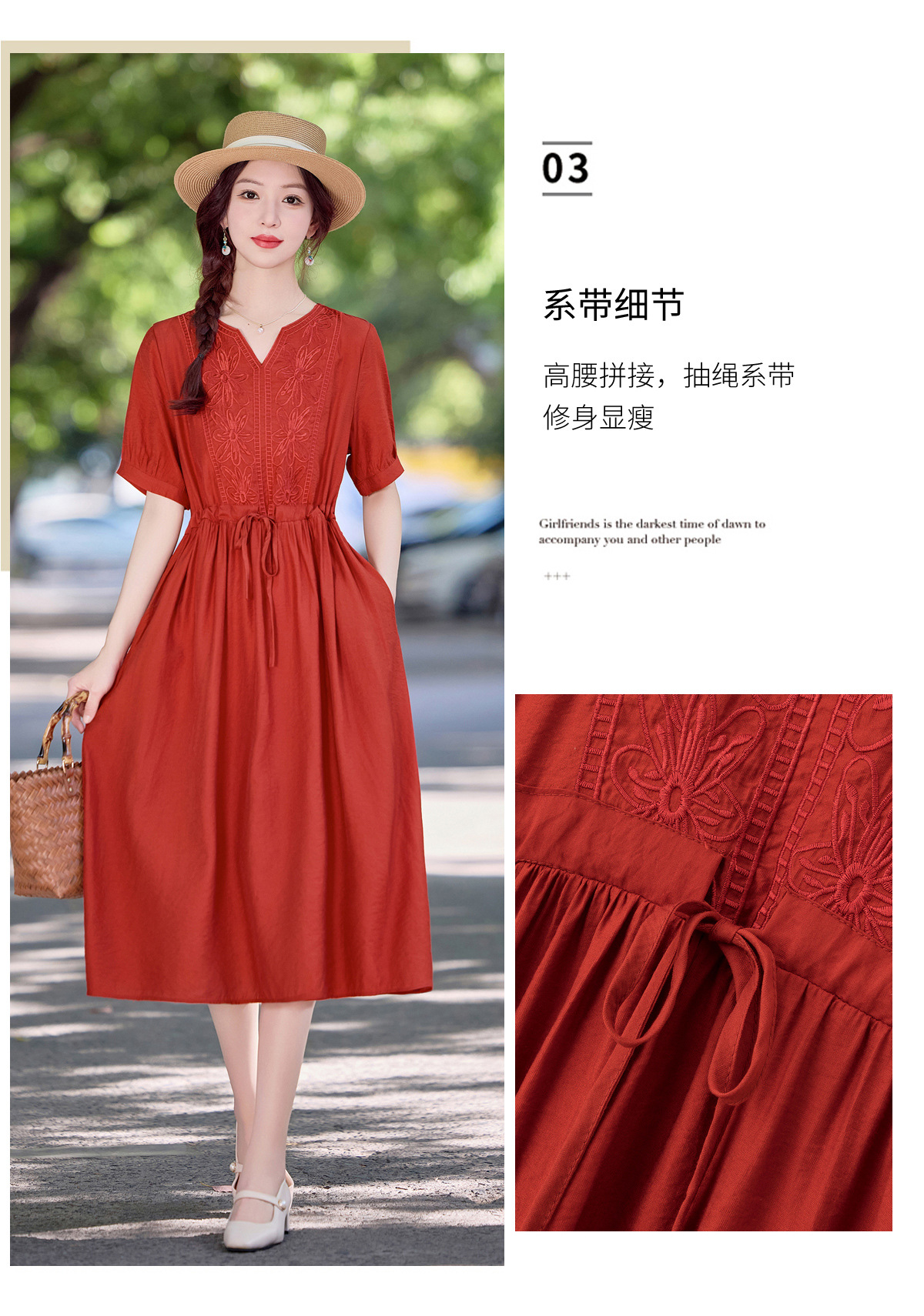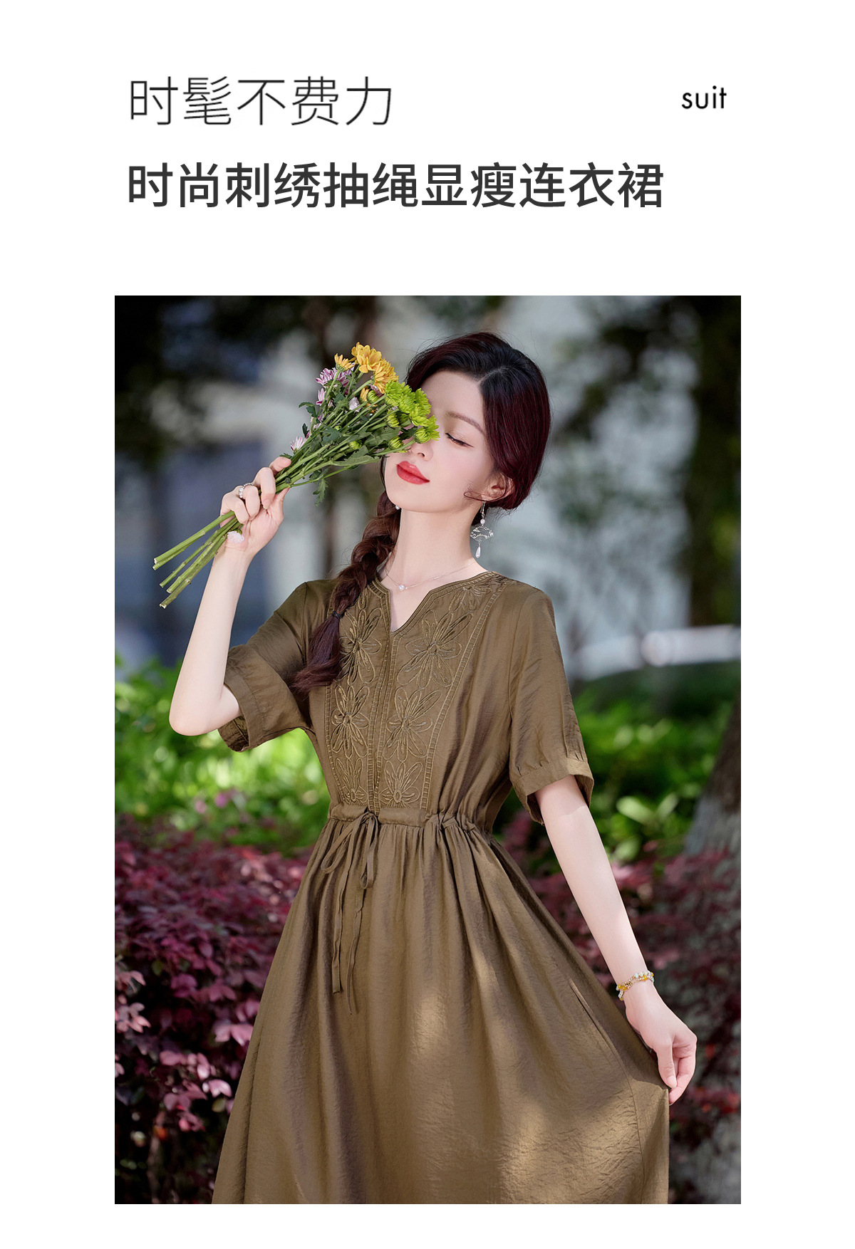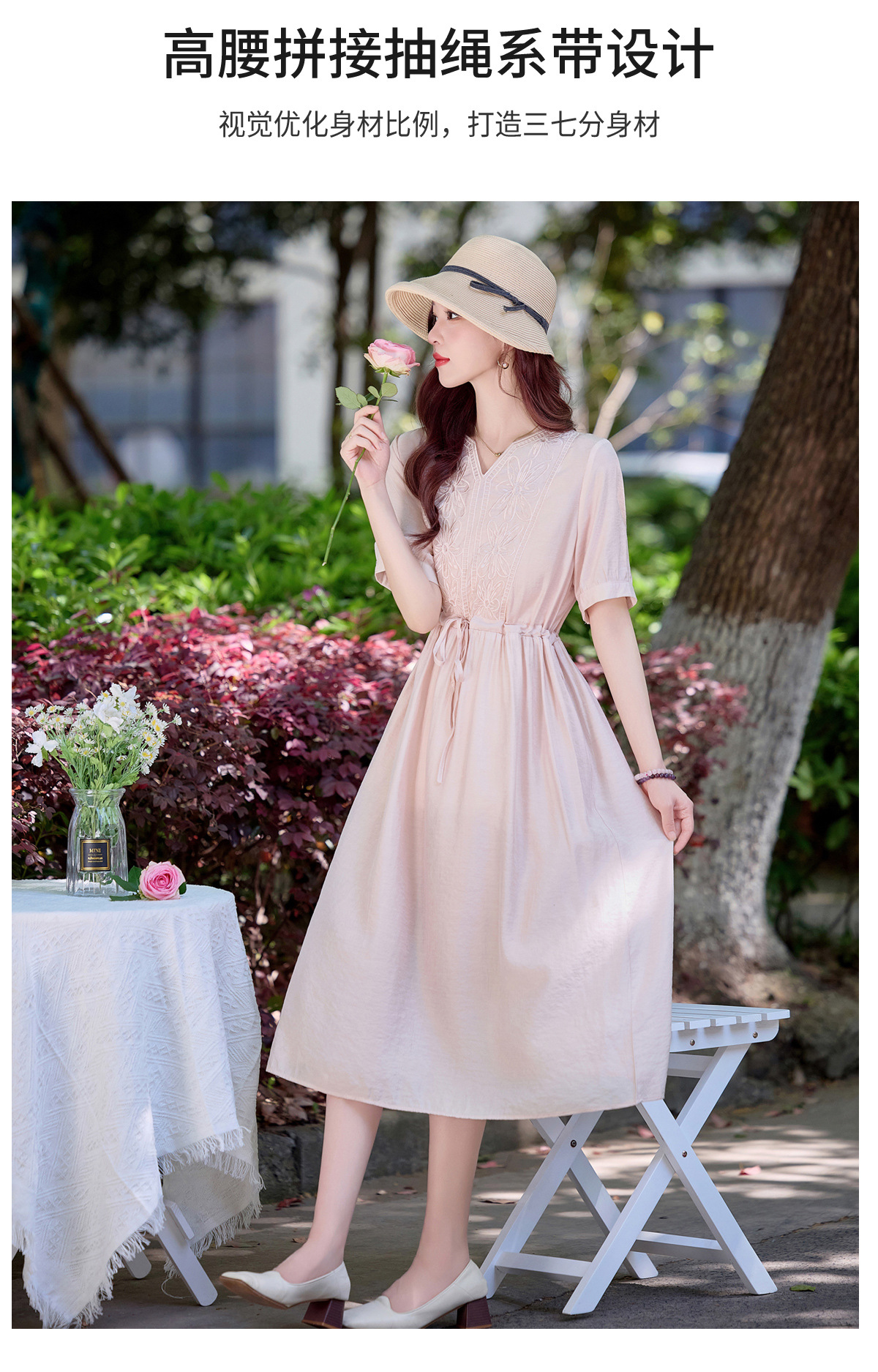 高级感刺绣V领天丝棉麻连衣裙MY2597