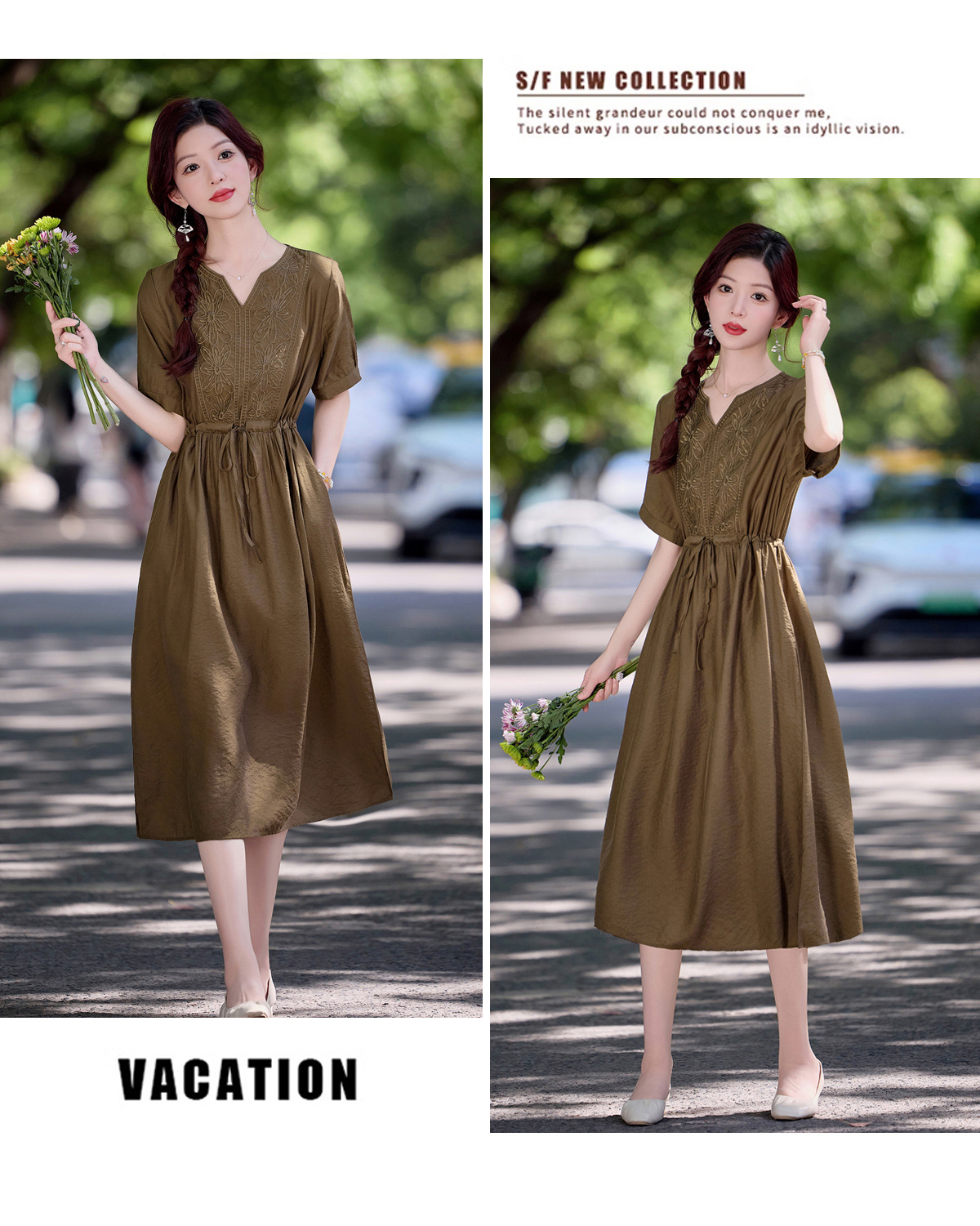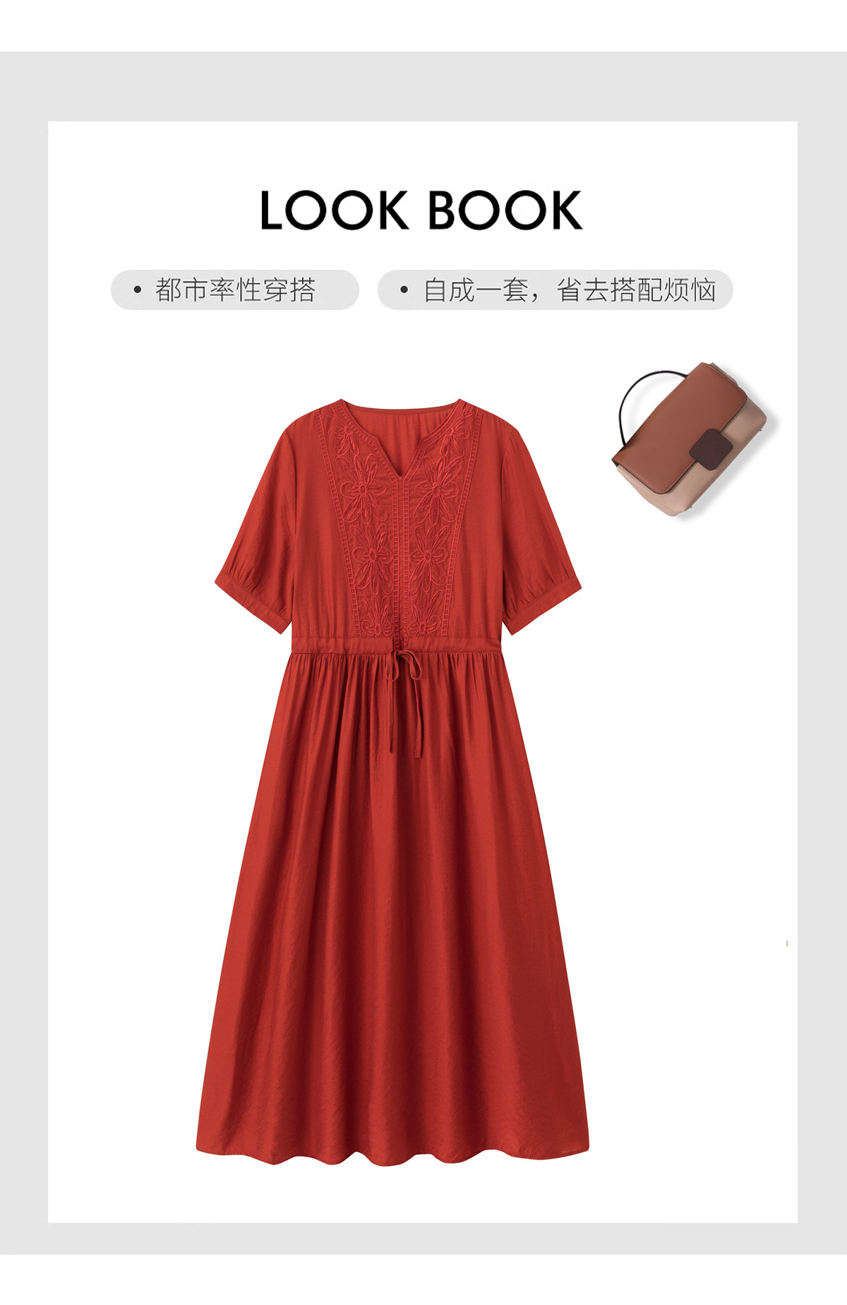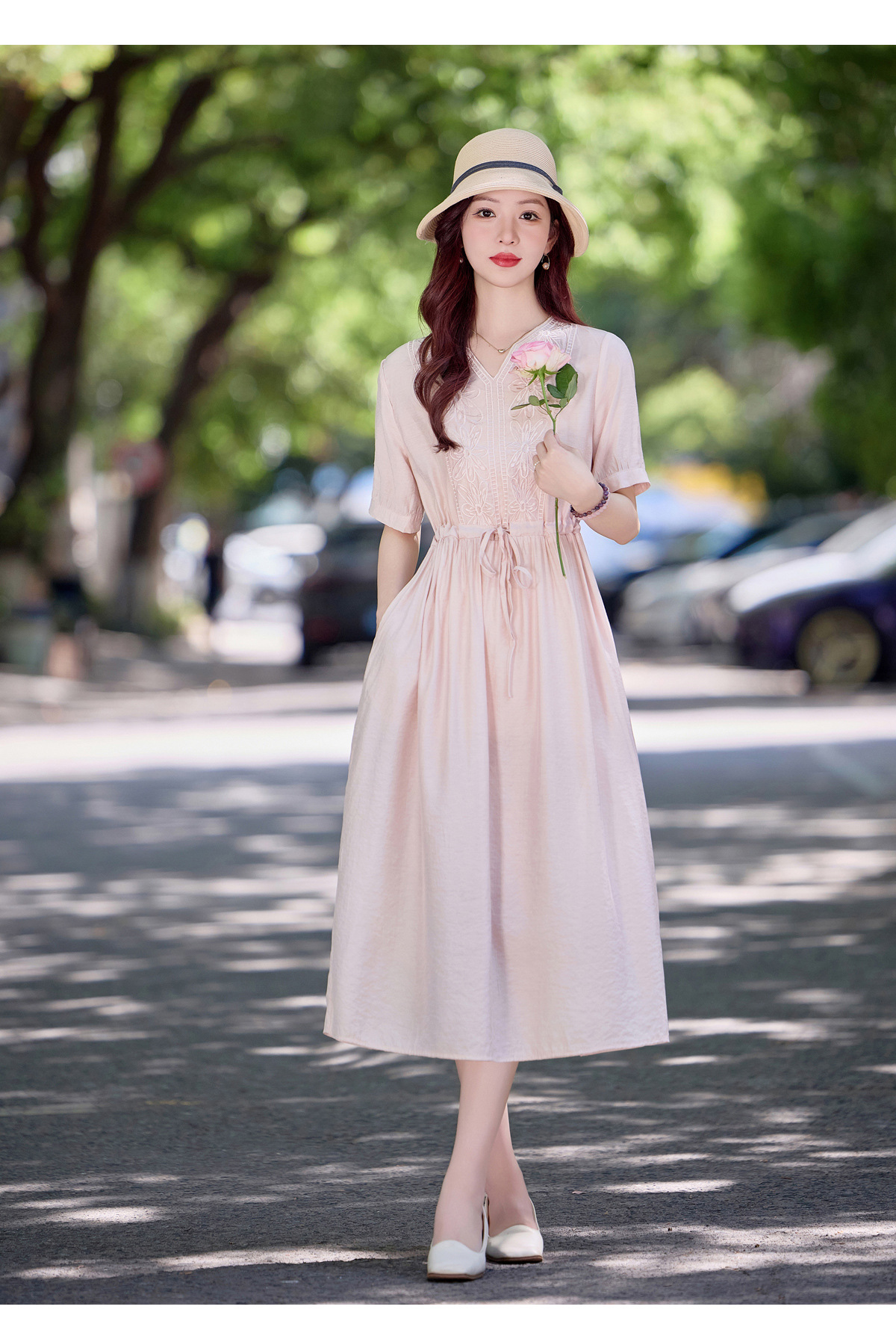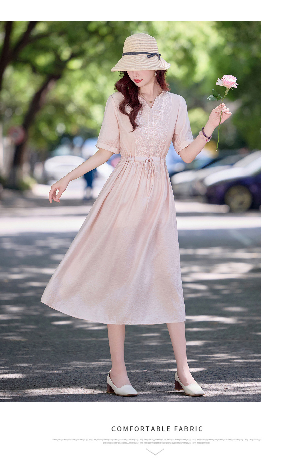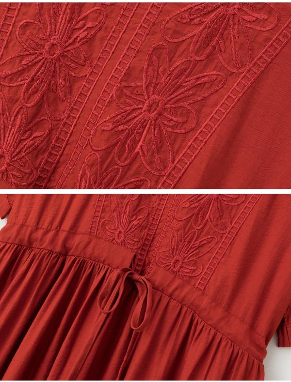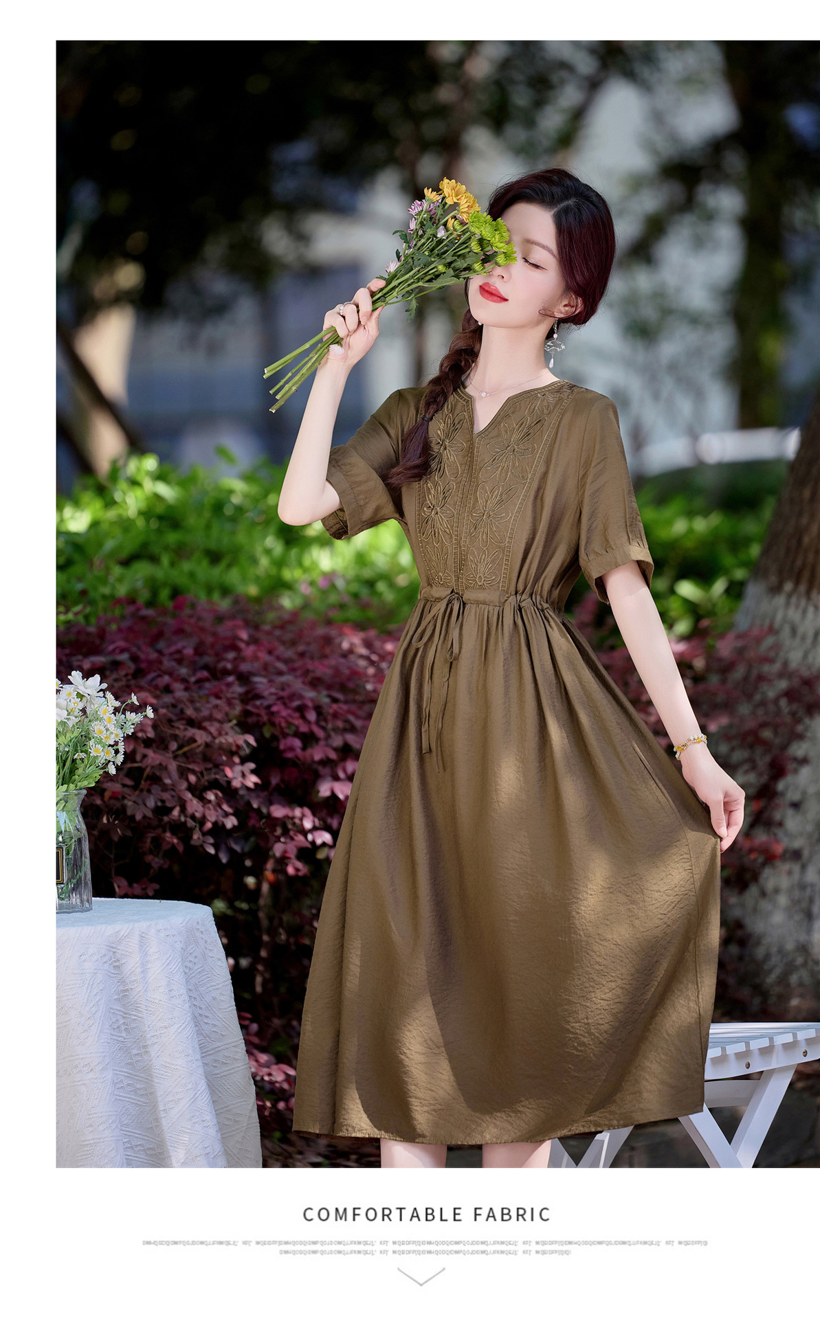 高级感刺绣V领天丝棉麻连衣裙MY2597