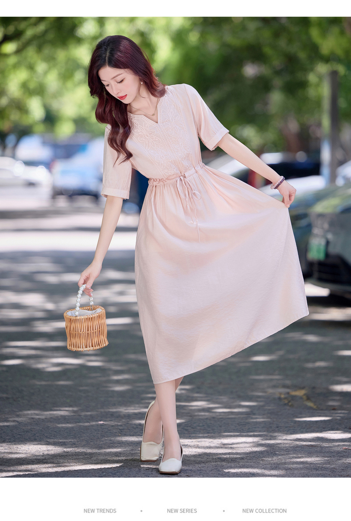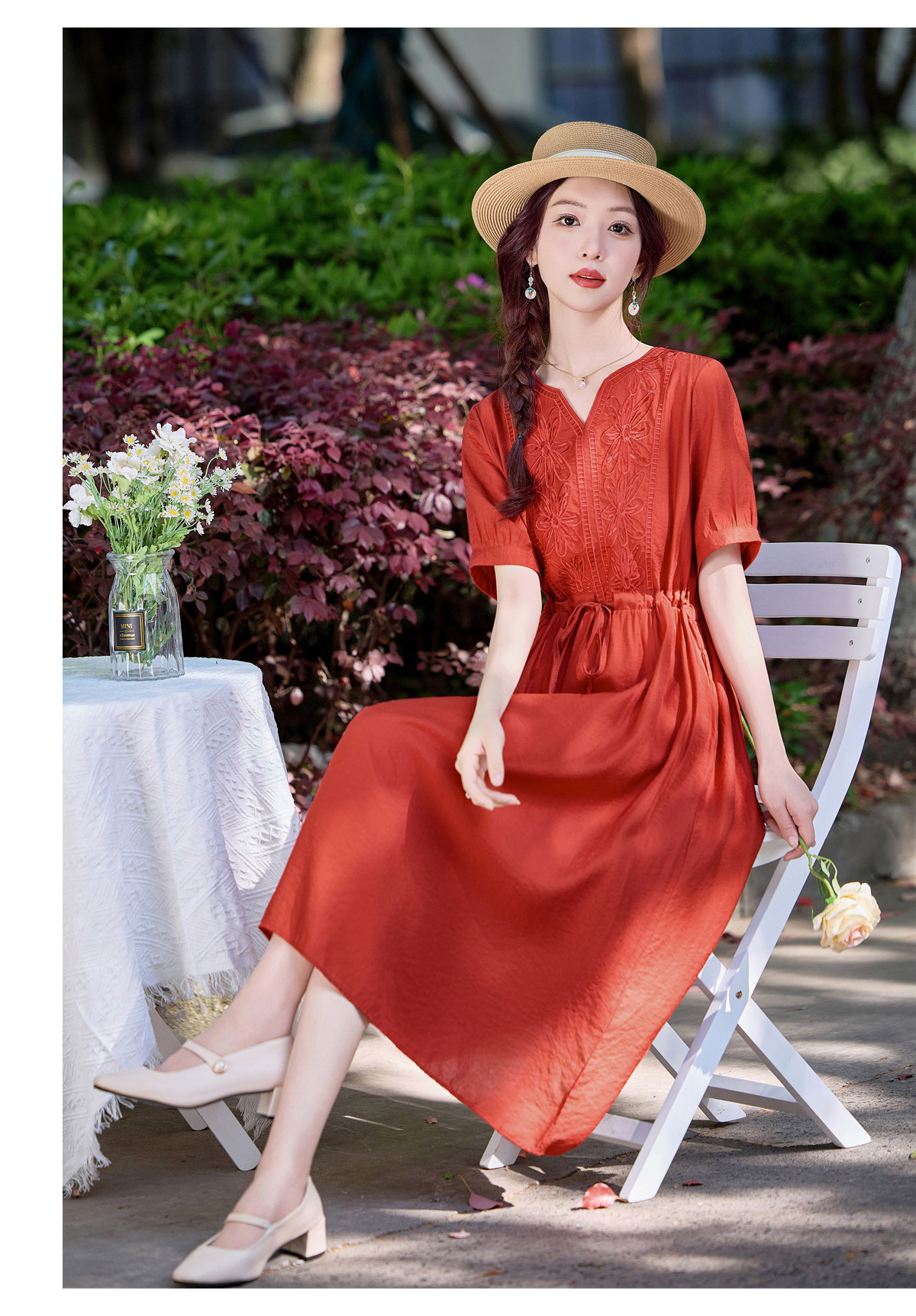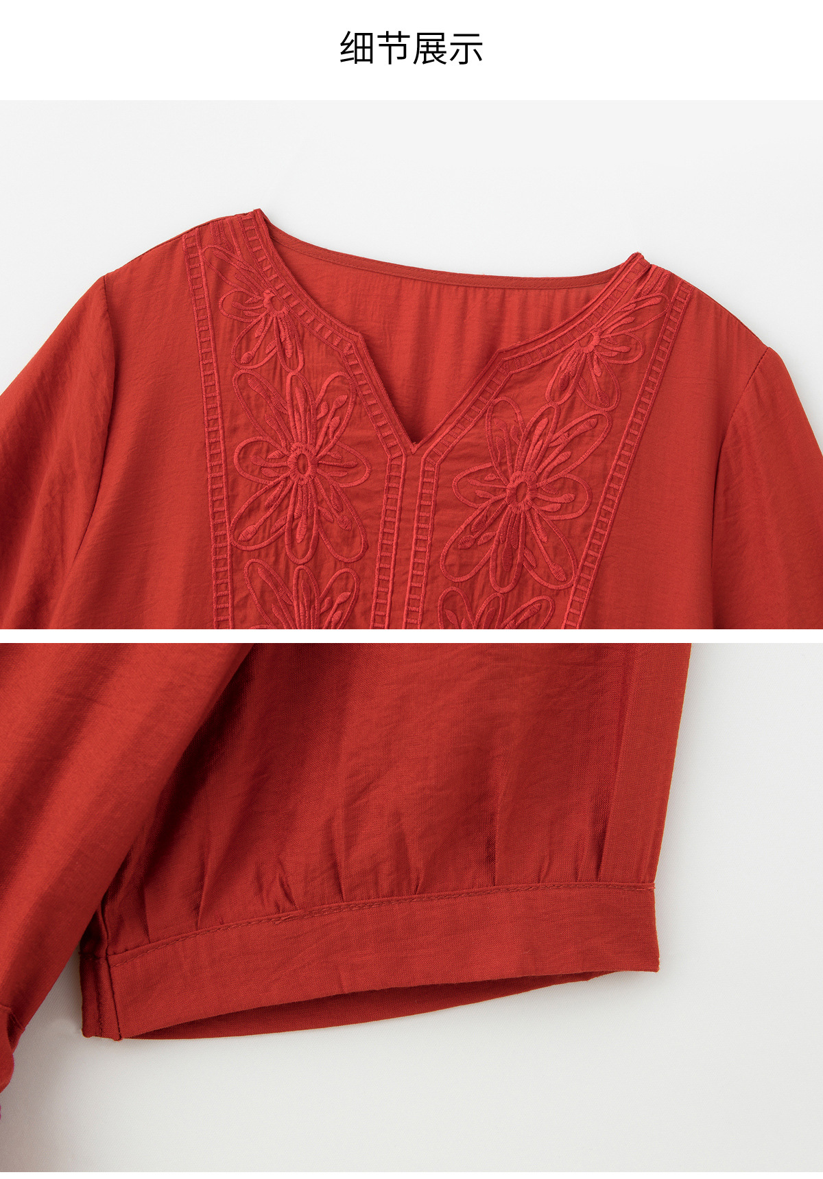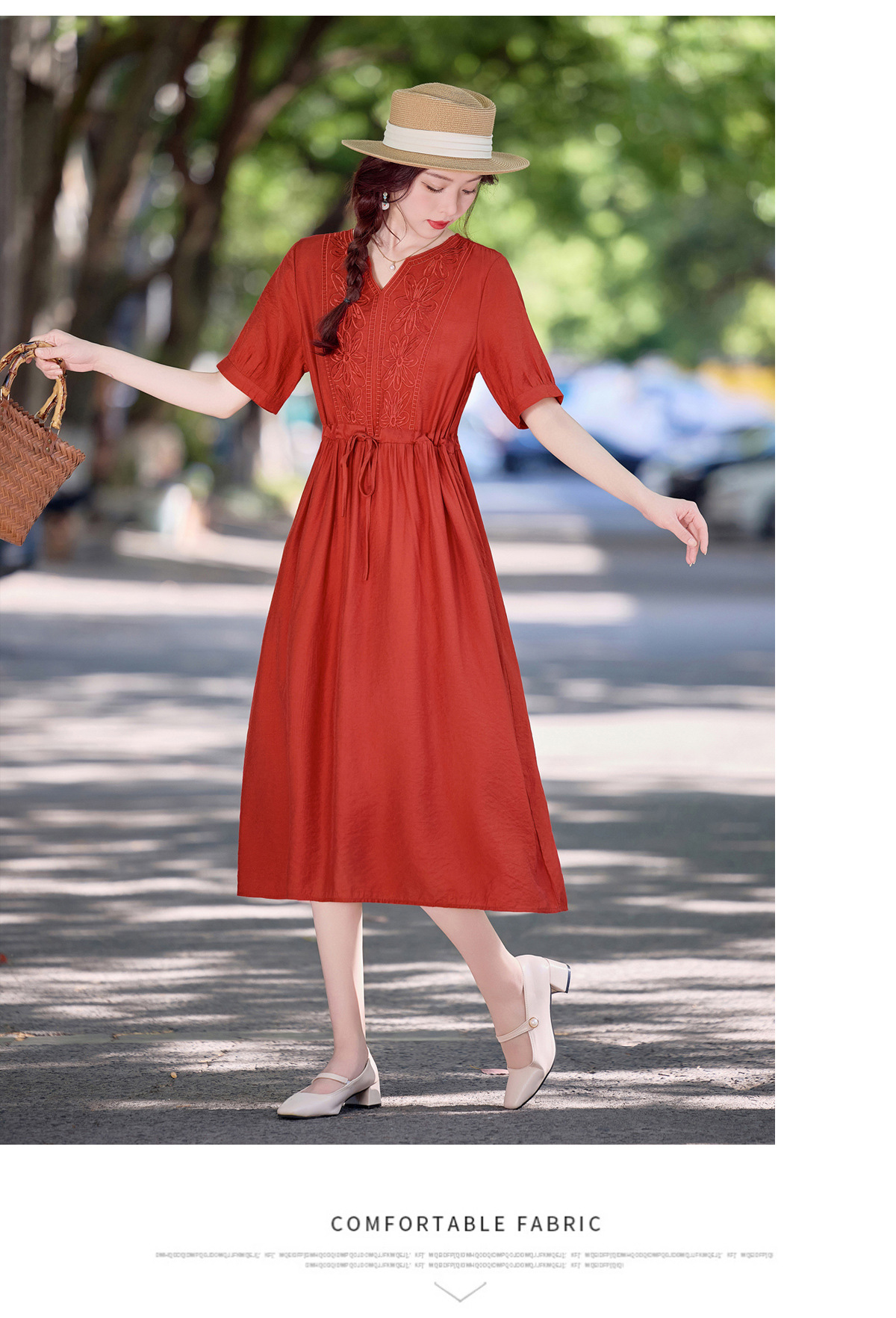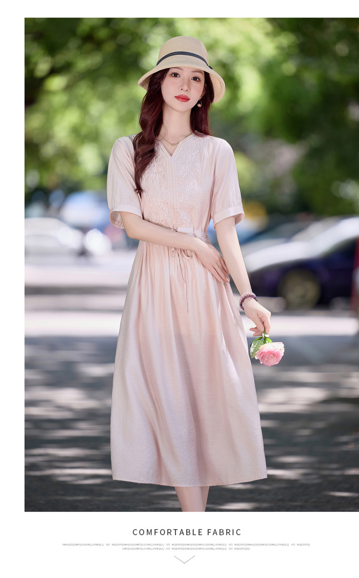 高级感刺绣V领天丝棉麻连衣裙MY2597