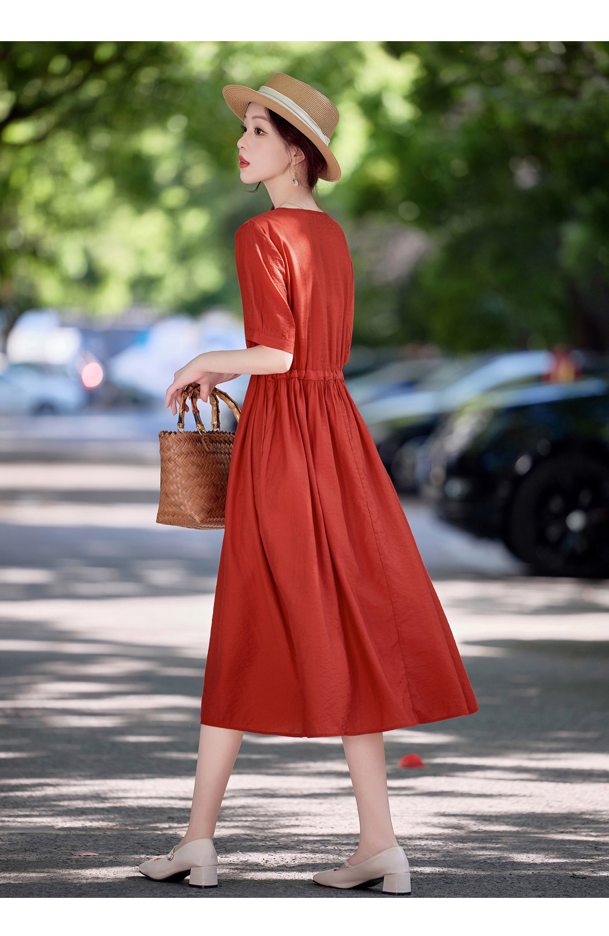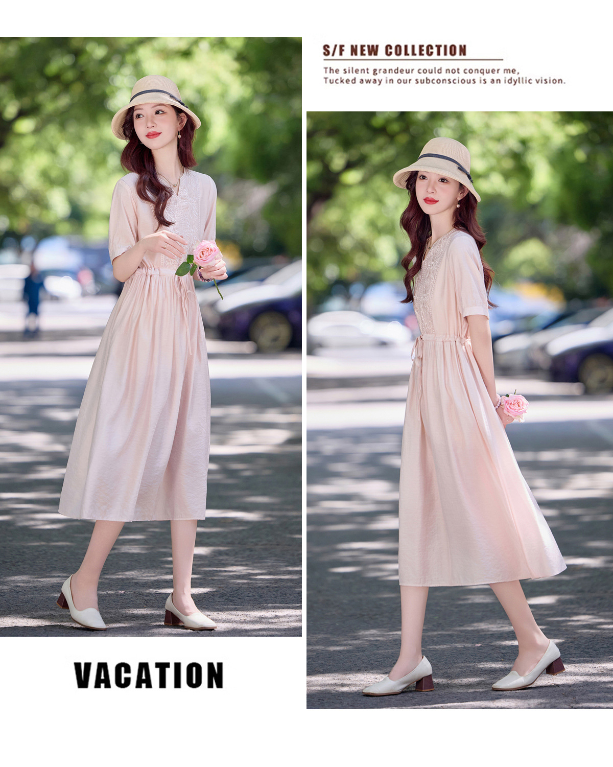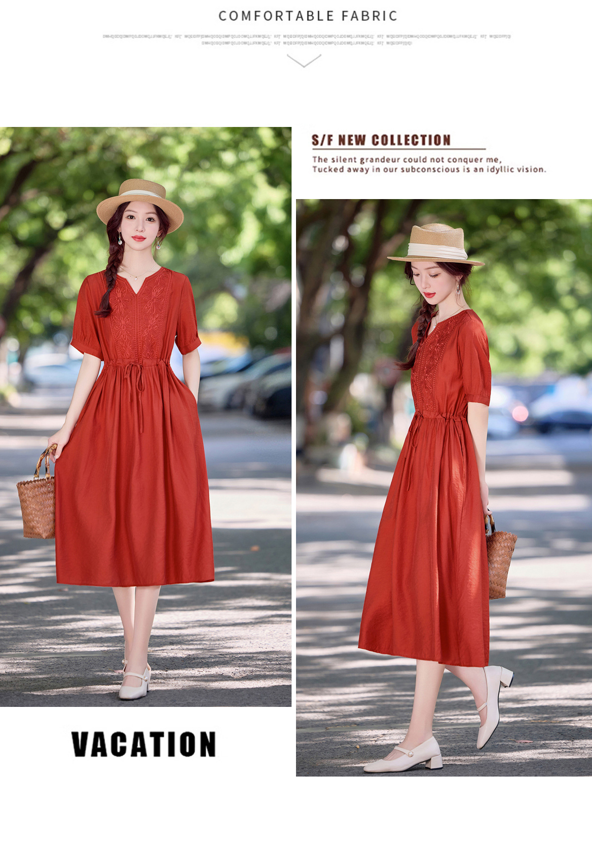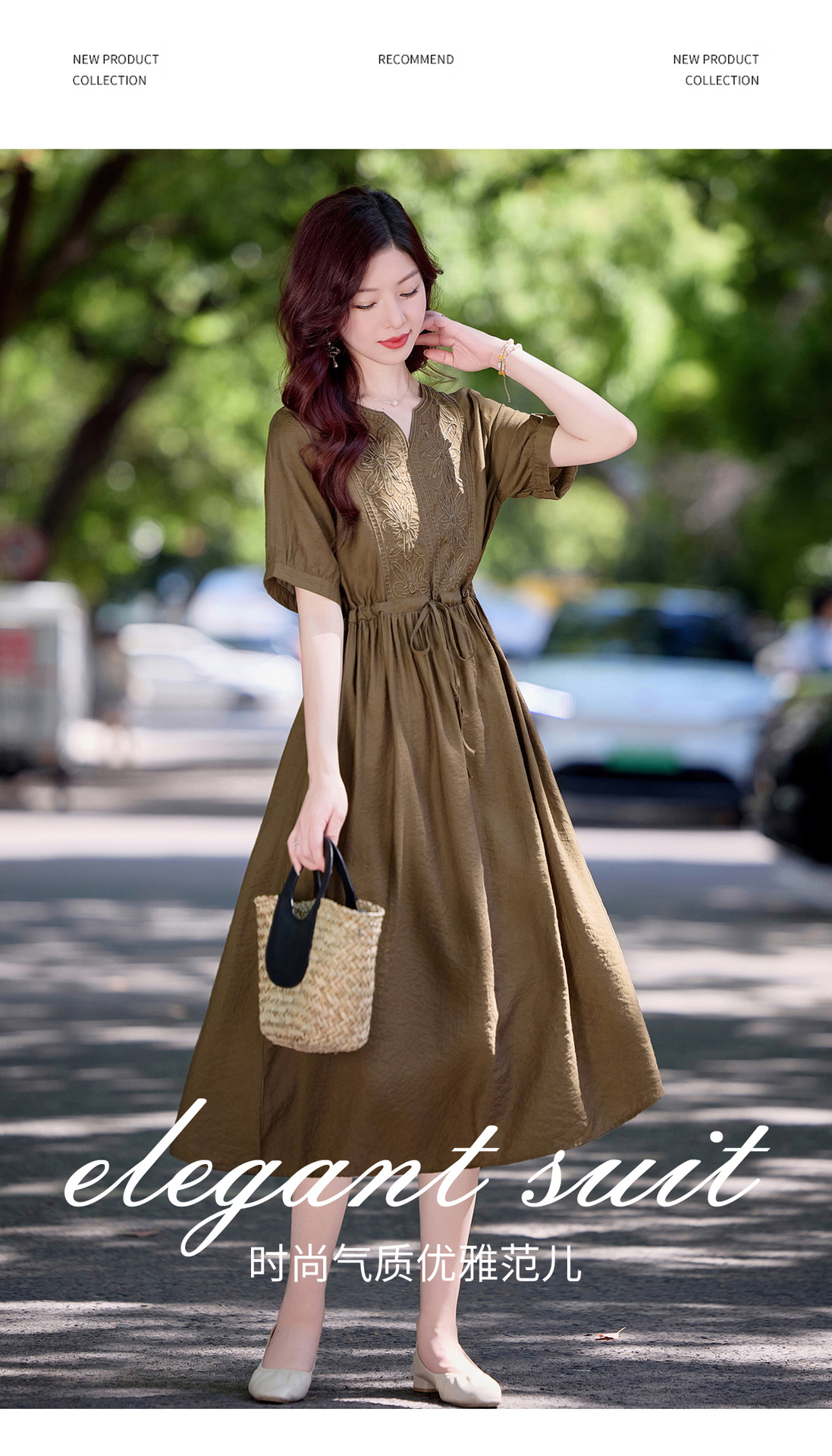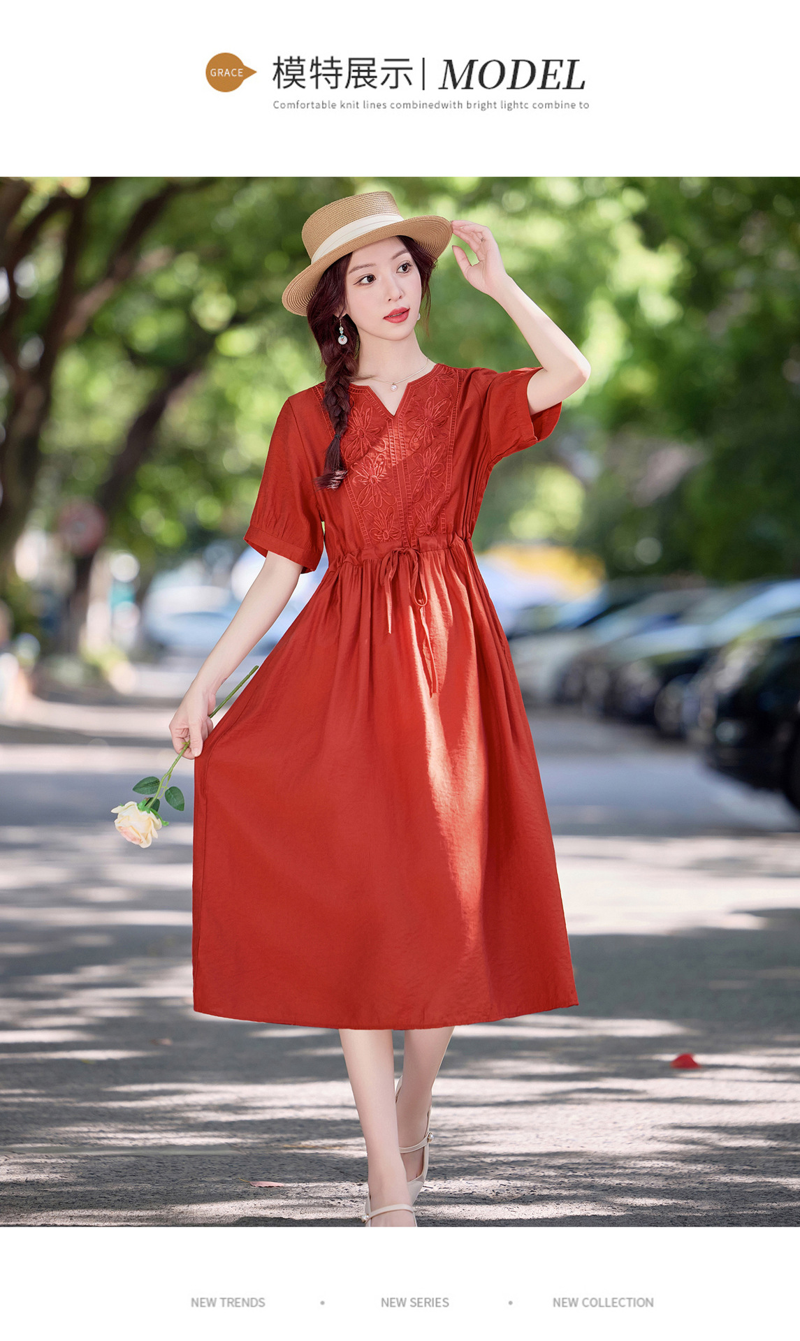 高级感刺绣V领天丝棉麻连衣裙MY2597