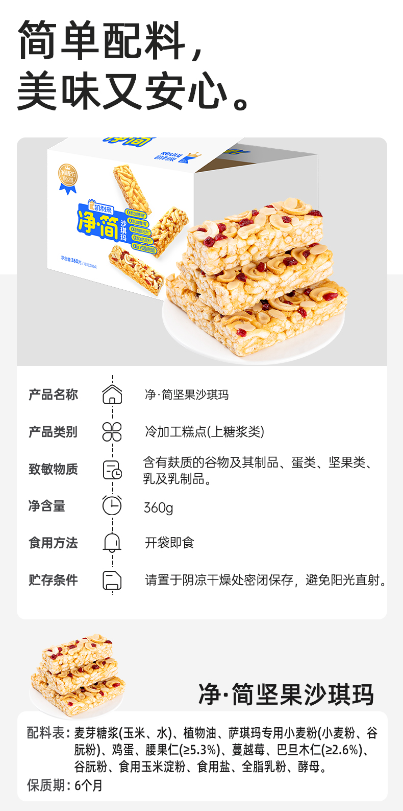 预售!21号发【✨凯利来净·简坚果沙琪玛】配料表精简透明!放心买放心吃!