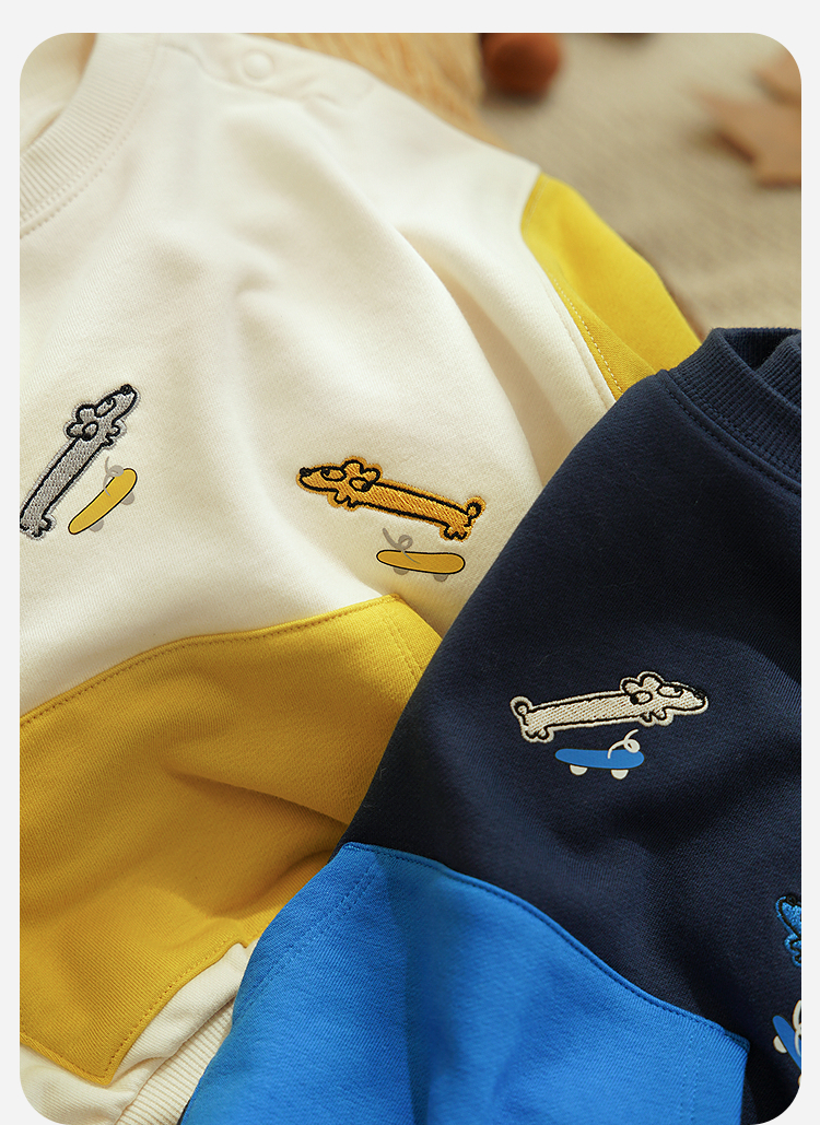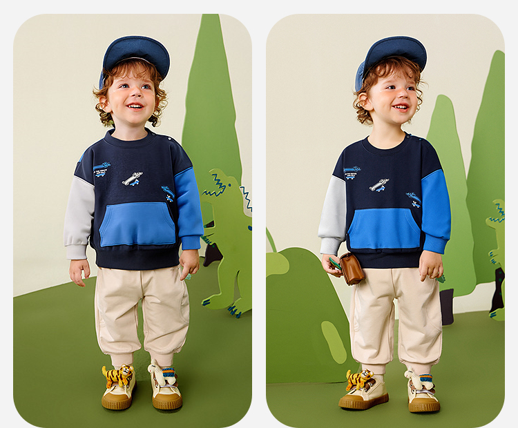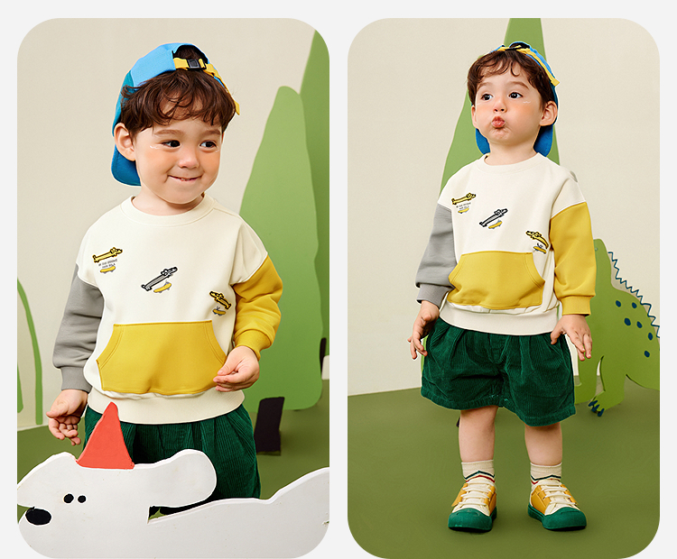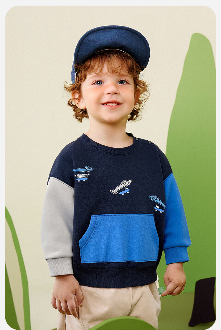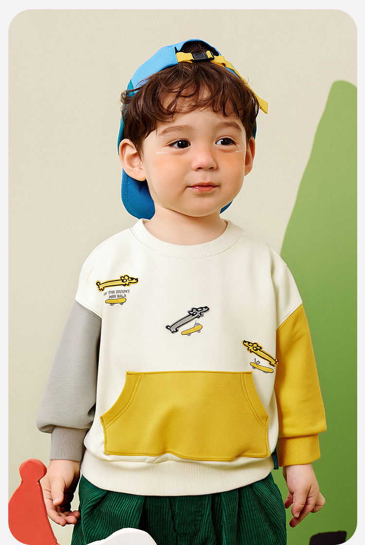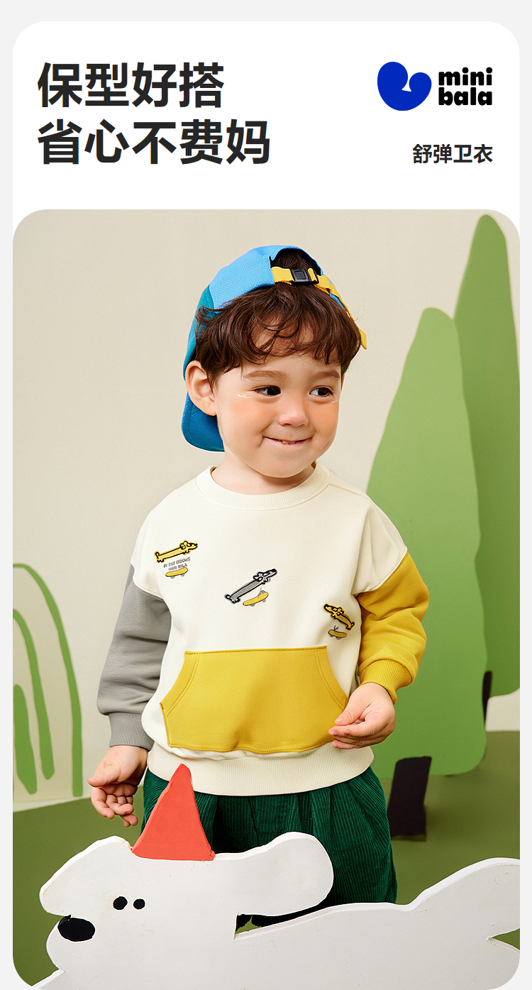 迷你巴拉男童卫衣2025秋新品宝宝撞色弹力不易变形宽松上衣
