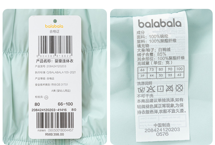巴拉巴拉婴儿羽绒服冬季连体衣男童衣服女童冬季抱衣爬服新款