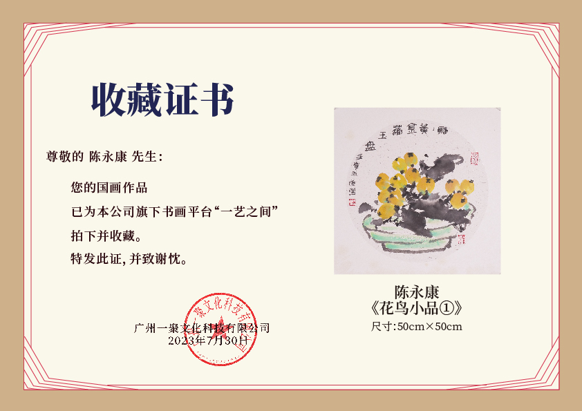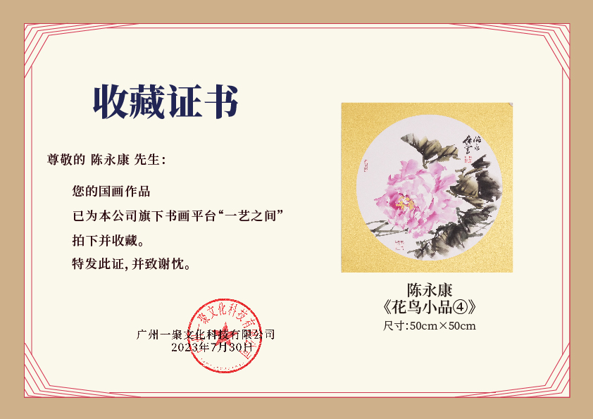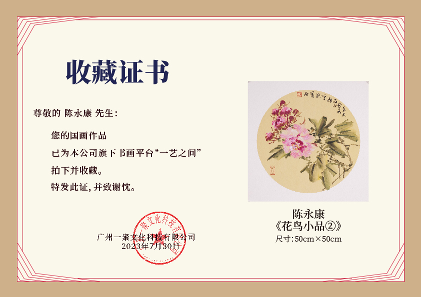 陈永康斗方50X50CM约2.3平尺 花鸟小品 镜片卡纸 !手绘纸本宣纸原作作品 本期直播特供仅4张,售完即止![现货包邮]
