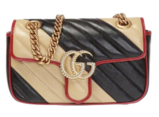 GUCCI古驰 Marmont 马蒙 金标Logo做l日拼色纷缝皮革单肩斜挎手提包 女款 迷你 拼色