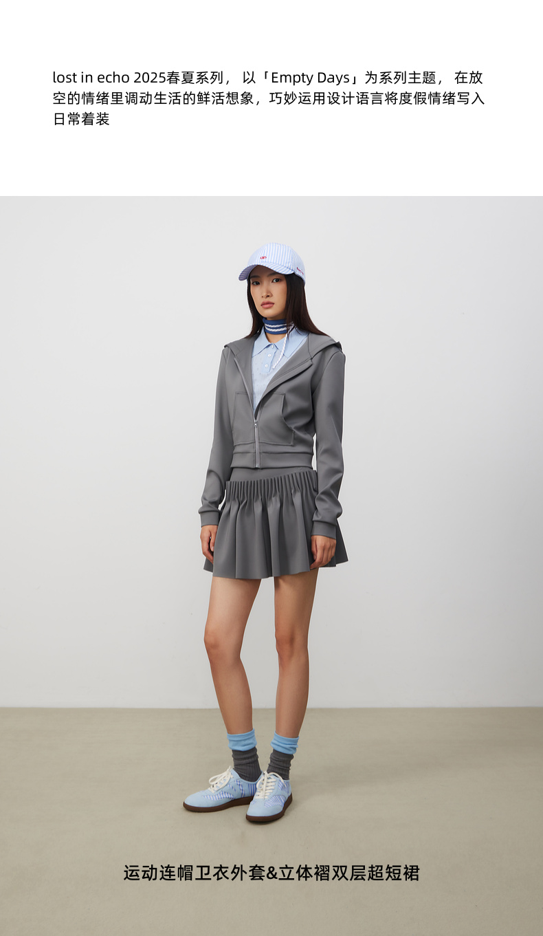 lost in echo2025春夏新款休闲运动连帽卫衣外套短裙半身网球裙裤