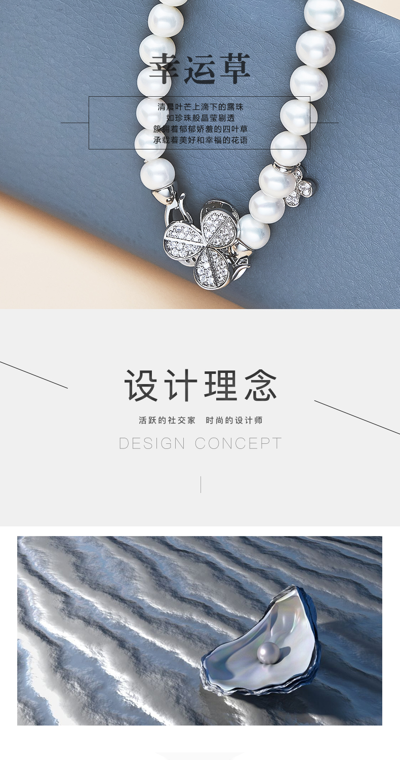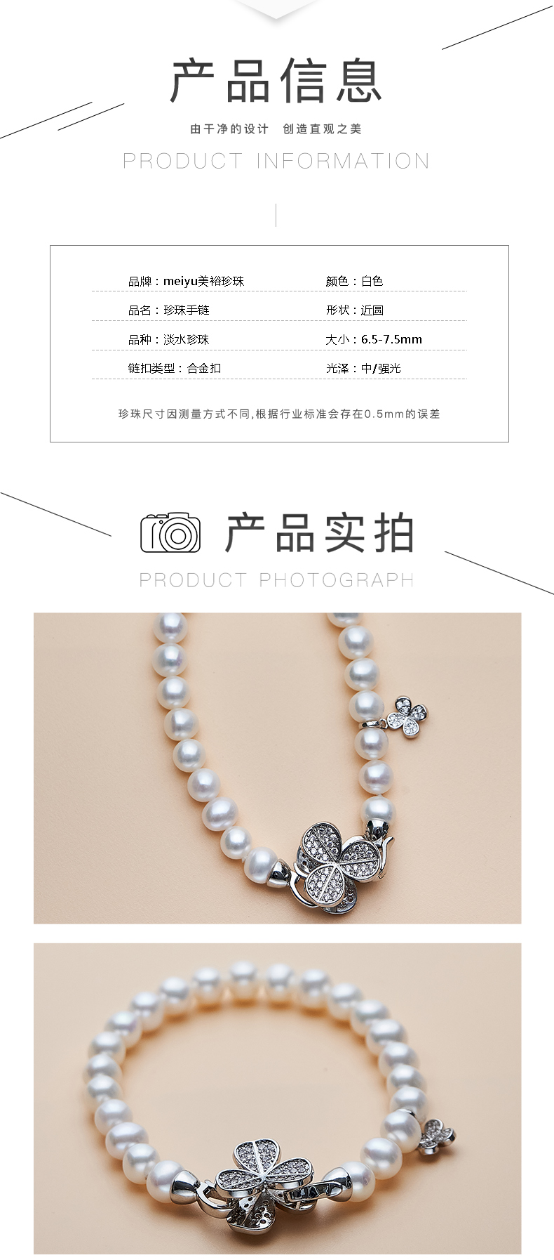 美裕 【幸运草】淡水珍珠花样手链 6.5-7.5mm白 105001