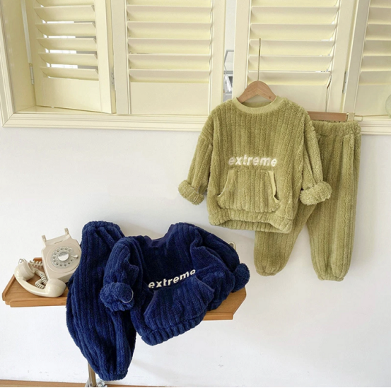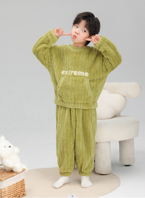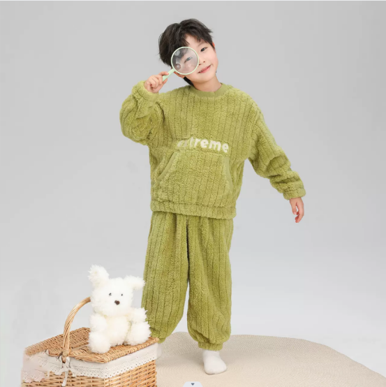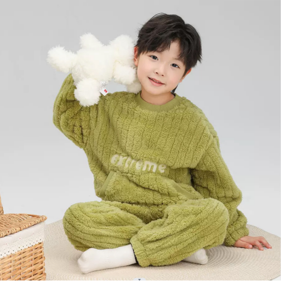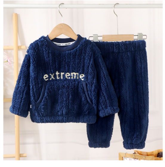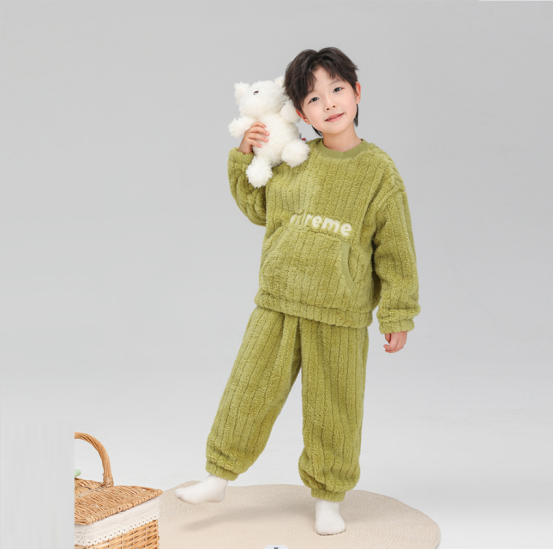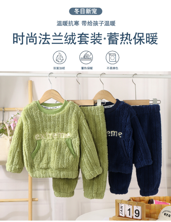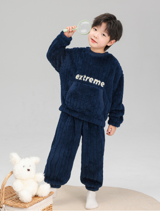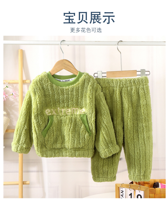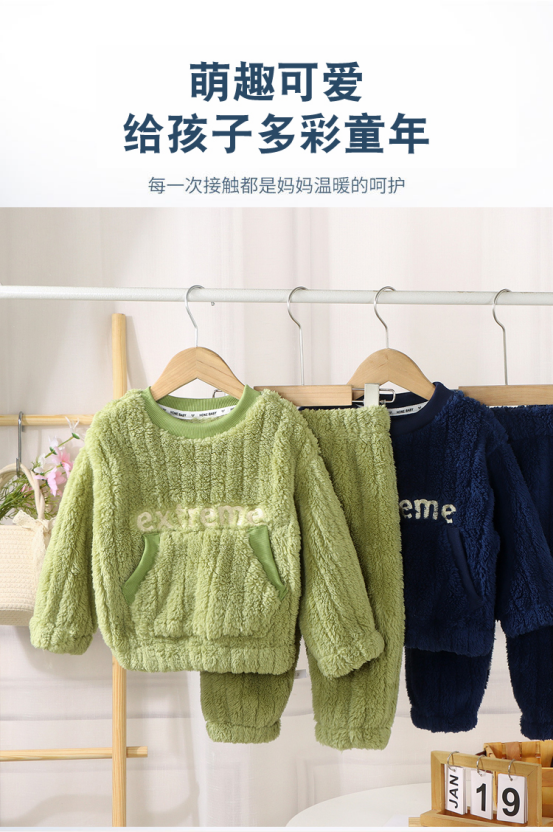 品名:佑族儿童加厚保暖字母珊瑚绒家居服Y005
