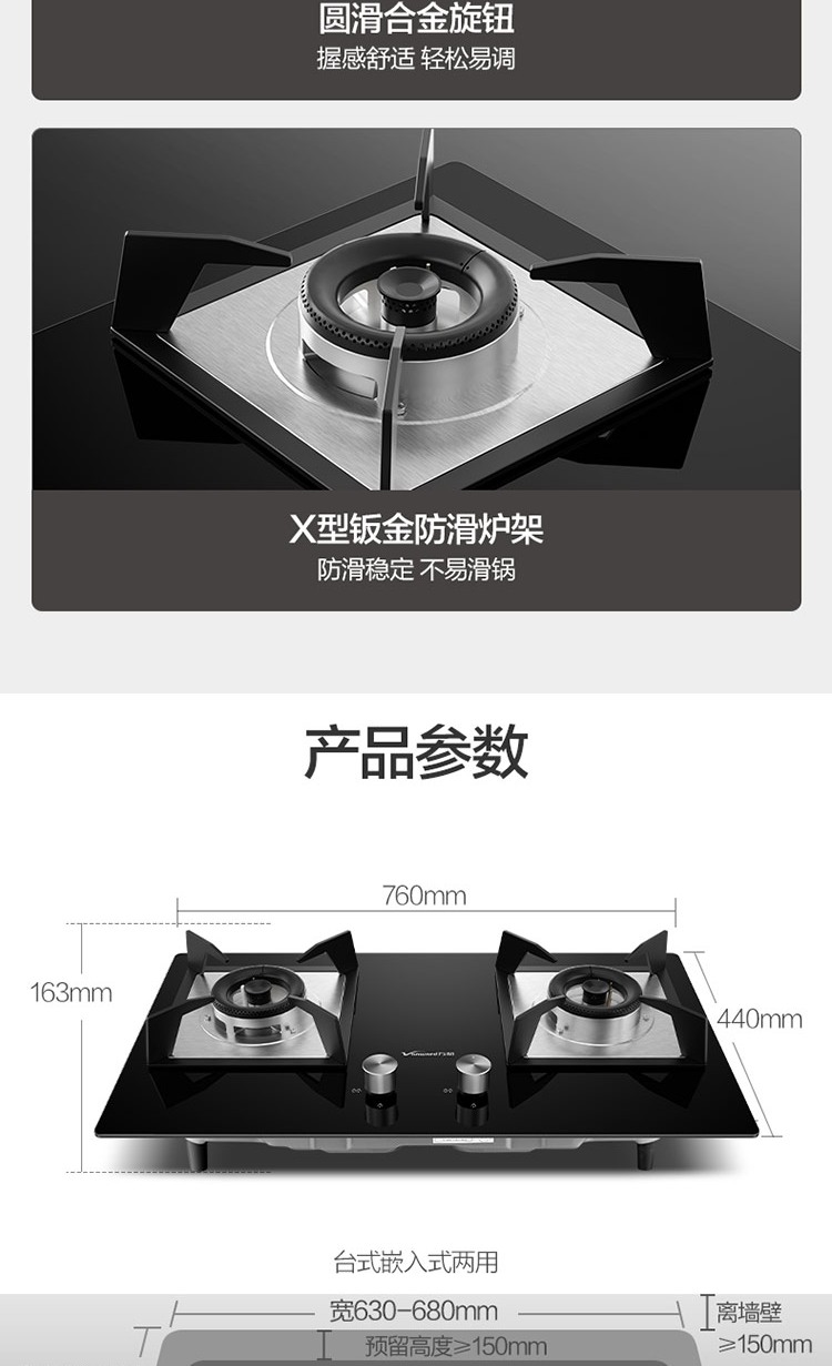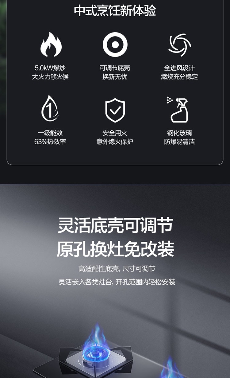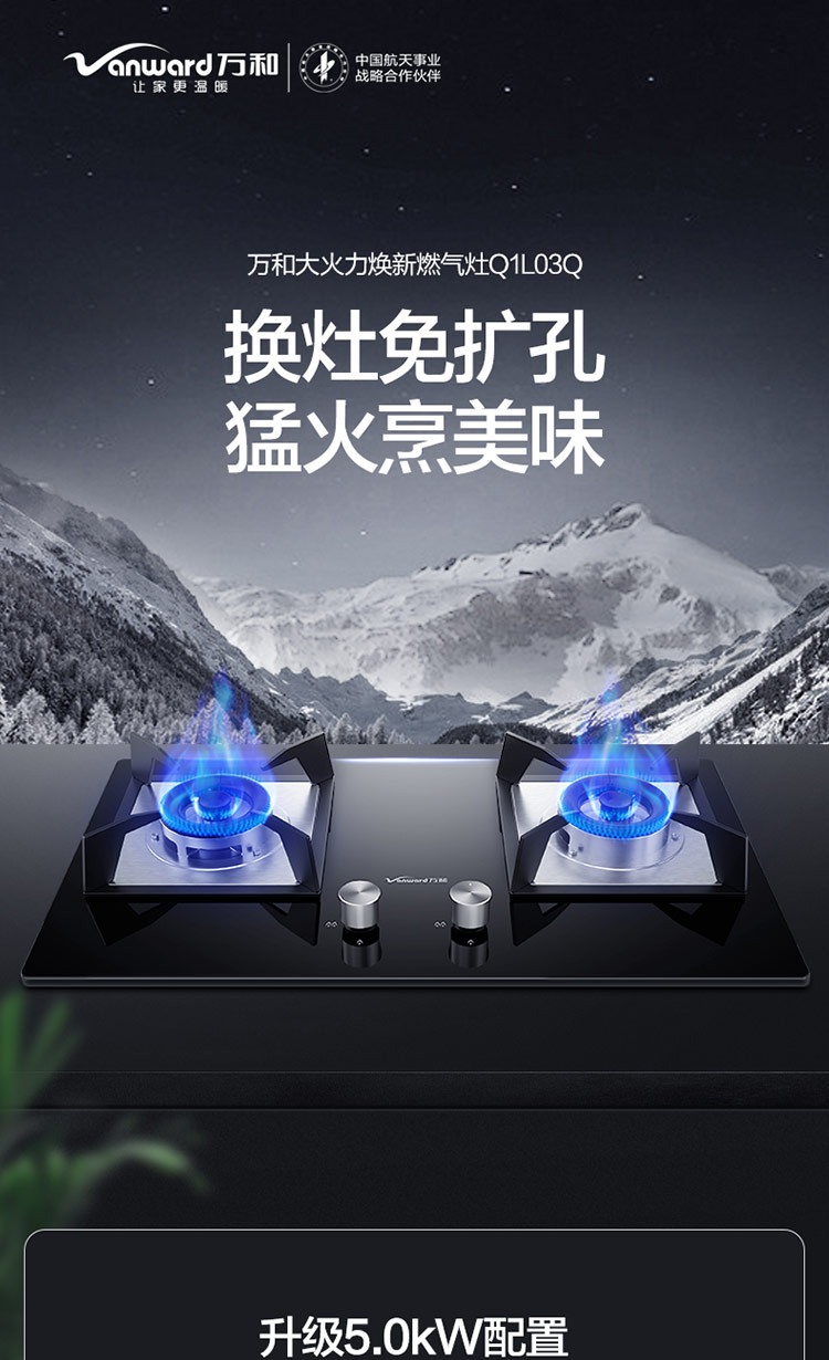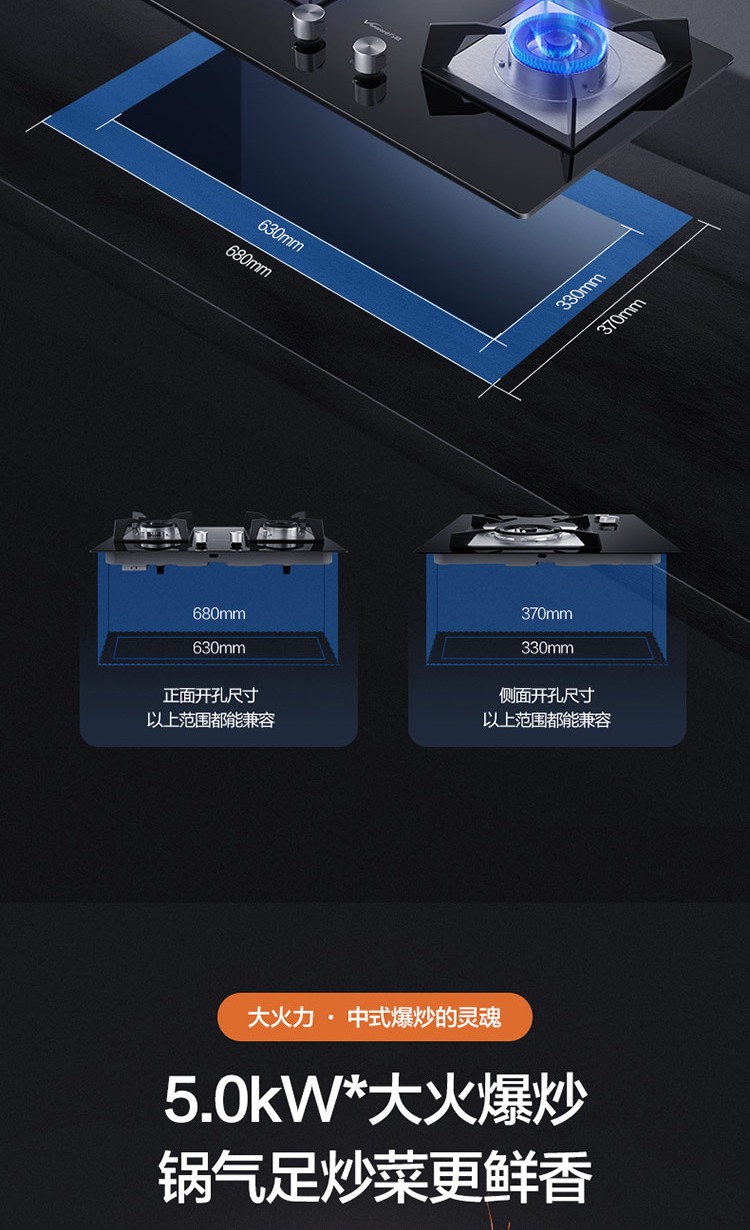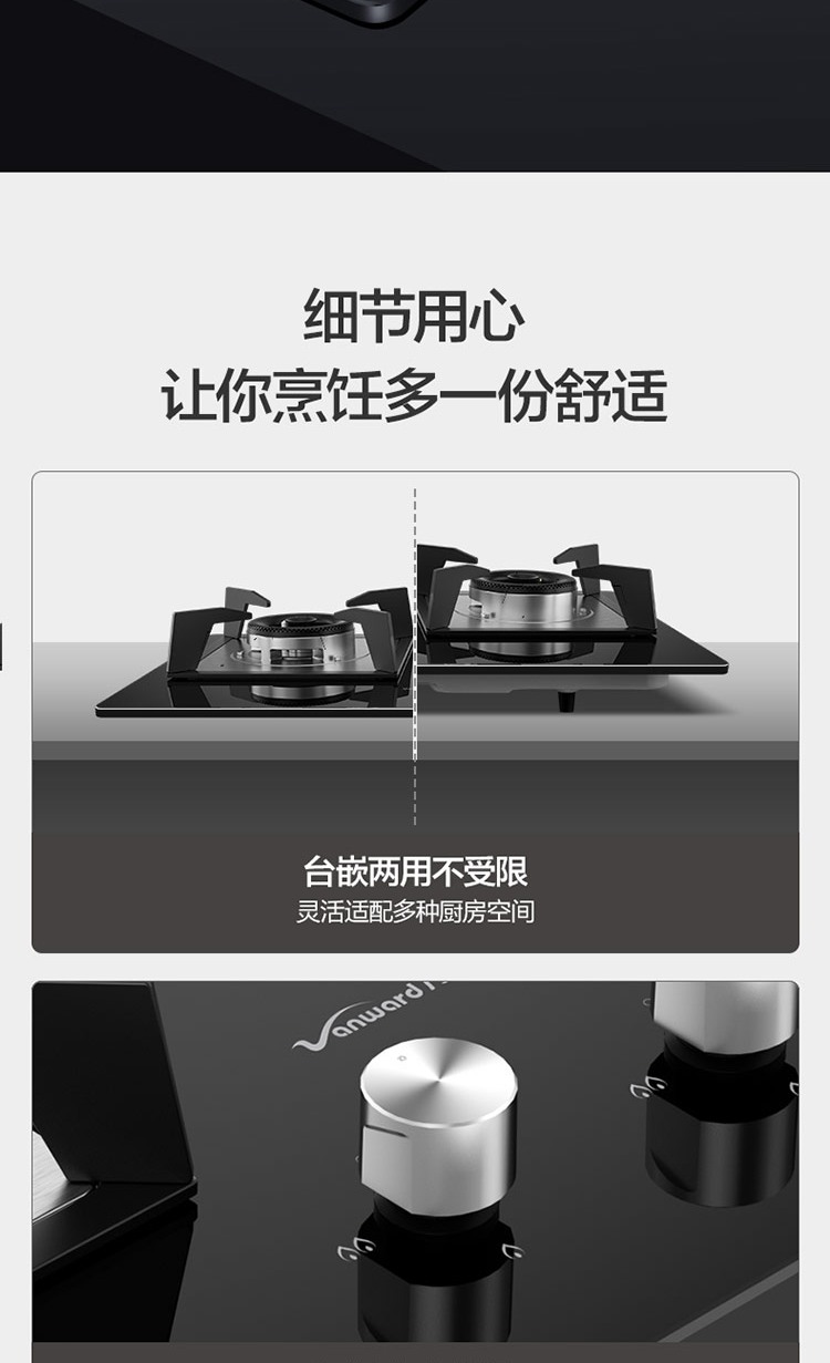 万和JZY-Q1L03Q-20Y(液化气) 台嵌两用燃气灶 4.5Kw蓝焰猛火 聚能自调节底盘