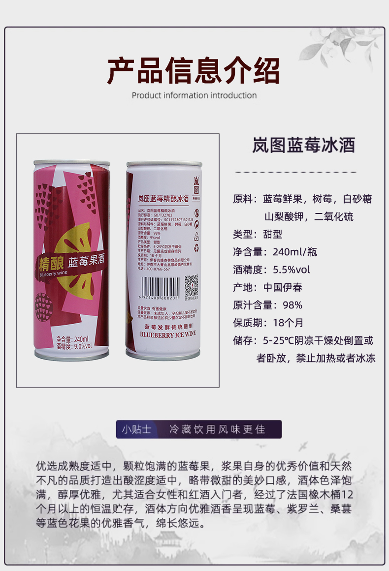 岚图蓝莓果酒 微醺水果酒 适合女士低度果酒精酿礼盒装 复合果味