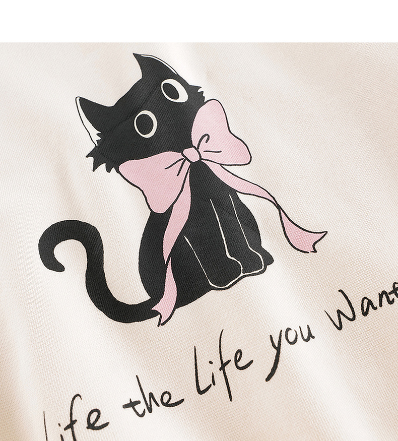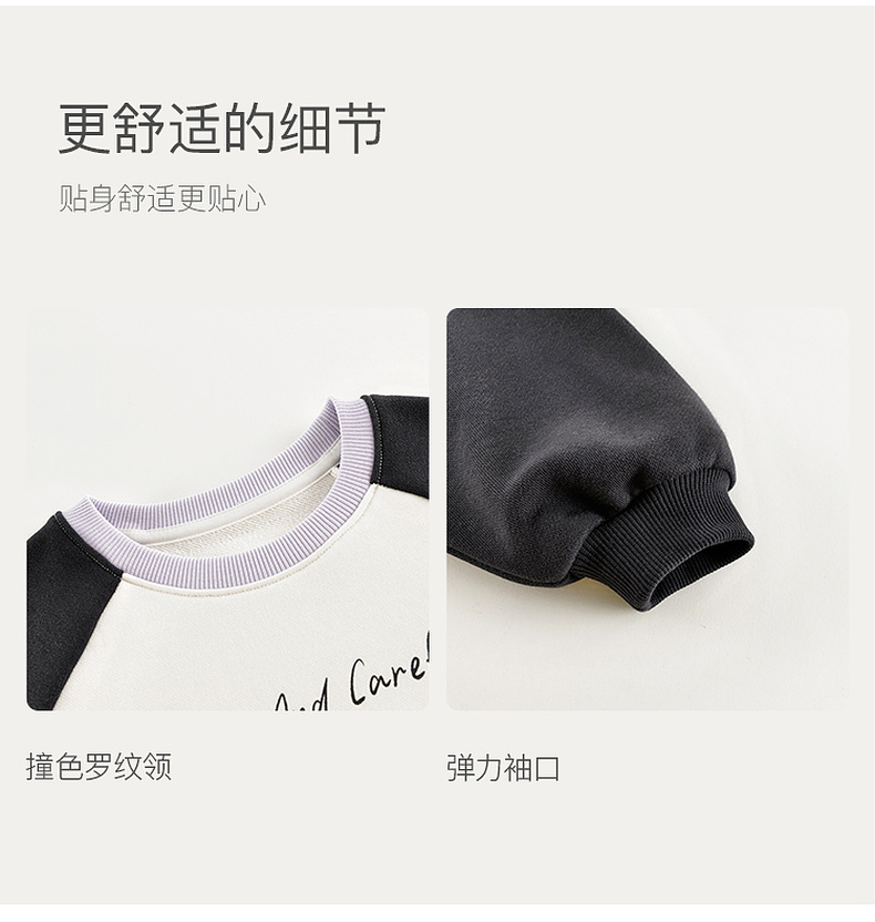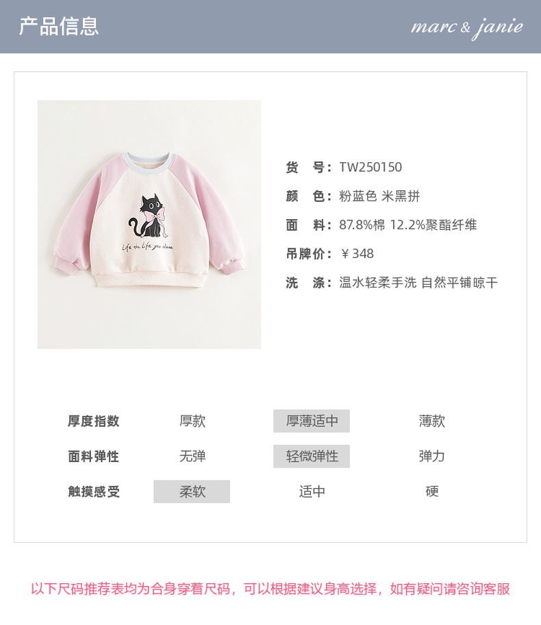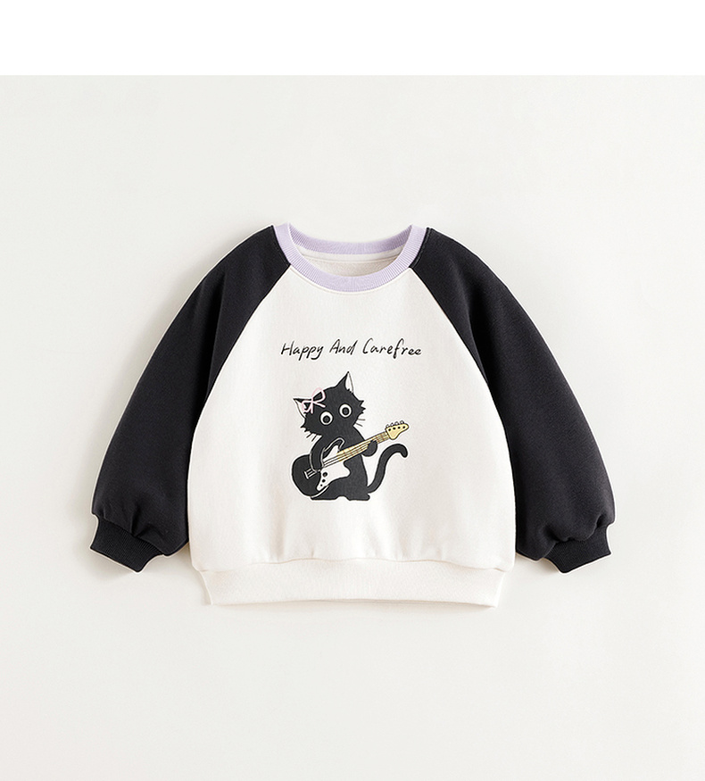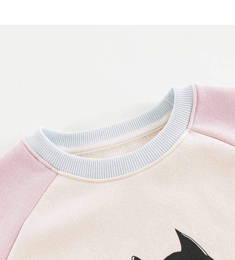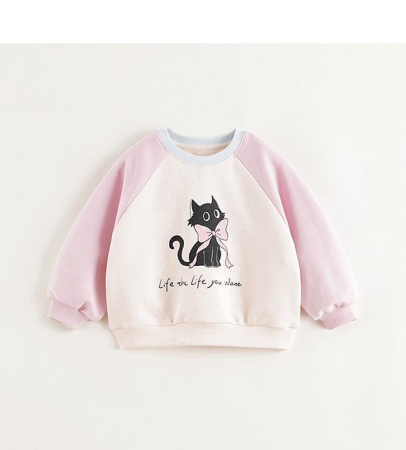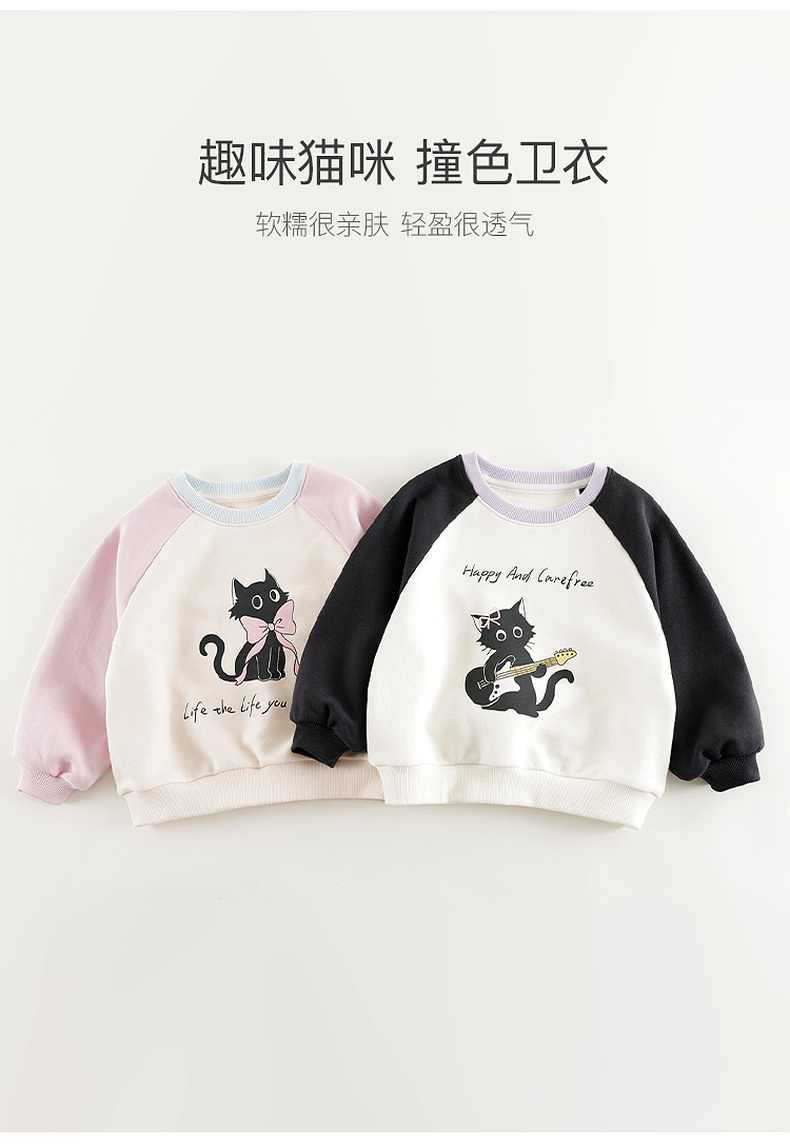 马克珍妮女童趣味猫咪撞色卫衣儿童宽松上衣2025年春装新款250150
