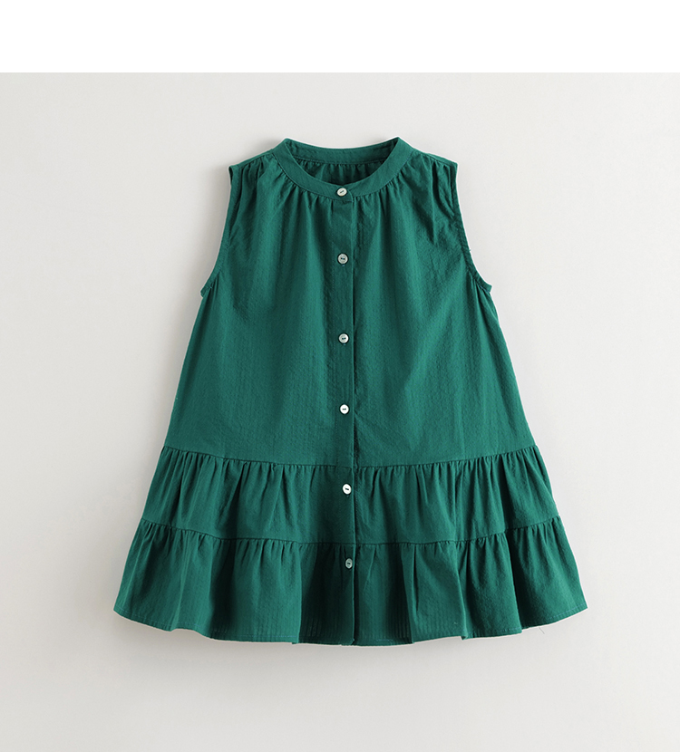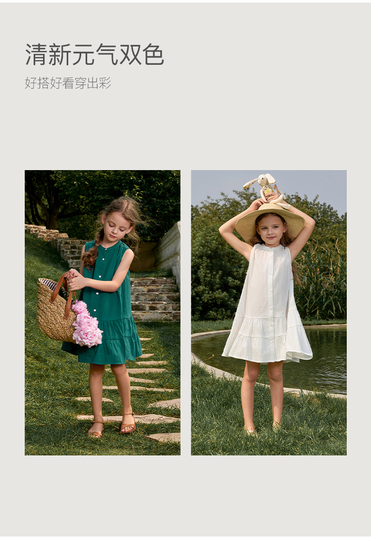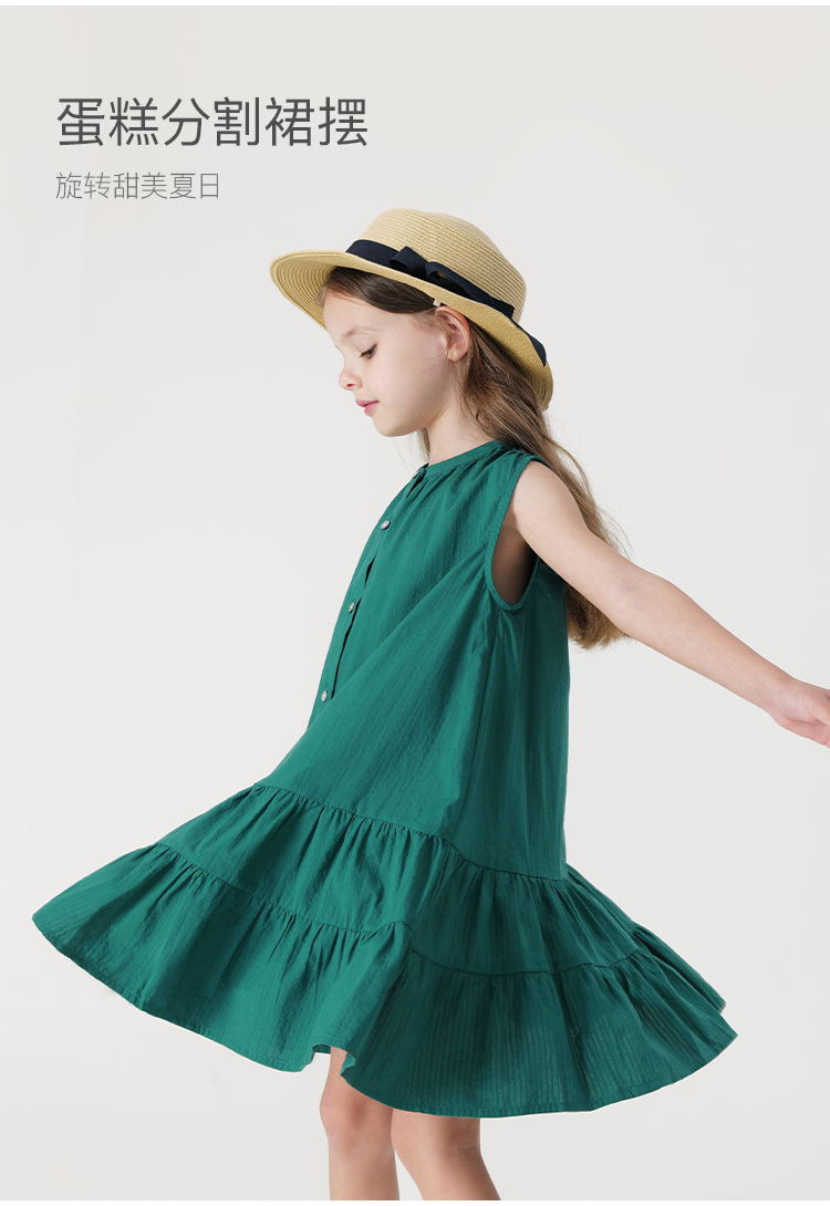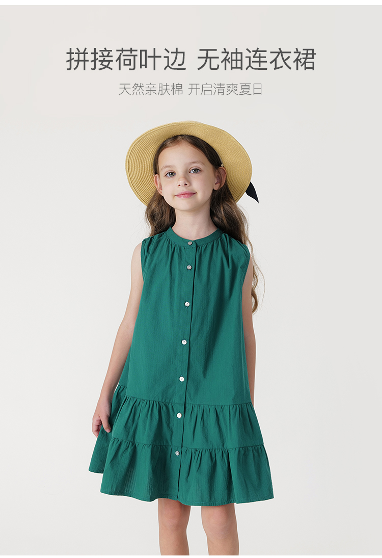 【马克珍妮 法式】女童拼接荷叶边纯棉背心连衣裙夏装新款250010