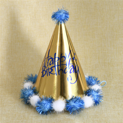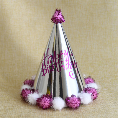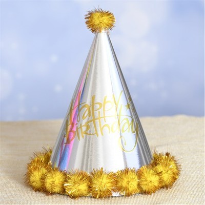 亮面纸卡毛球生日帽 镭射派对生日帽 多款可选 彩针毛球 儿童生日帽
