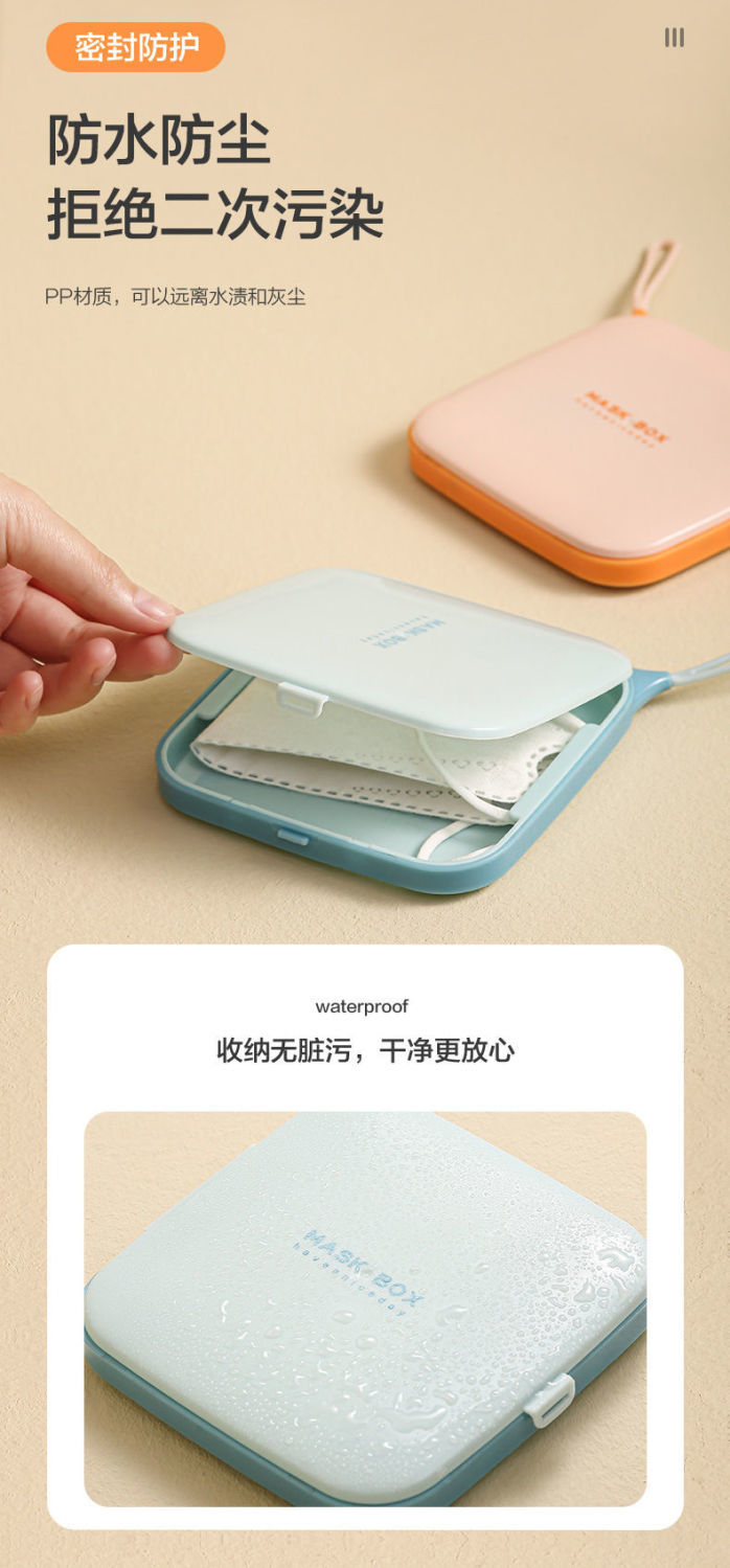 「防水防尘!拒绝二次污染」随身便携式口罩收纳盒 居家日用新款方形口罩盒创意防尘防污掀盖小东西收纳整理