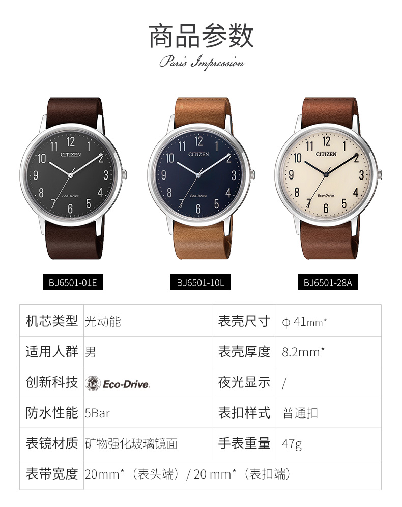 西铁城/CITIZEN光动能日历小牛表男表BJ6501-10L