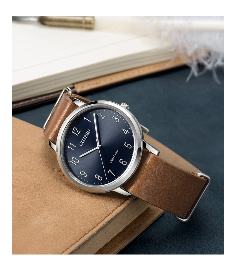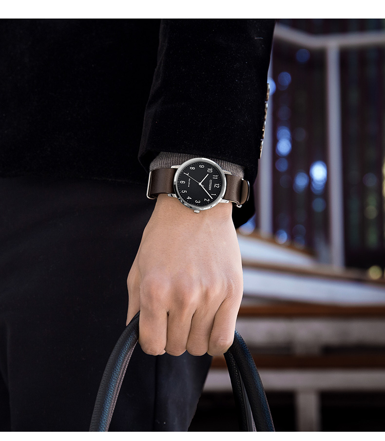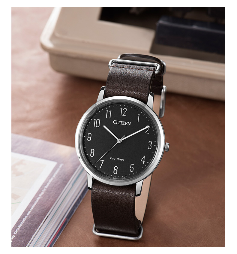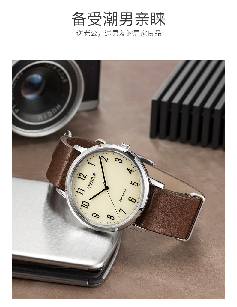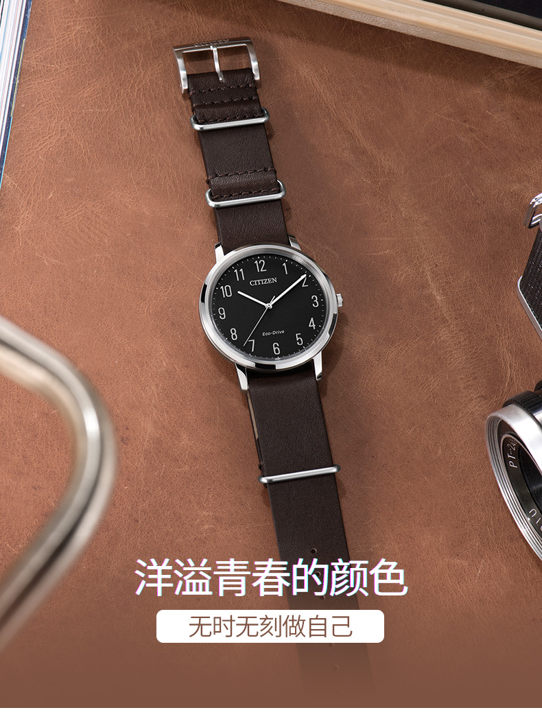 西铁城日本官方光动能防水不锈钢覆BIP潮流休闲黑眼睛男表AW1015-53E