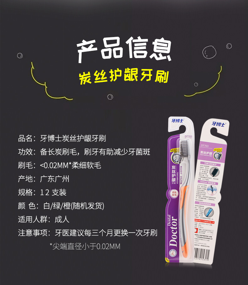 牙博士炭丝护龈牙刷DT703 1支*12只装