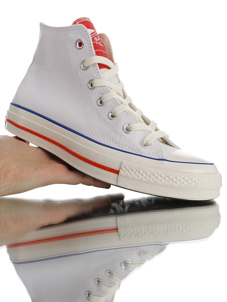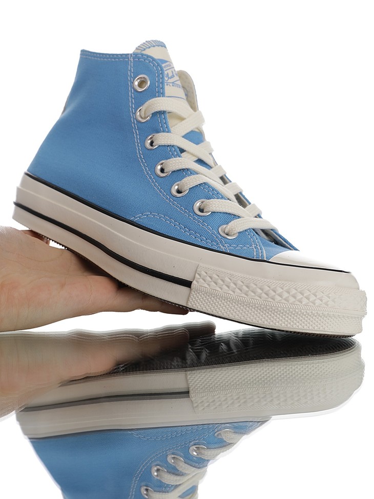 硫化工艺聚氨酯硅蓝PU中底米白 天蓝 , 匡威Converse All Star 1970s Hi"Varsity Remix"复古三星标高帮休闲运动硫化百搭板鞋“帆布天蓝米白反标鞋舌”166827C