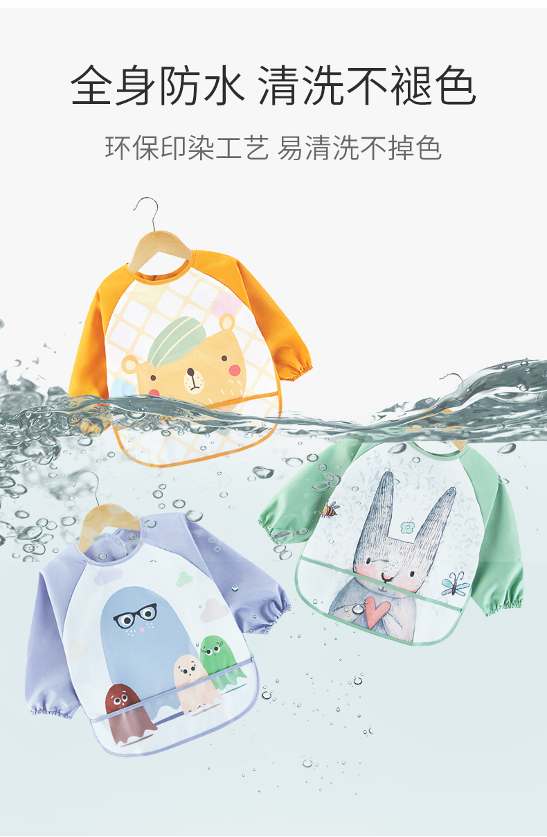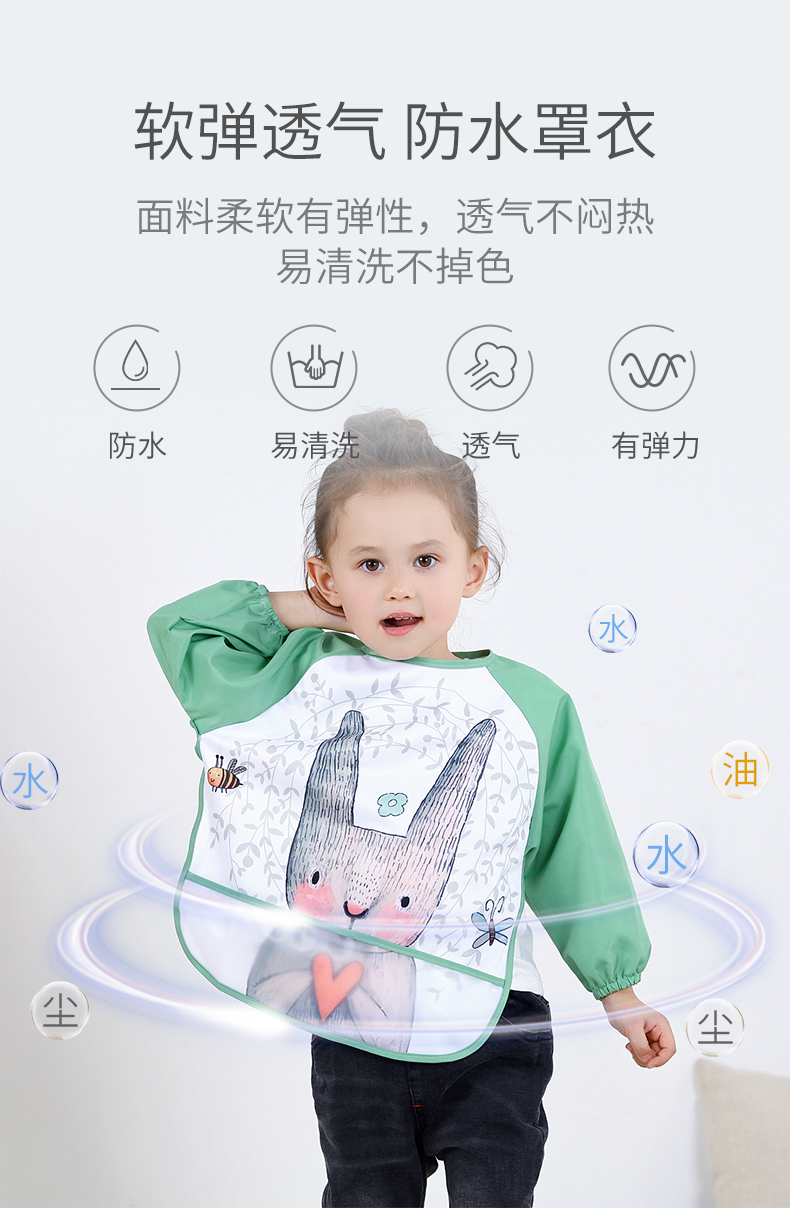 *【蓓兜】宝宝罩衣婴儿吃饭围兜饭兜防水防脏儿童画画围裙男女孩反穿衣春秋宝宝罩衫防脏套衣