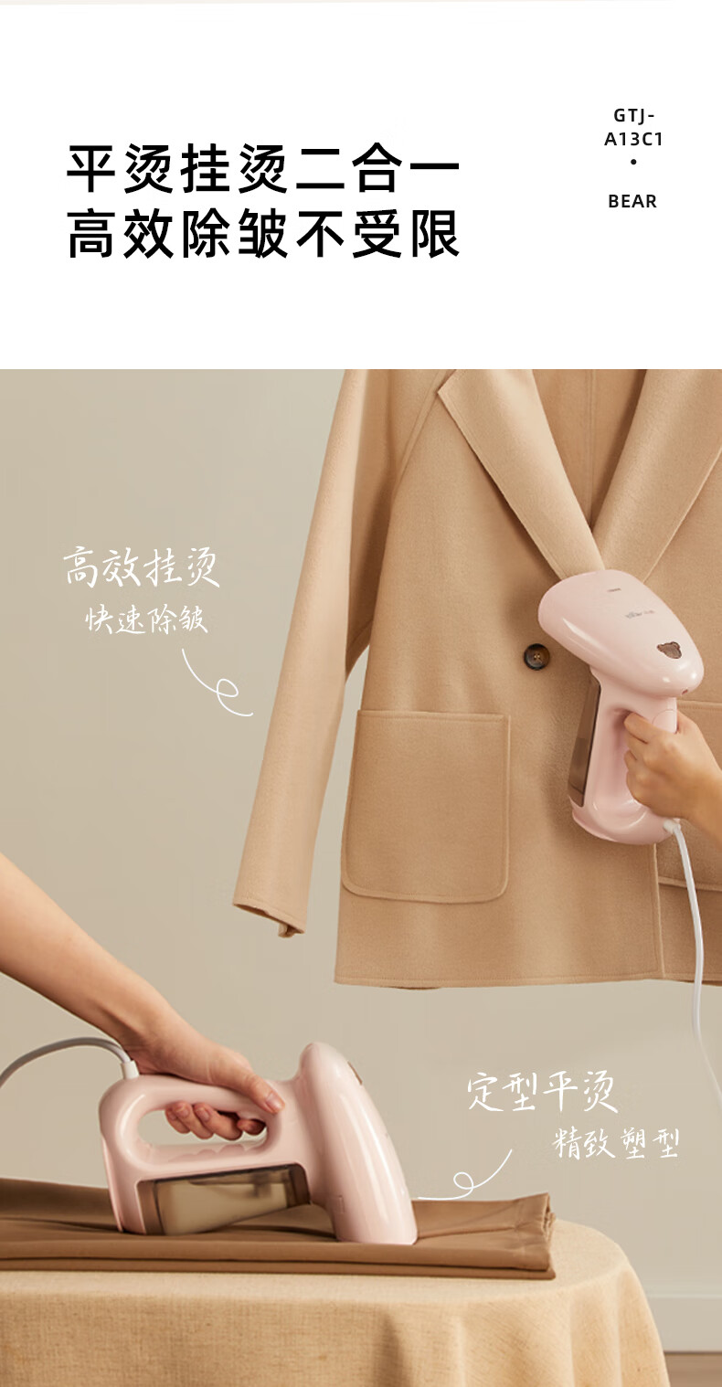 小熊(Bear)挂烫机手持熨斗家用蒸汽挂烫机烫衣机衣服熨斗便携小型蒸汽熨烫机电烫斗GTJ-A13C1