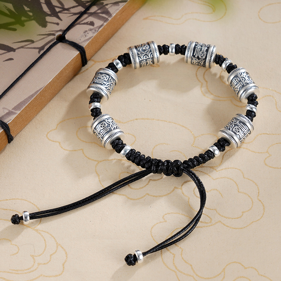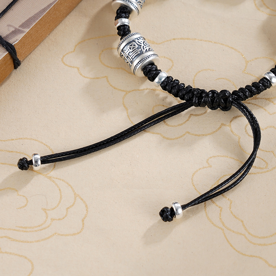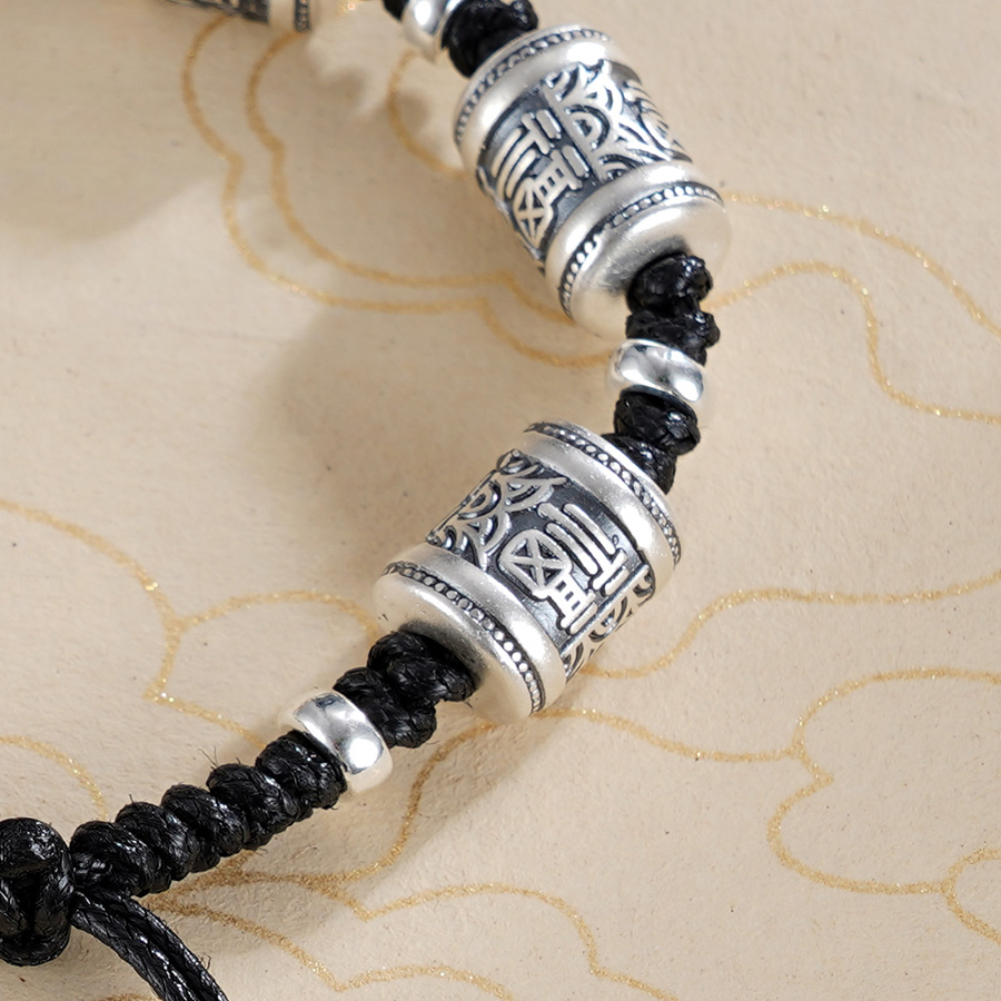 【寓意】:纯银桶珠之上錾刻福字,复古祥和,古韵延绵,寓意如意吉祥与财源滚滚。