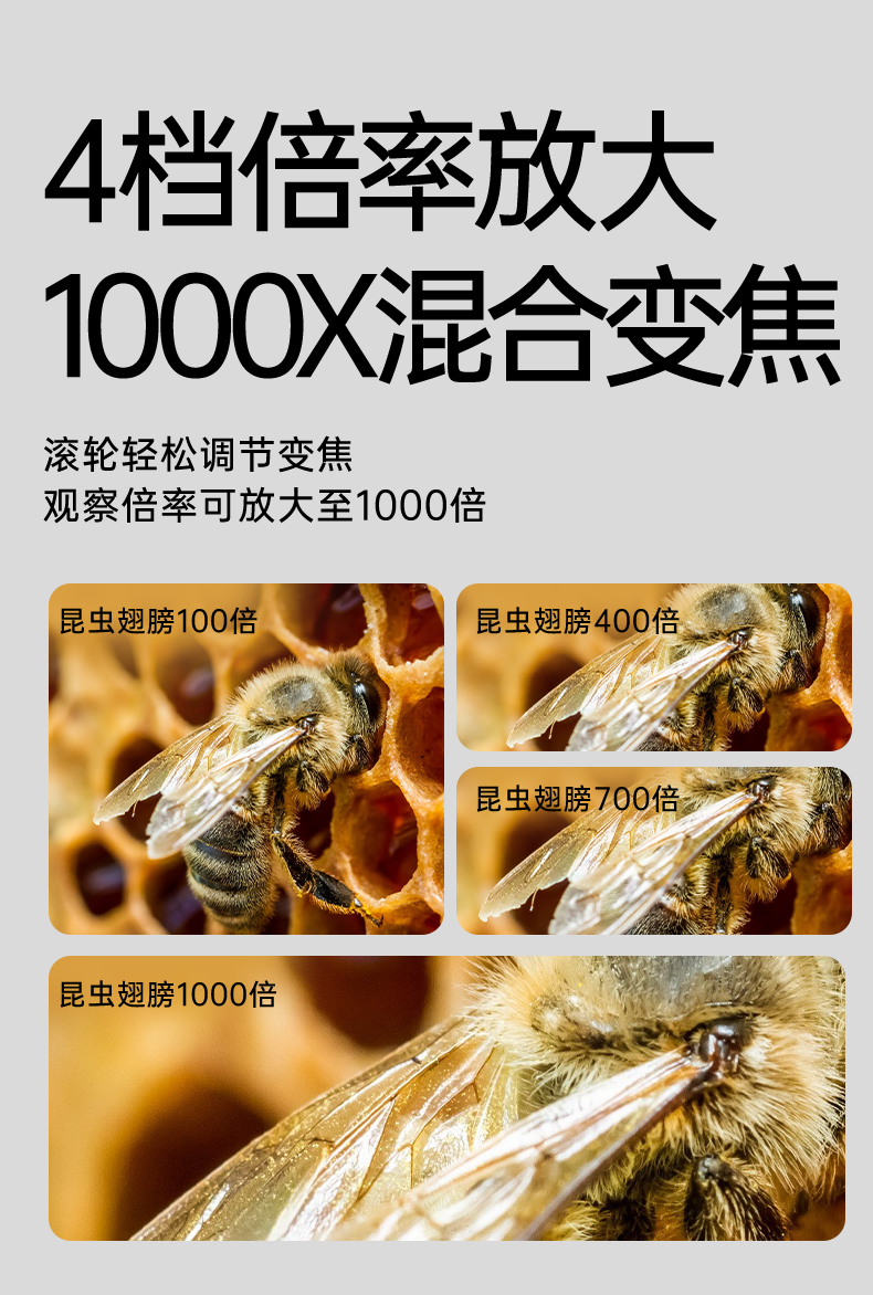 贝恩施儿童显微镜中小学生专用光学电子生物高清可看细胞显微镜手持便携式生日礼物新年玩具