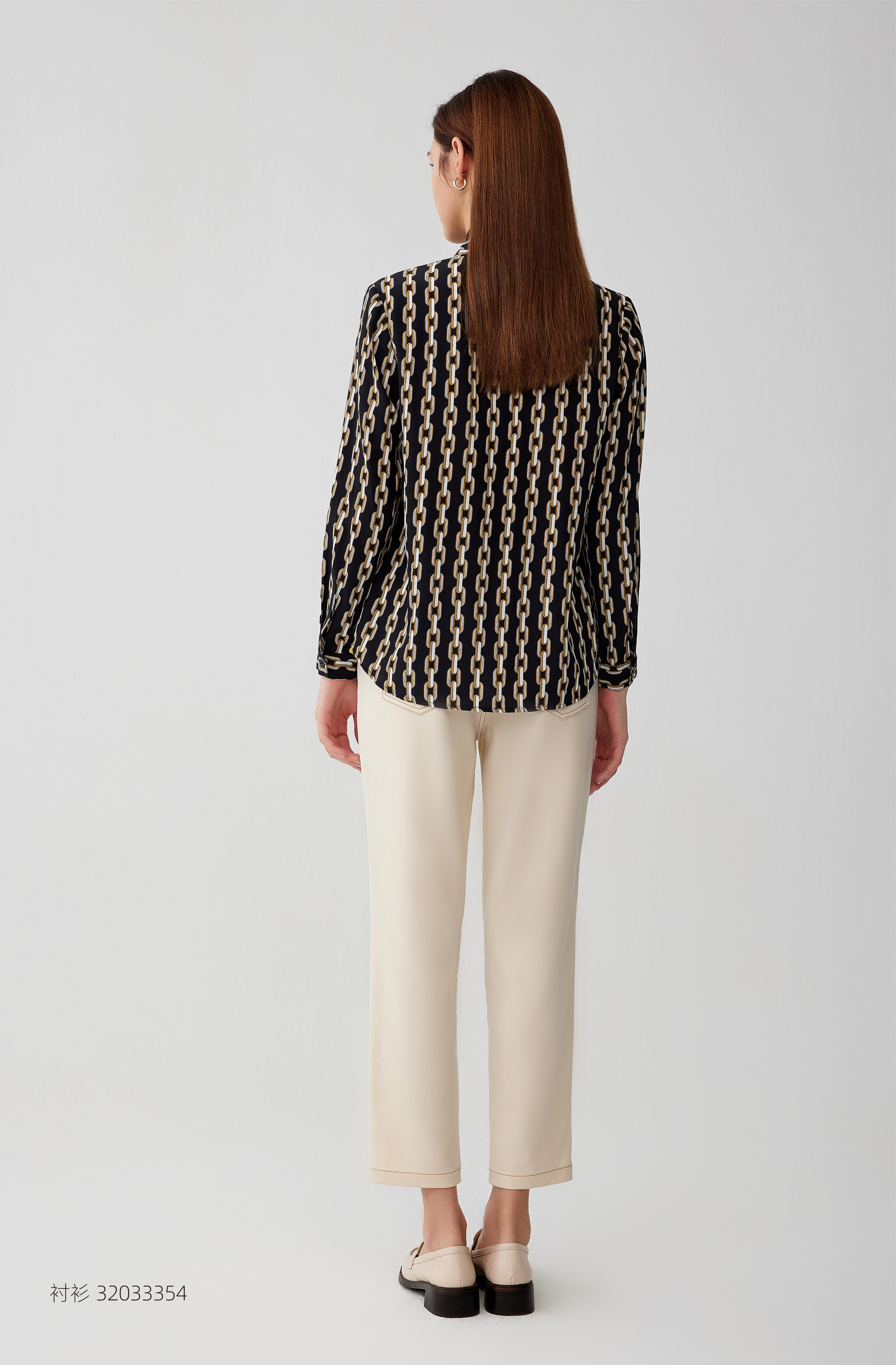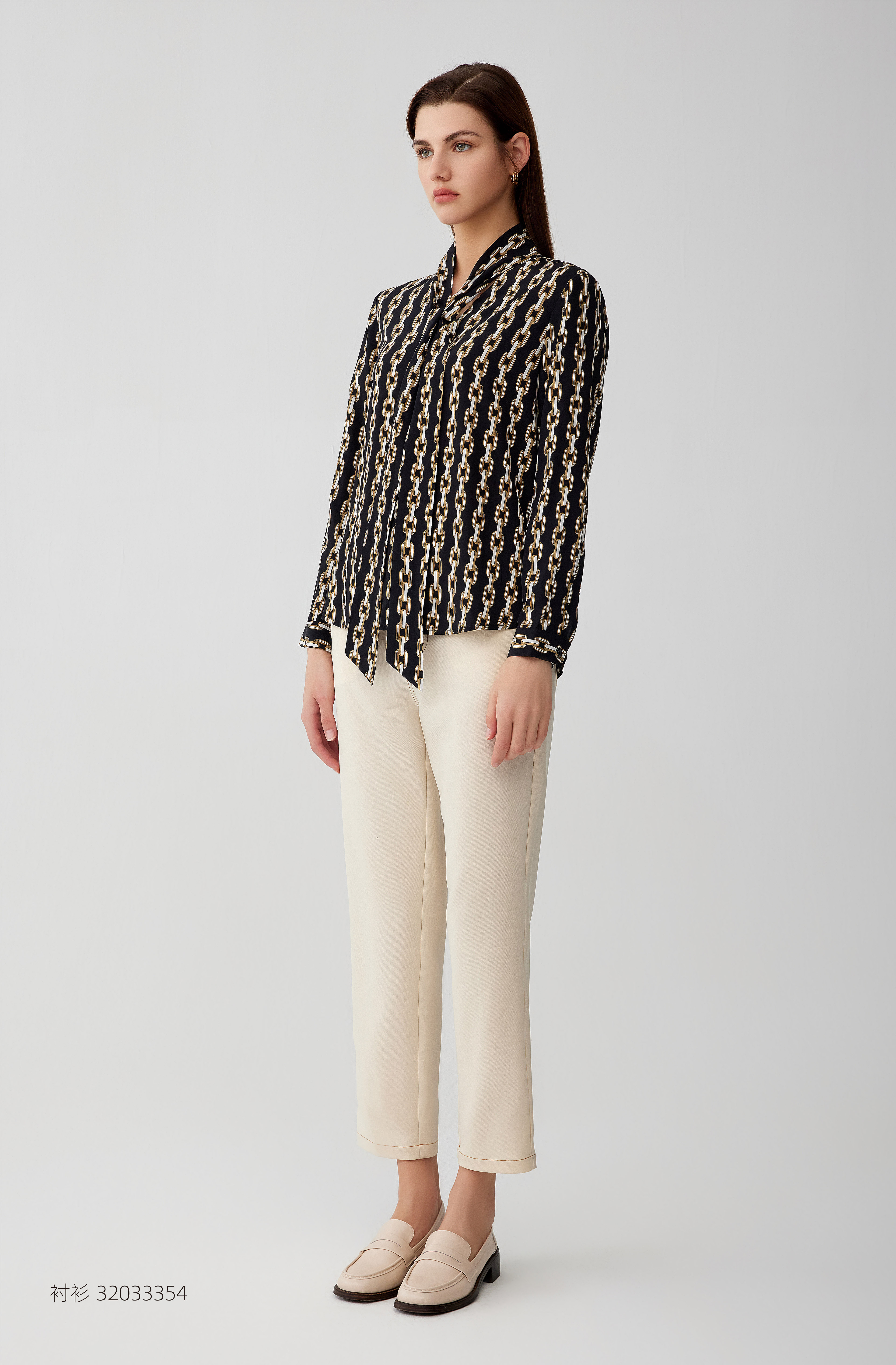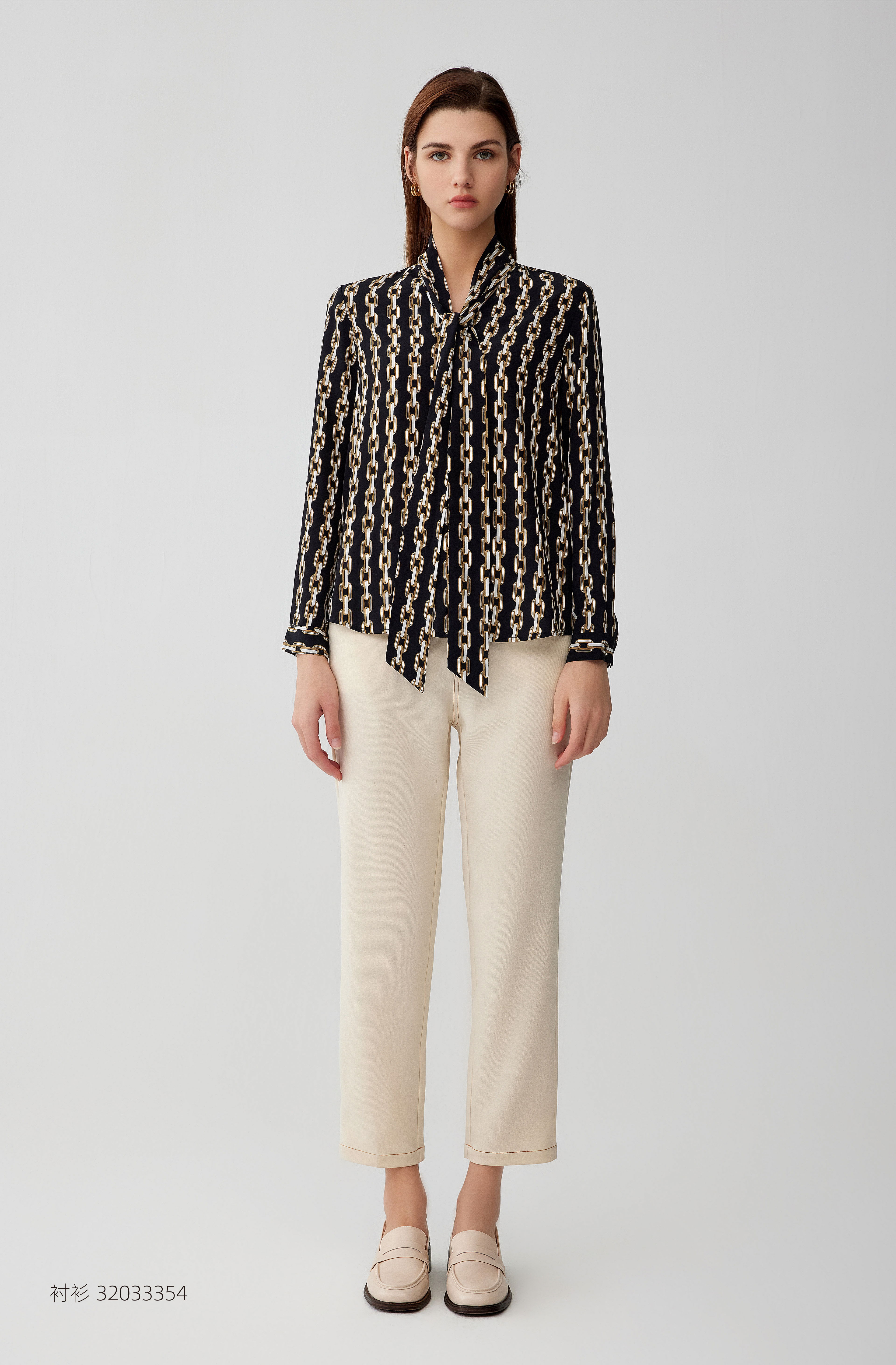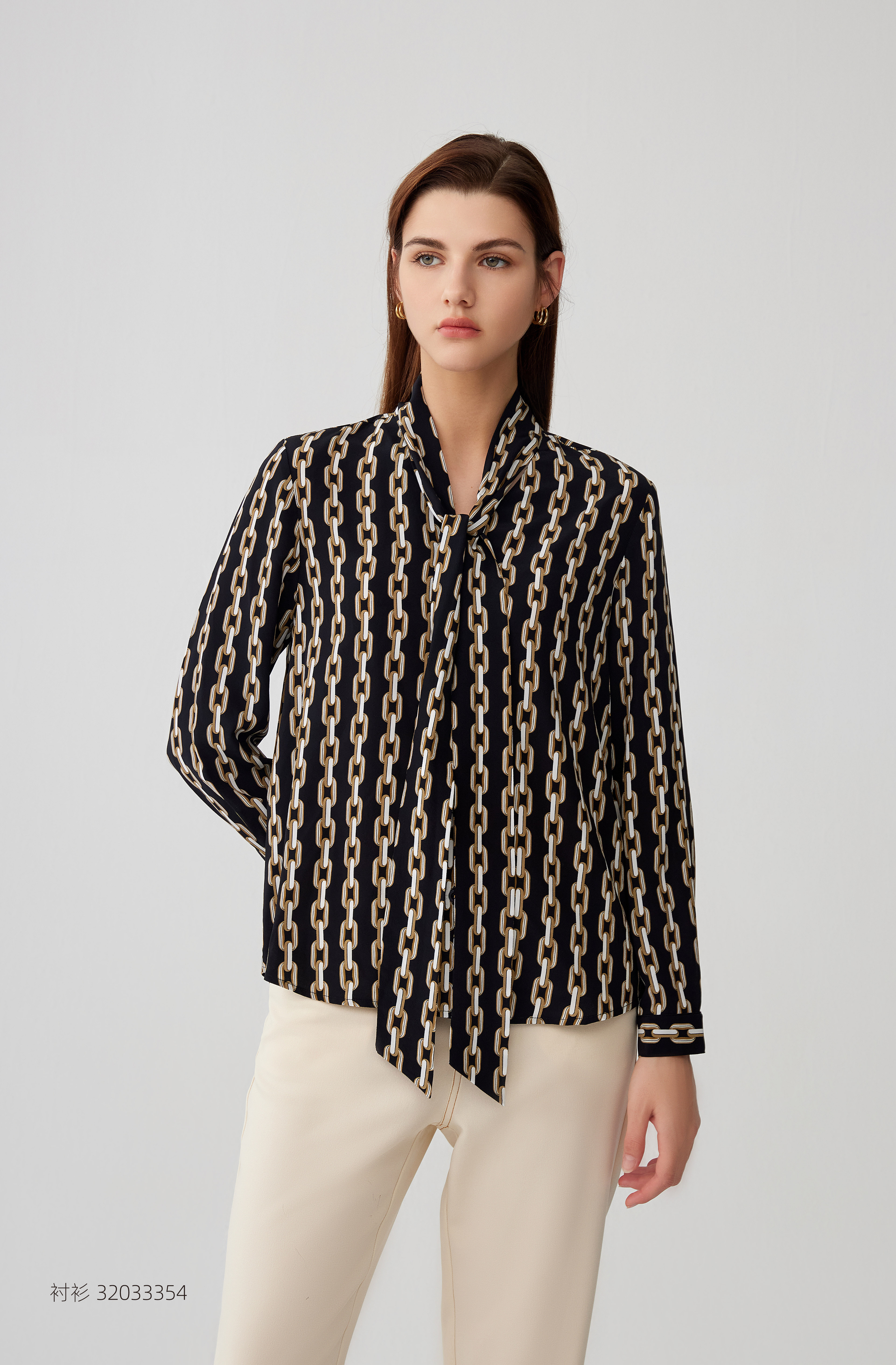【桑蚕丝衬衫】23年早秋新品女士100%桑蚕丝印花薄款系带上衣