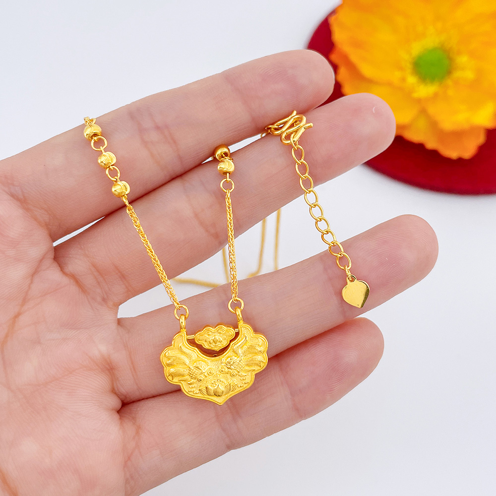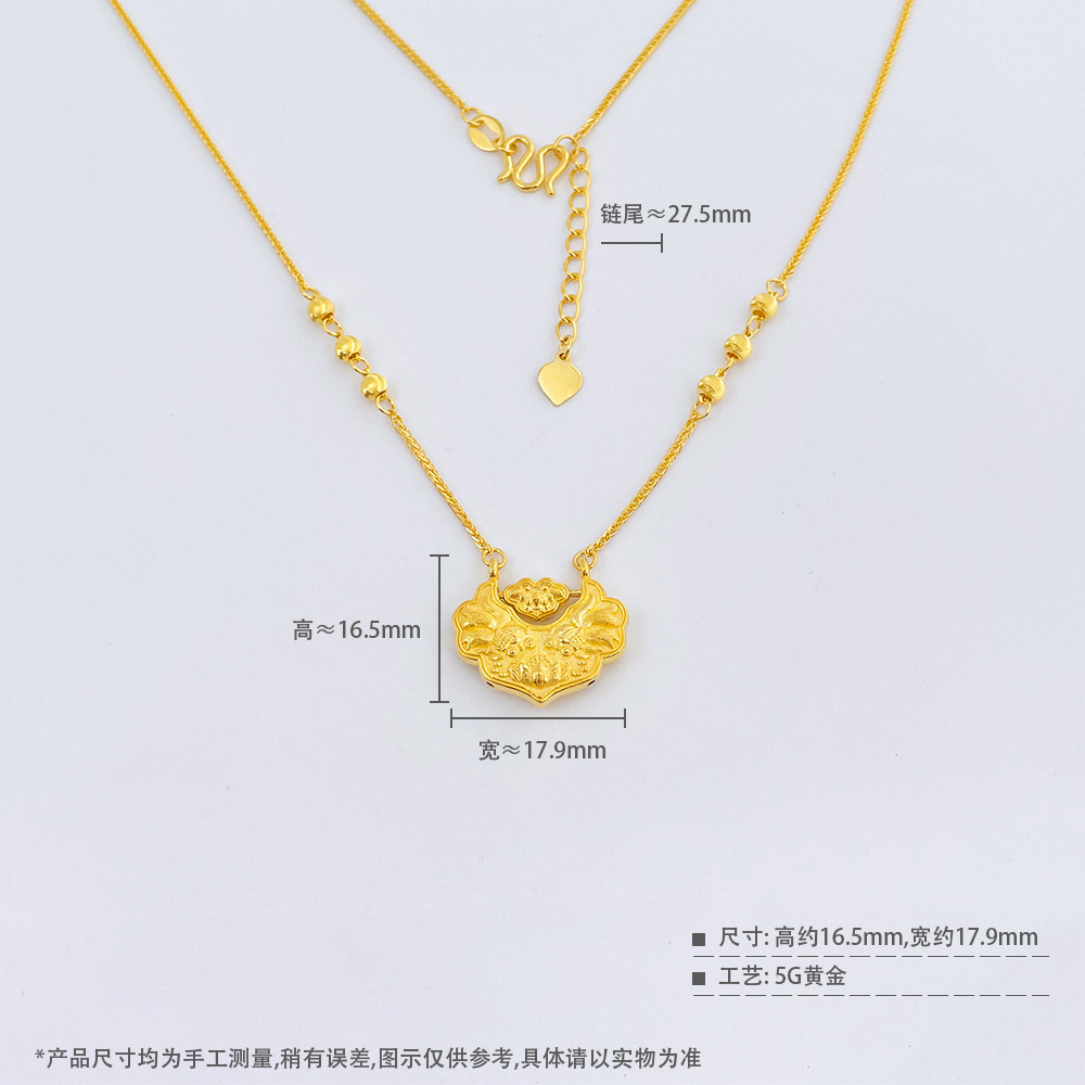 【限时克减128元元】足金999 5G黄金调节空心镂空铃铛双鱼锦鲤锁包莲花平安如意锁包套链(AG5GTL00296)(预售产品下单后不退款不退货不换货不补差价