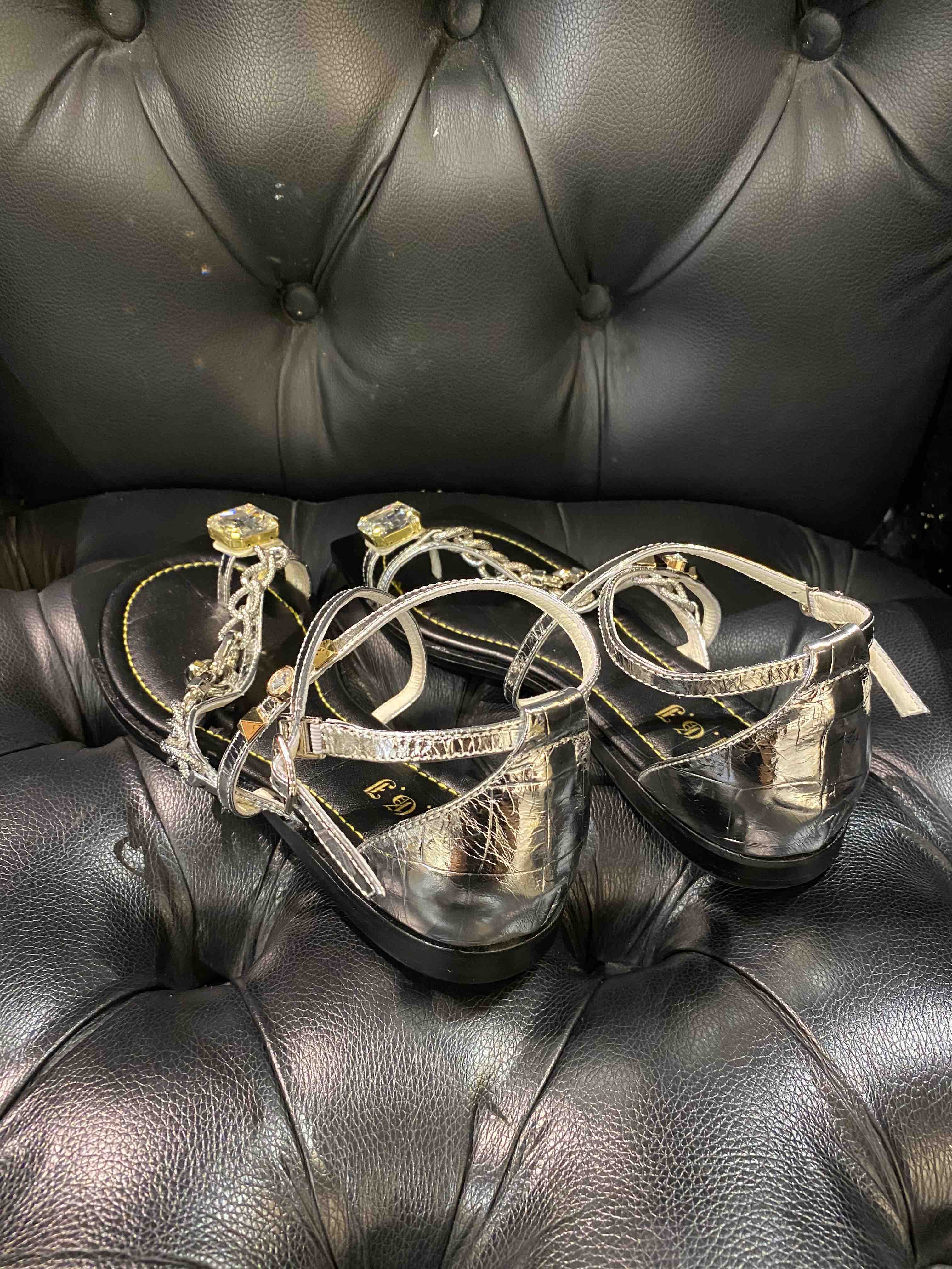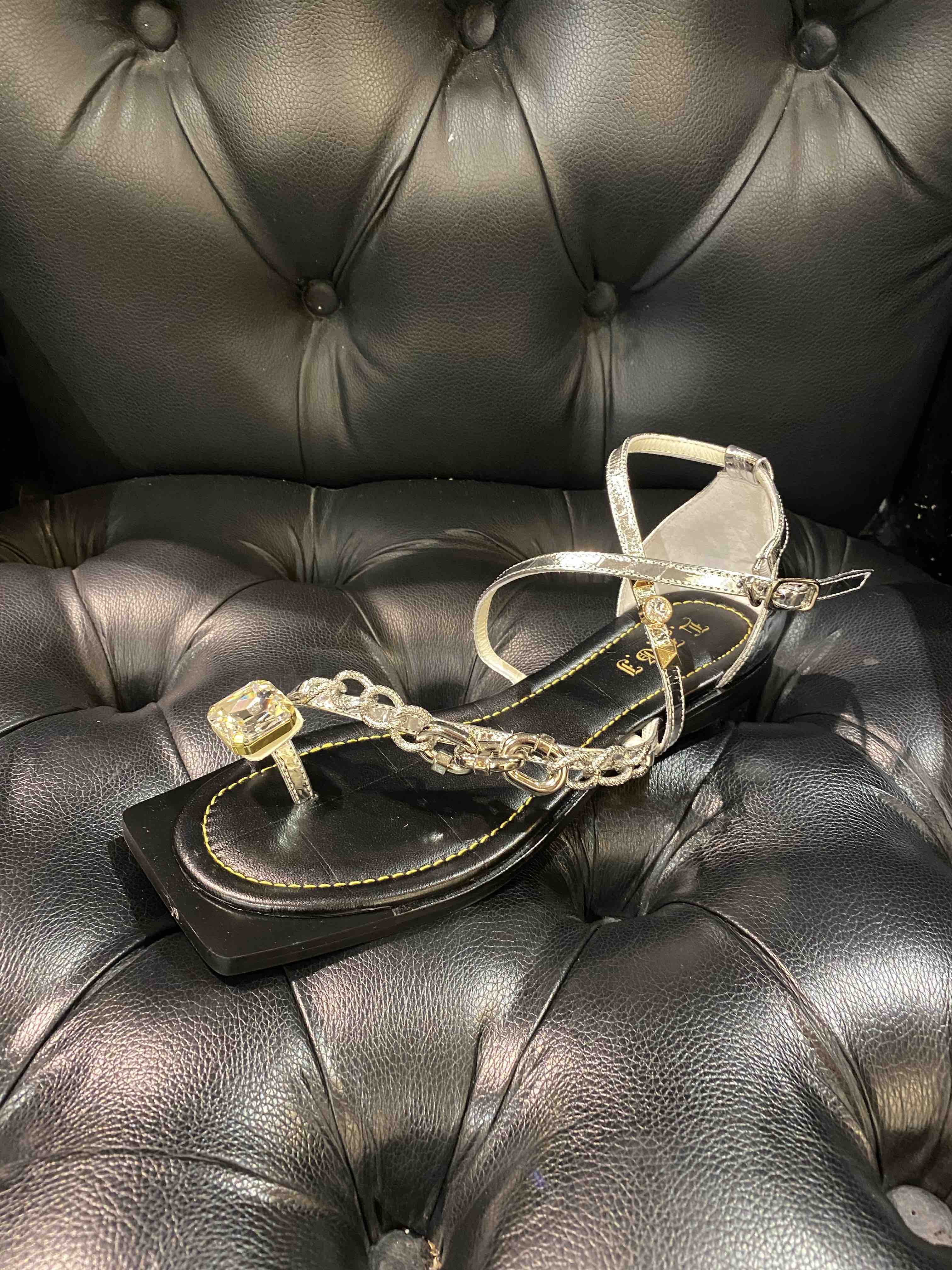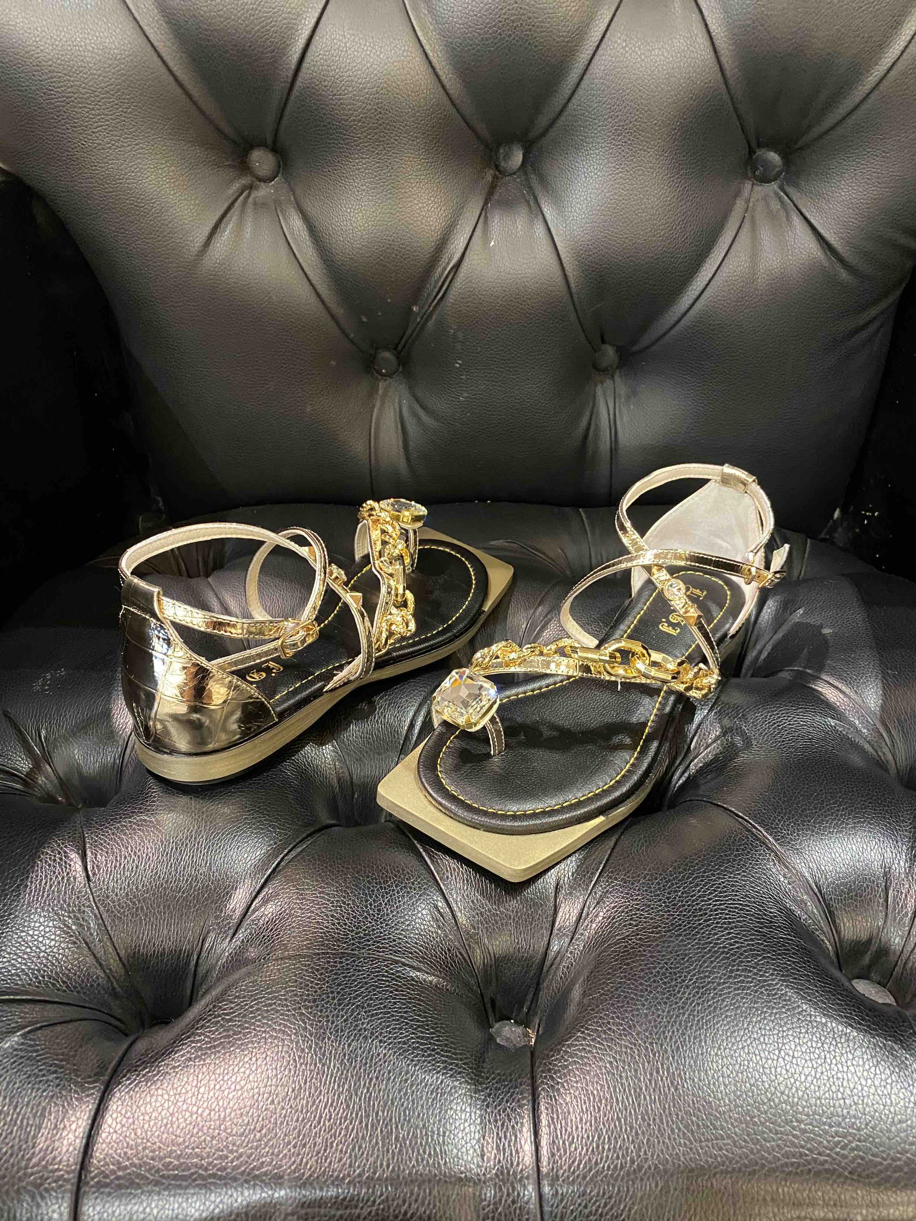 LFGJ 3864 链条露趾凉鞋女平底后拉链休闲度假风女