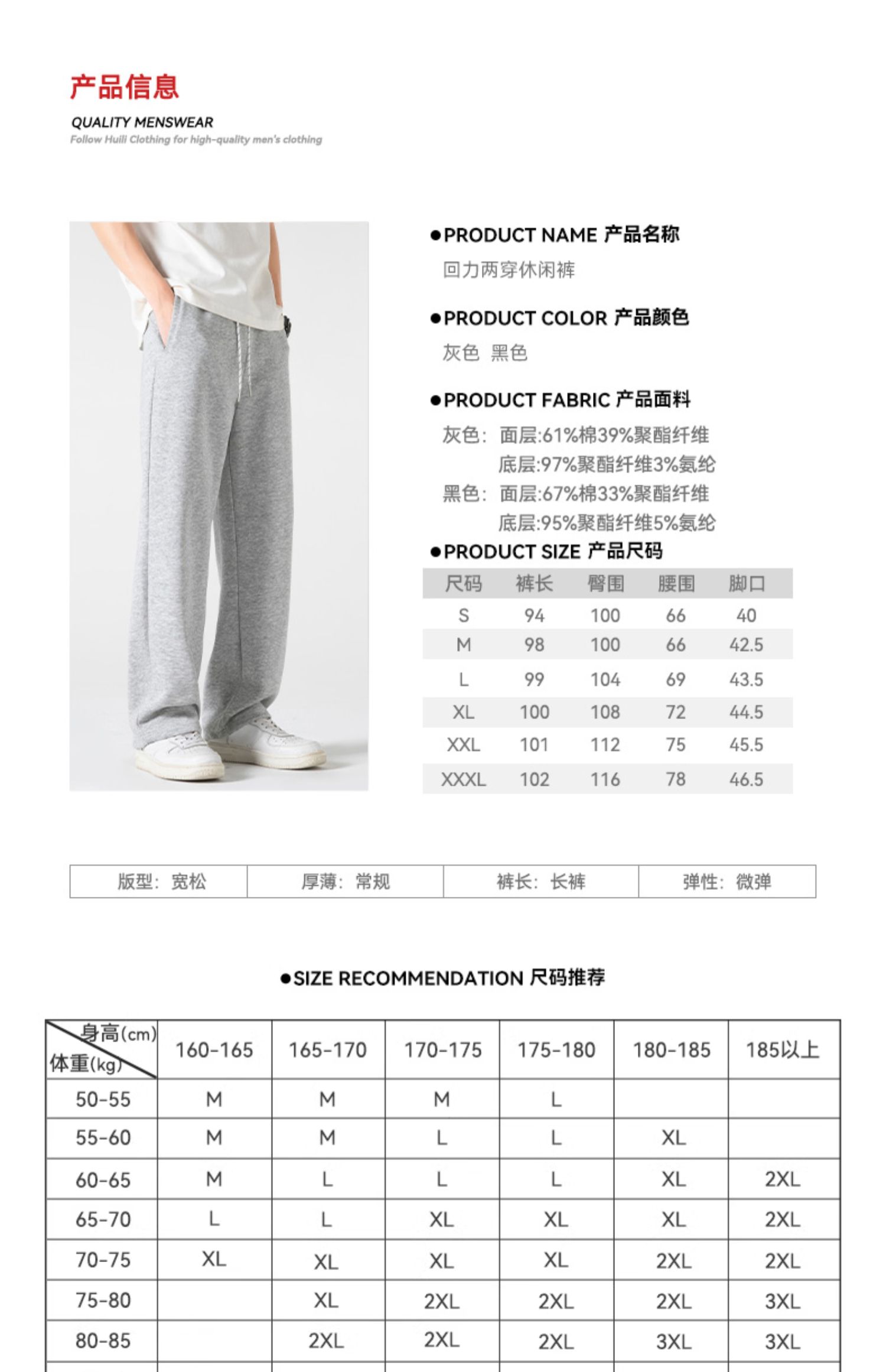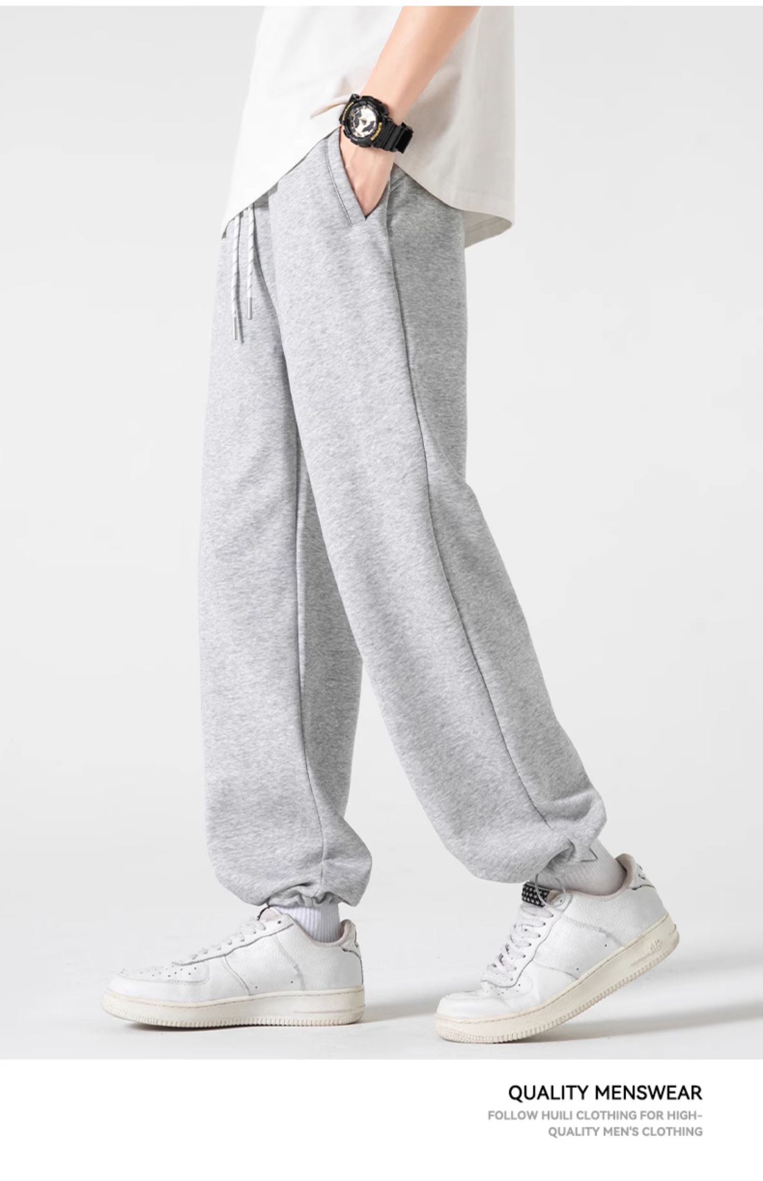 回力裤子男2025春秋款潮流抽绳束脚运动裤直筒宽松卫裤垂感休闲裤