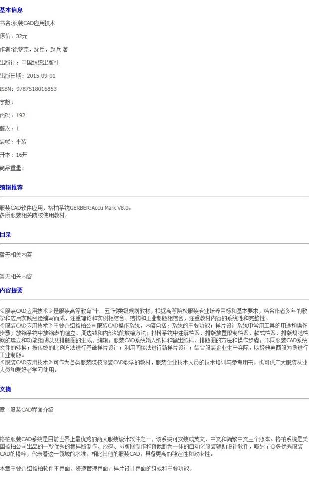 服装CAD应用技术 计算机辅助服饰设计教程 格柏系统 打板自动化制版推板专业教材书籍 服装裁剪自动化智能化女装纸样设计系统研究