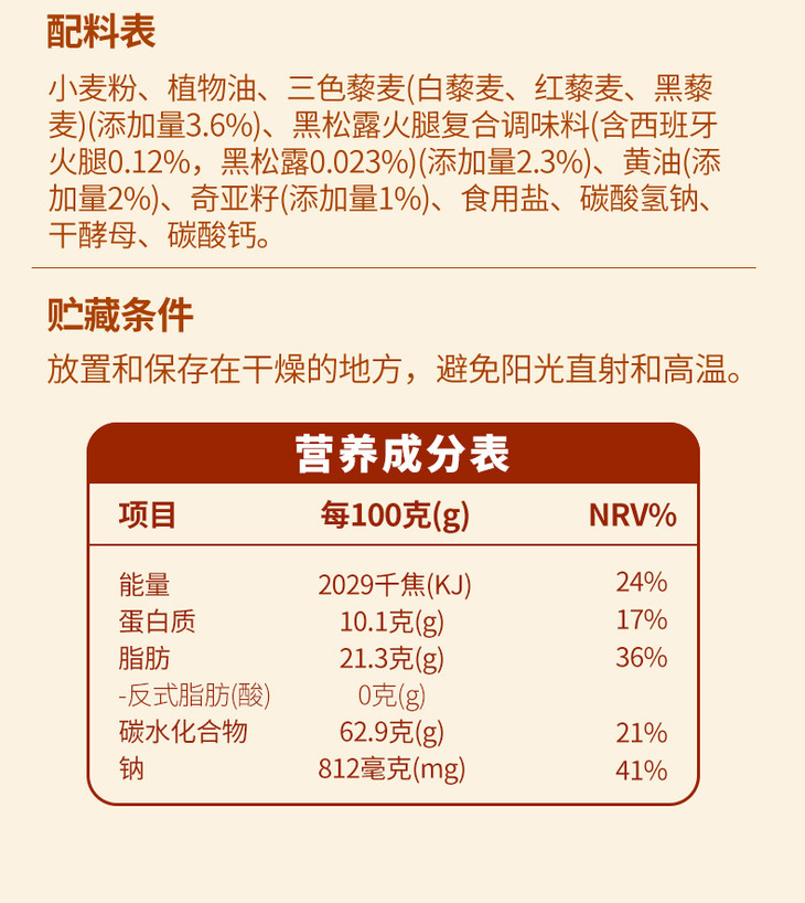 怪力食厂黑松露火腿苏打饼干(藜麦奇亚籽风味)/1盒(20-22小包,共508g)生产日期:8月