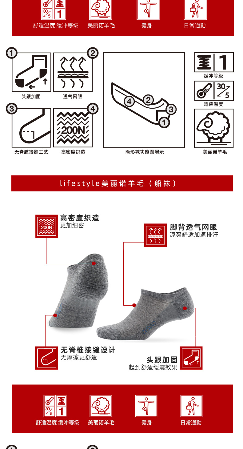 116元/2双起ZEALWOOD赛乐原宿风美利奴羊毛袜子男女浅口夏季防臭透气防滑船袜短袜男女