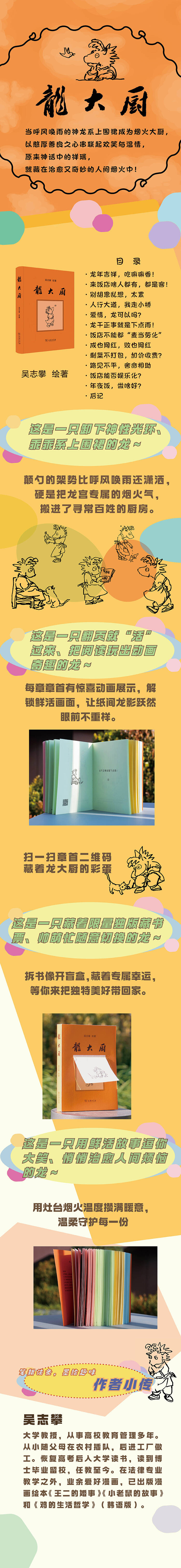 云端神龙收起呼风唤雨的神通,系上围裙成了灶间大厨。它在烟火气里帮孩子追气球,为饭店琐事奔忙,偶尔还会闹进警局——曾经被仰望的祥瑞,如今藏在街巷日常里。翻开书页,独特的动画设计让龙大厨跃然纸上;珍藏此书,随机的独家藏书票更显心意。在一个个好笑又暖心的故事里,藏着龙对人间温柔的守护。