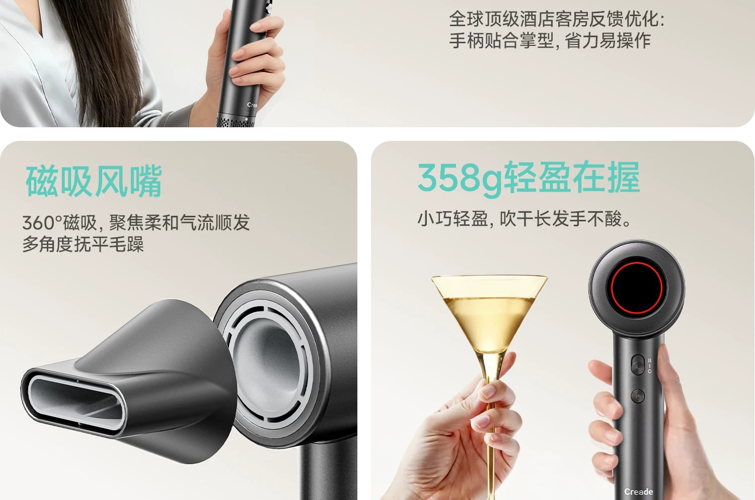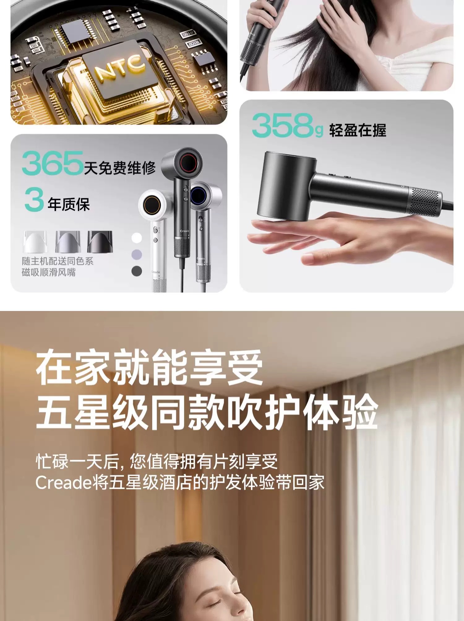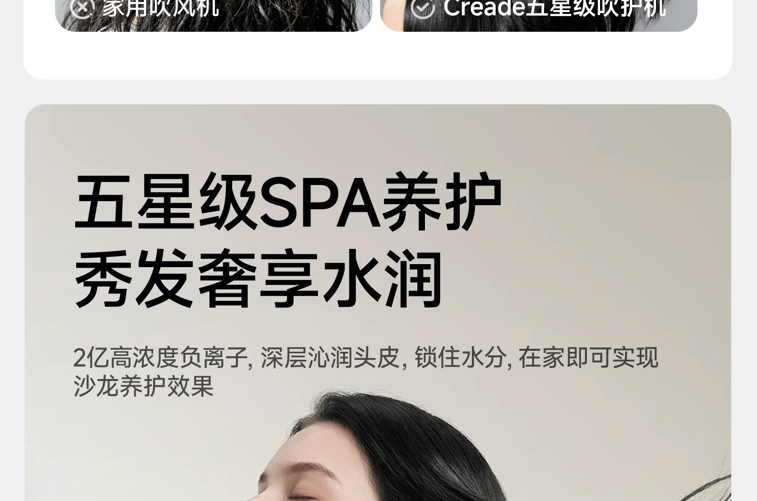 Creade科瑞德高速电吹风机星级酒店同款大风力家用负离子护发风筒