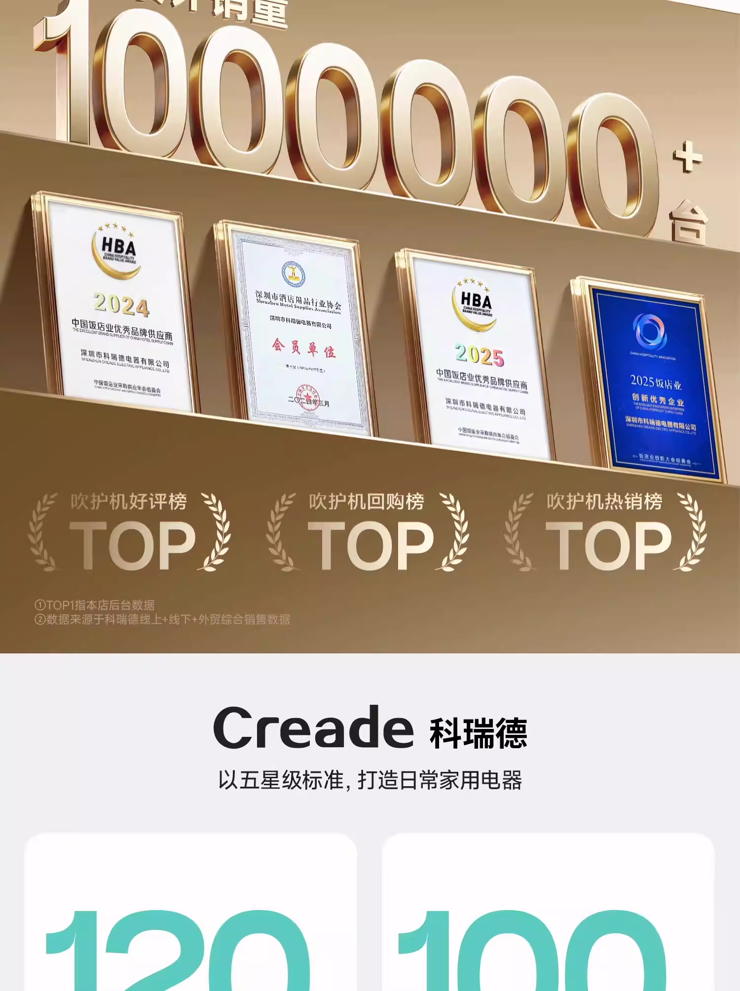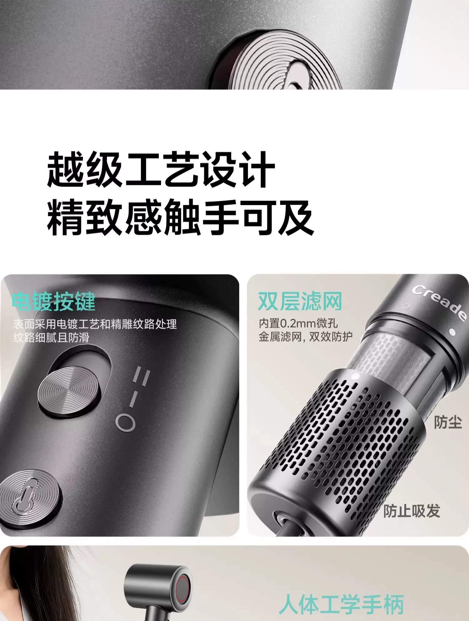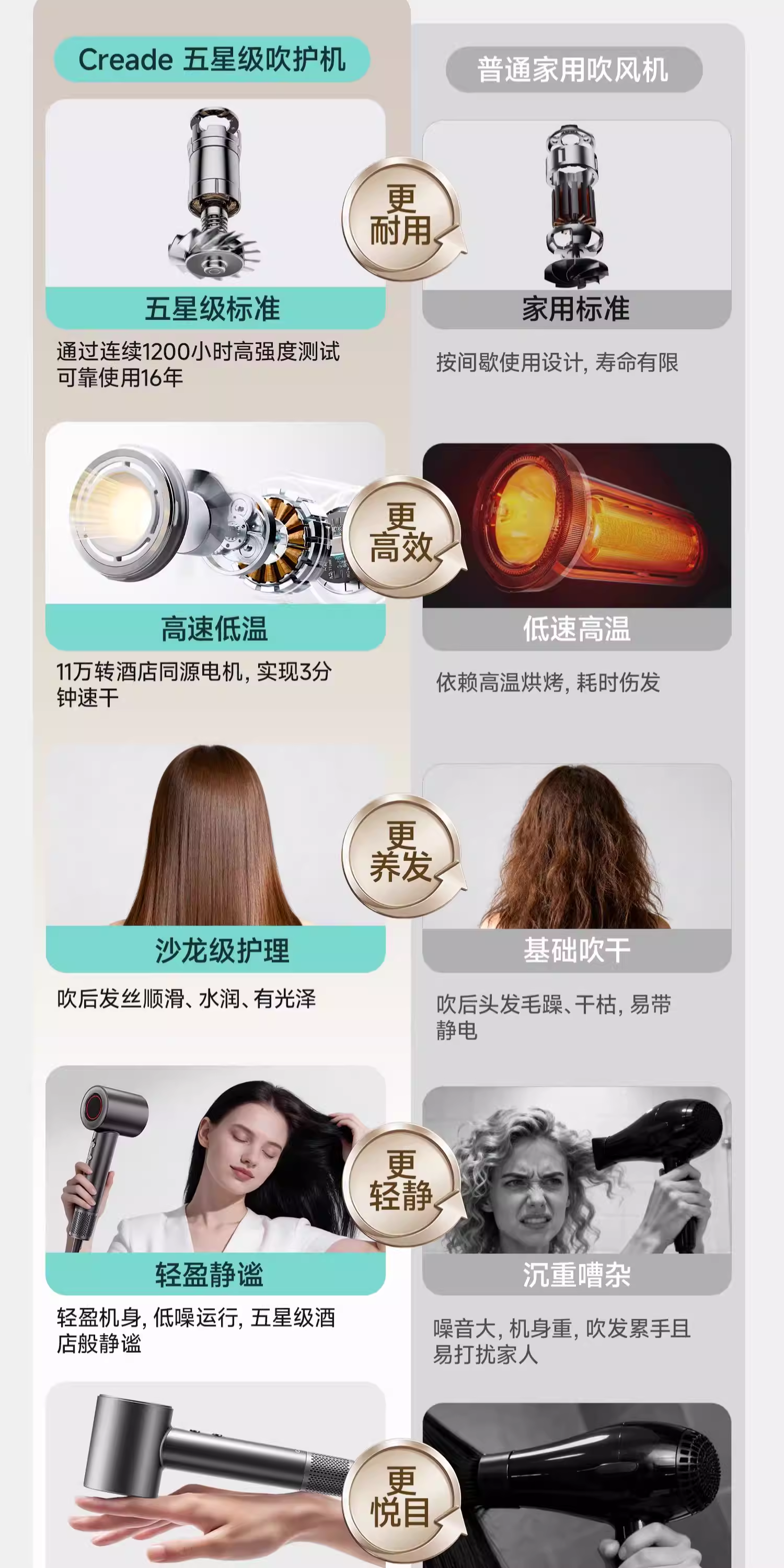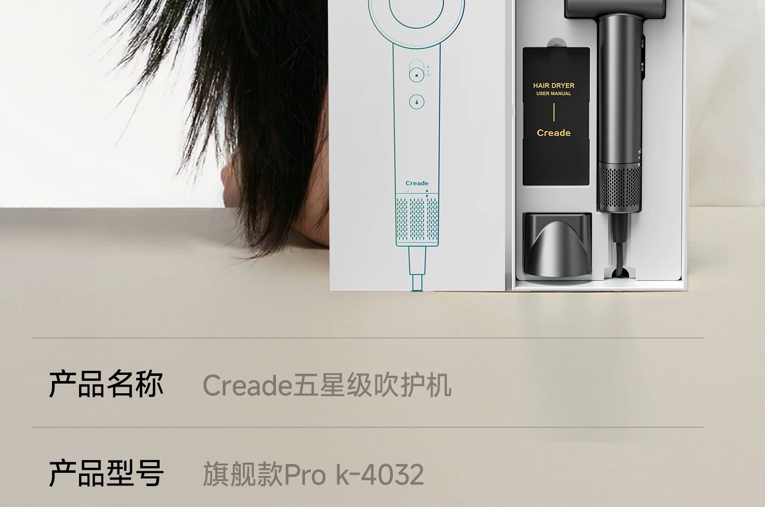 Creade科瑞德高速电吹风机星级酒店同款大风力家用负离子护发风筒