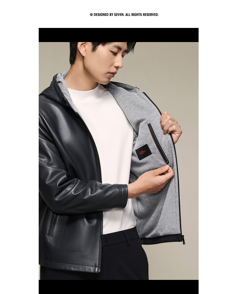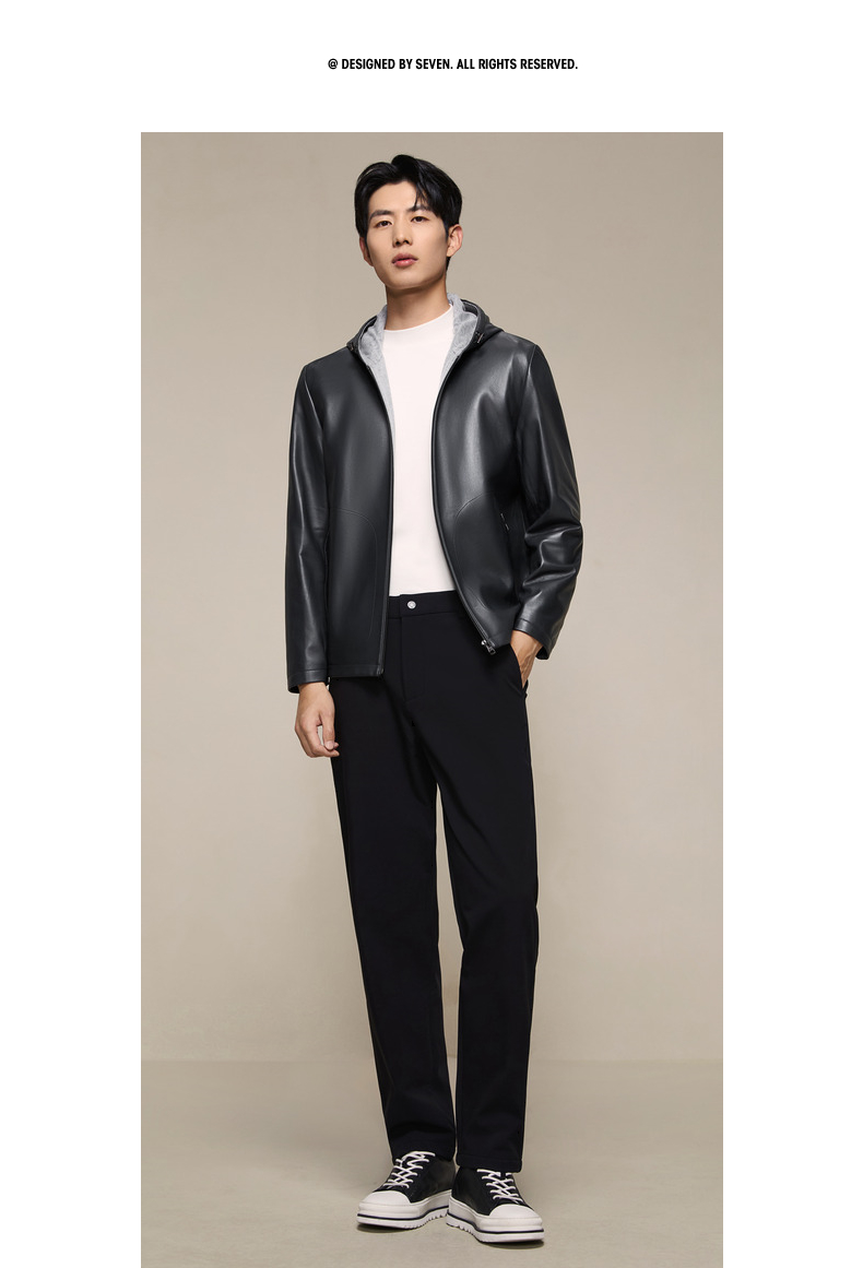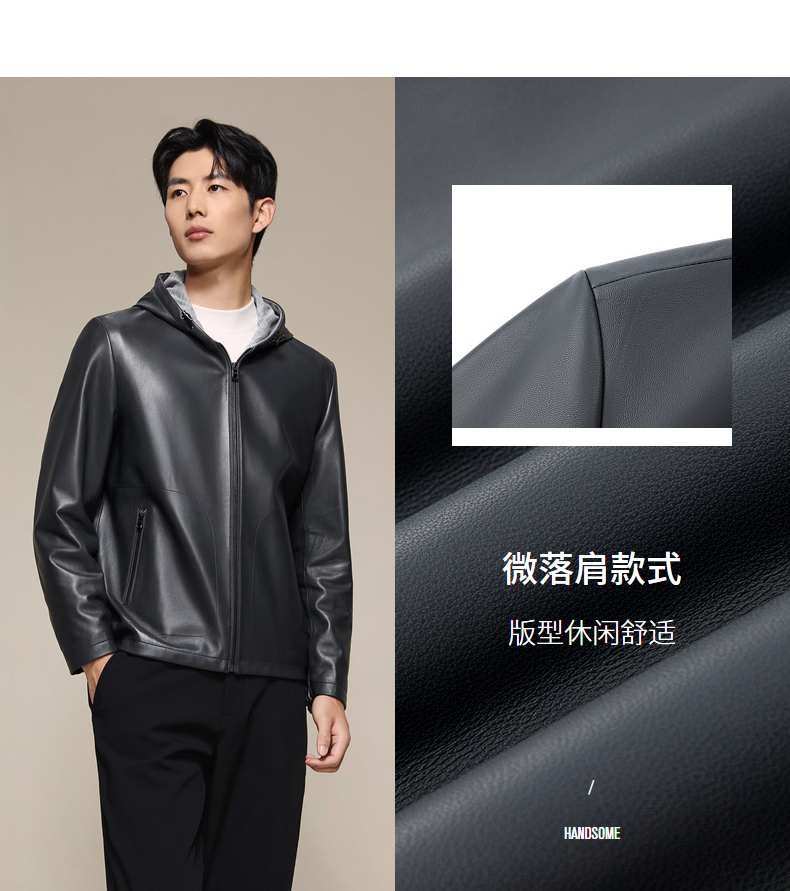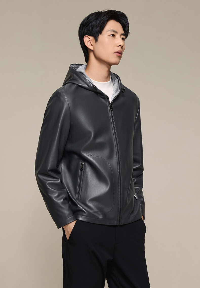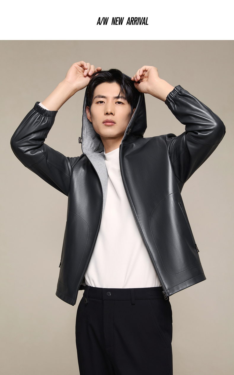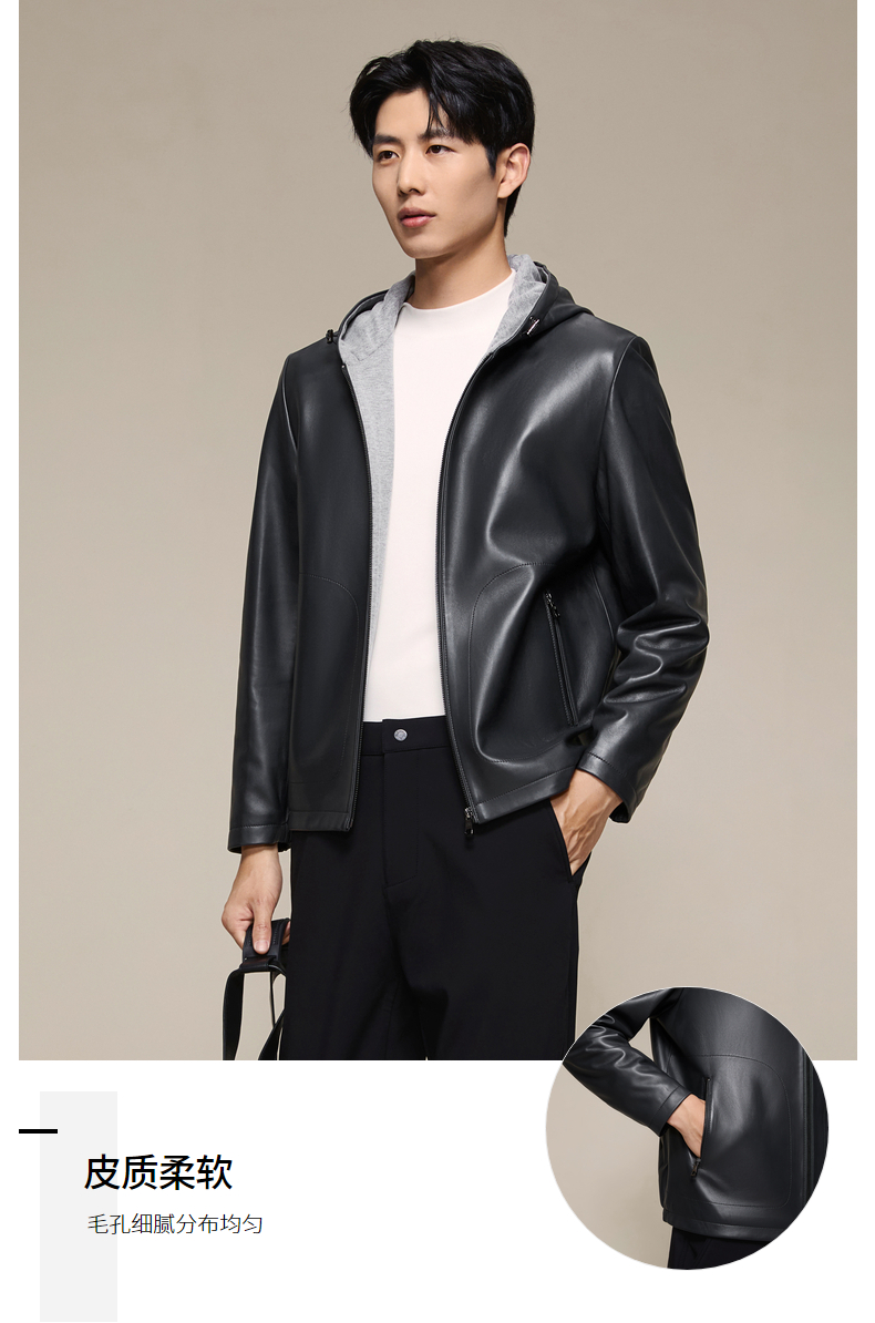 柒牌皮衣男款2025秋冬新款商务休闲外套男士帽领时尚百搭舒适男装129J70560