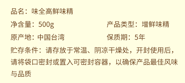 中国台湾味全高鲜味精500g/033650 颗粒均匀快速溶解蔬果萃取