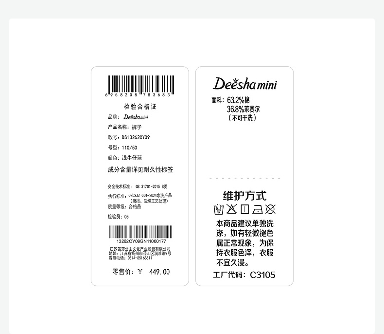 笛莎Deesha 2026年夏季新款小童女童束脚牛仔裤裤子 预售 预计4月8日发货