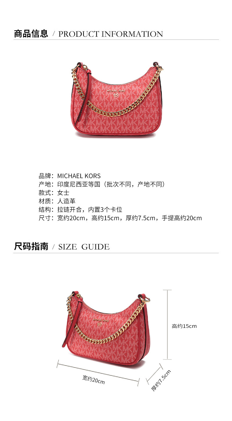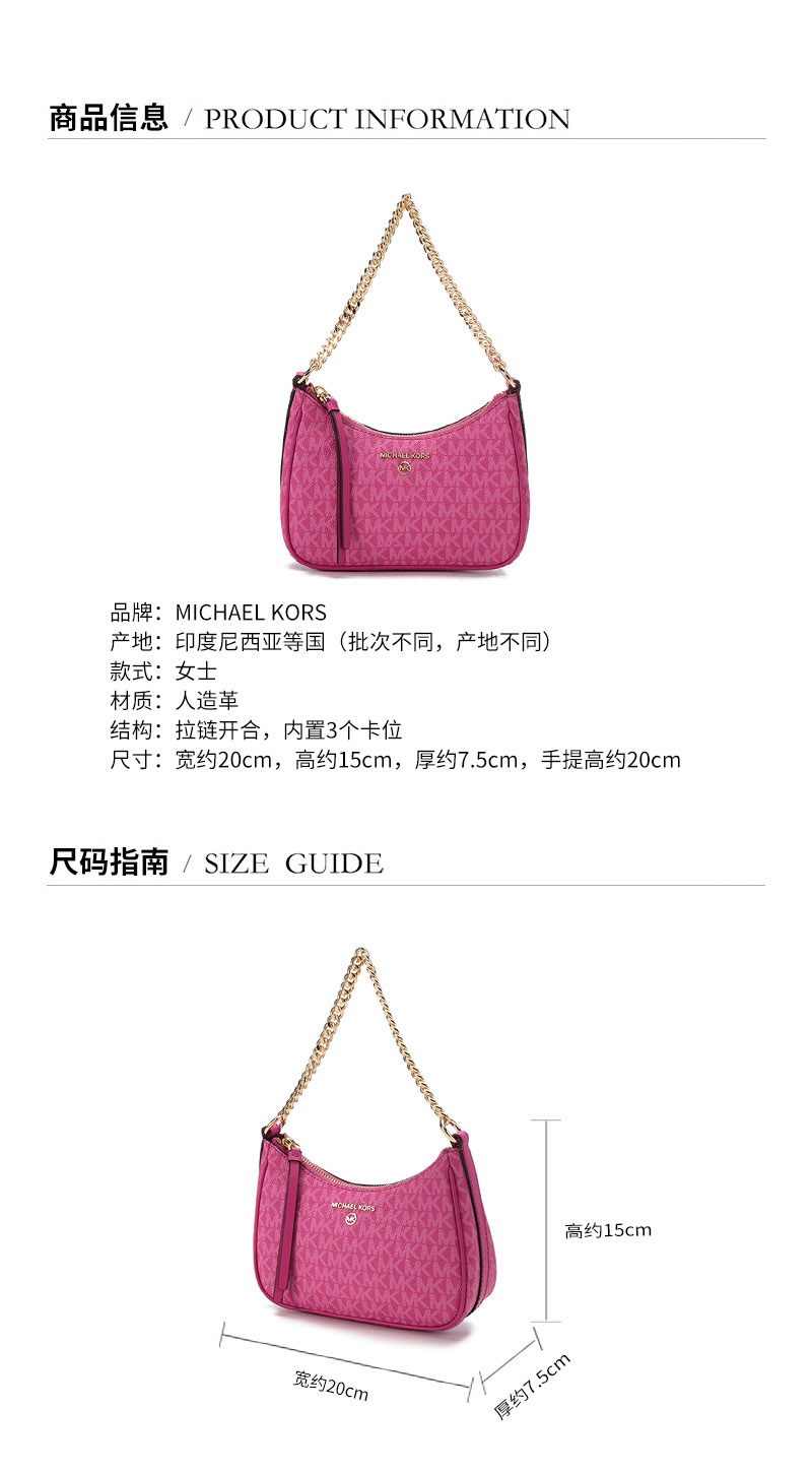 Michael Kors/迈克·科尔斯【22春夏新款】MK女包 JET SET CHARM系列人造革小号手提单肩包腋下包老花 32H1GT9C1V
