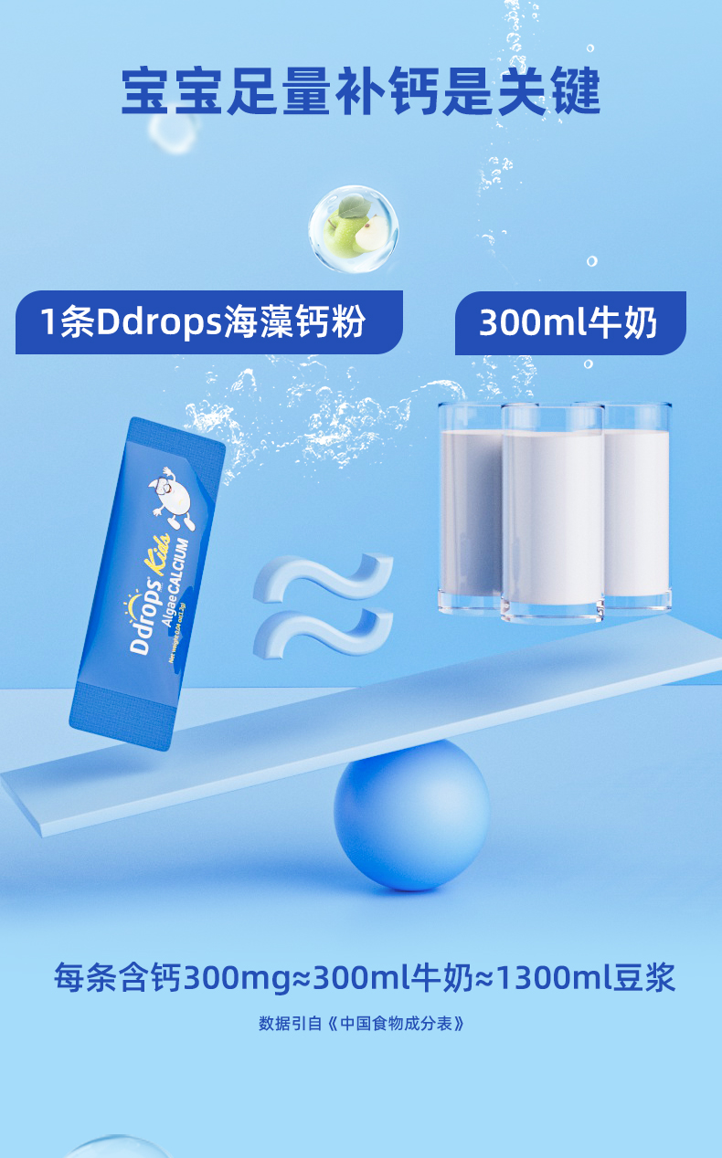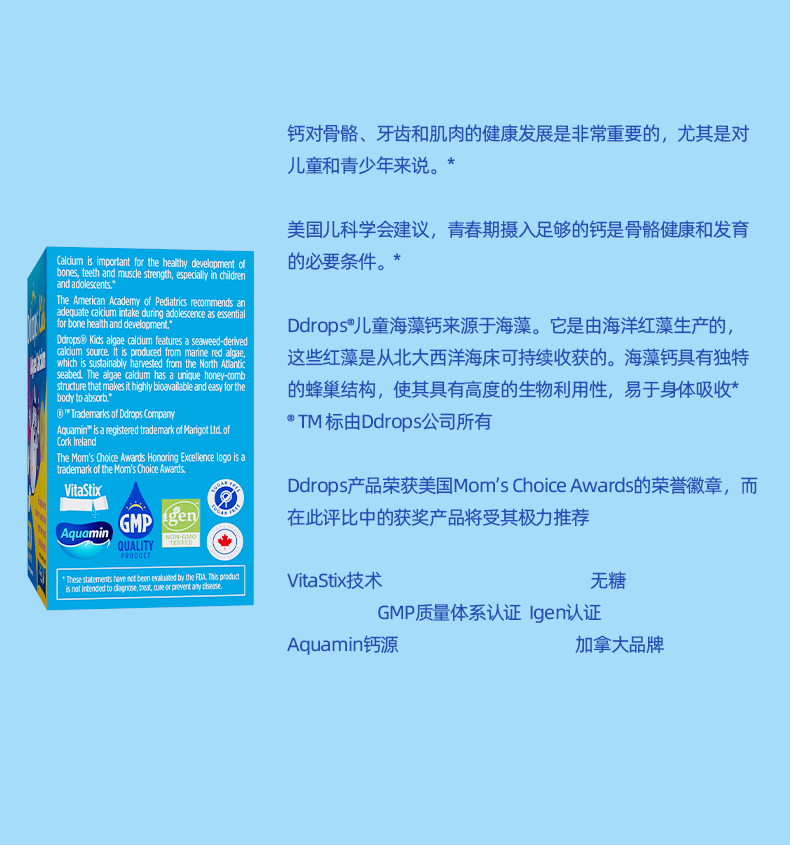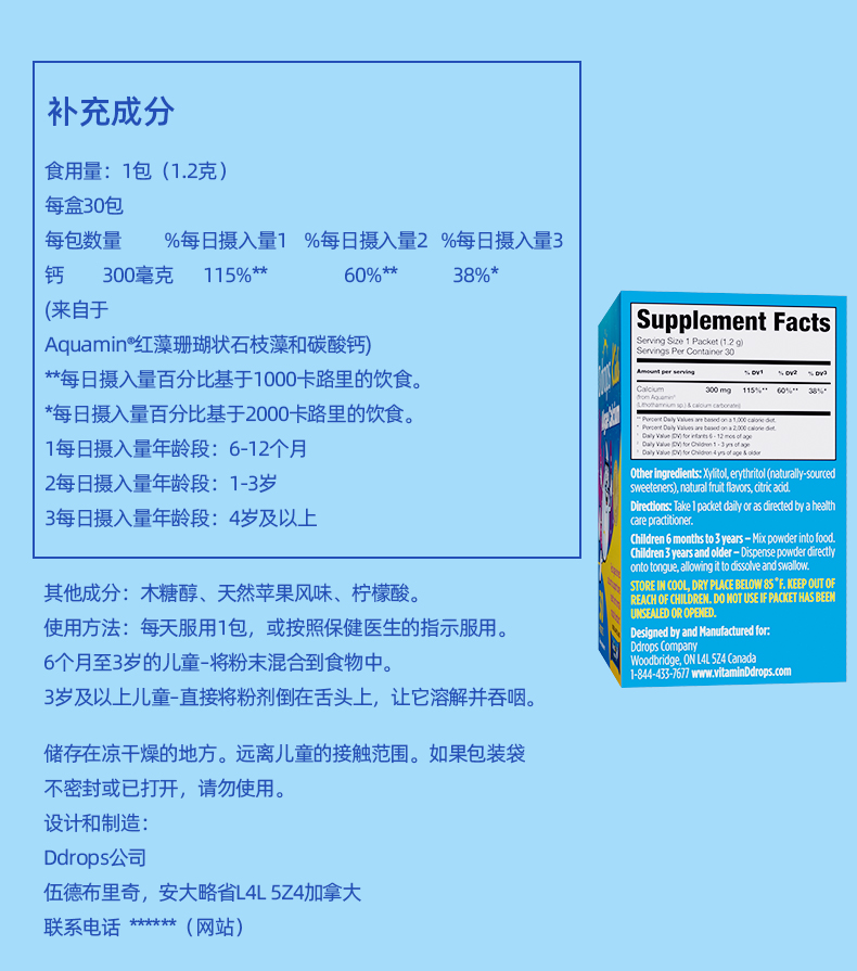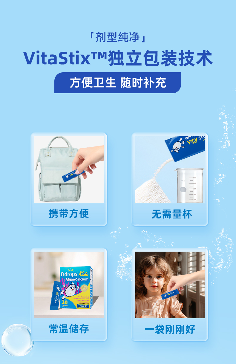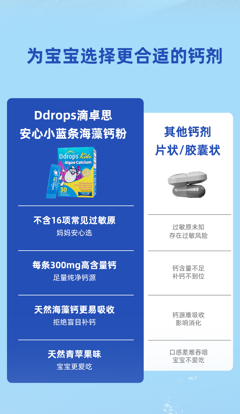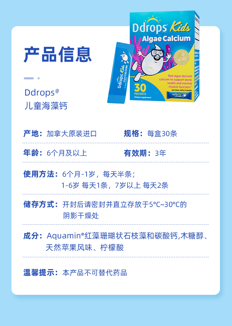 Ddrops滴卓思婴幼儿海藻钙粉剂宝宝补钙 促钙吸收 30袋/盒SC