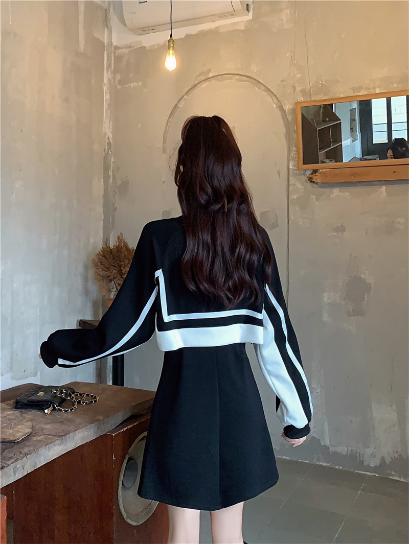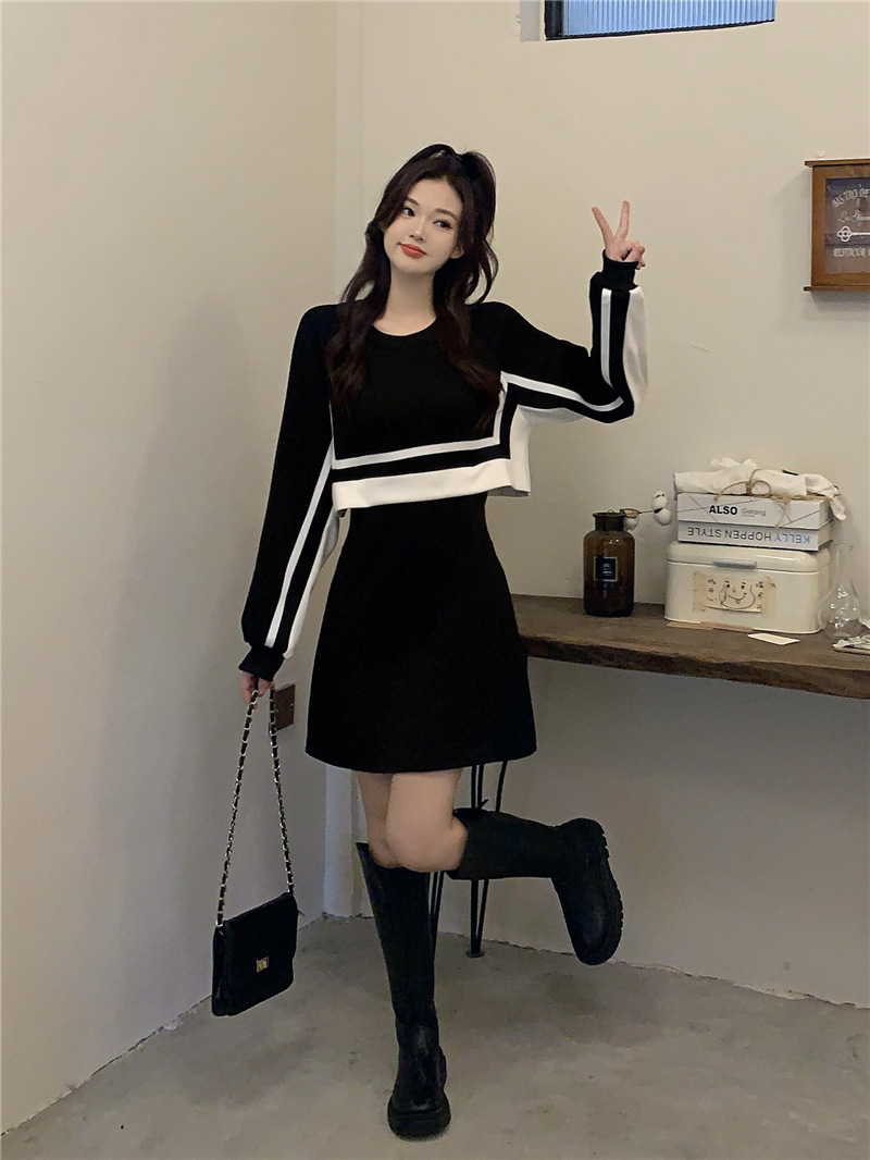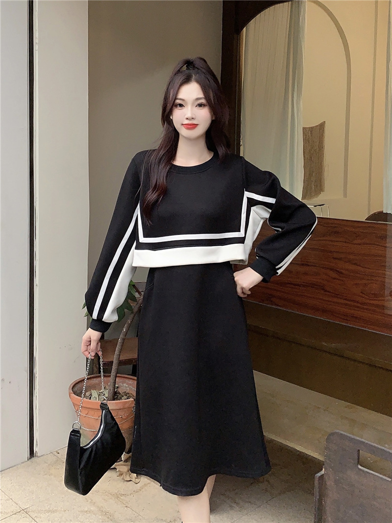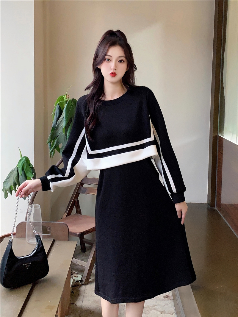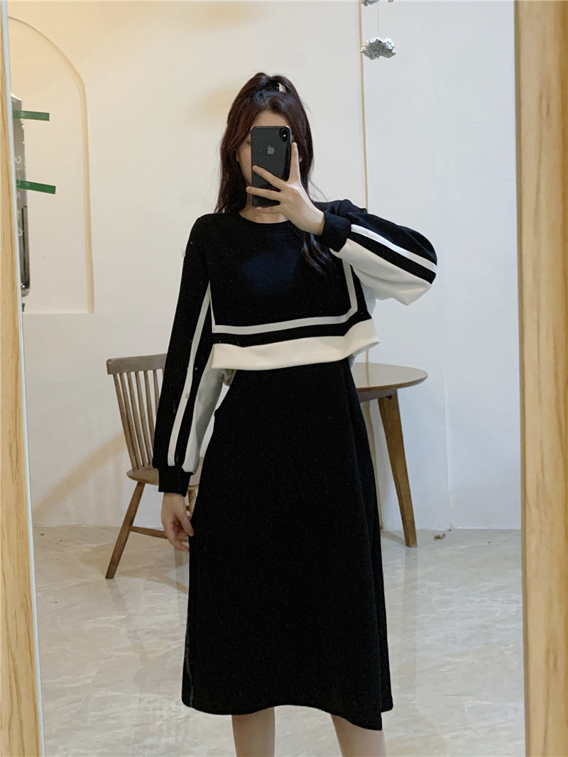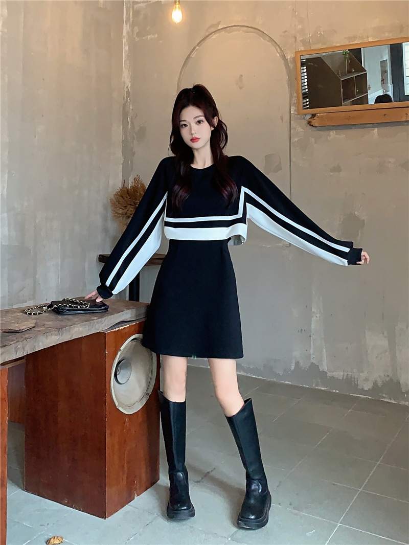 春季【黑白拼接撞色 连衣裙女】设计感 收腰显瘦 假两件卫衣裙子