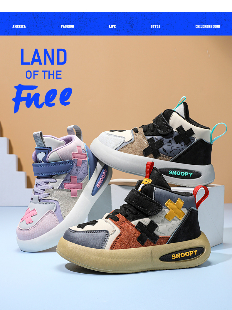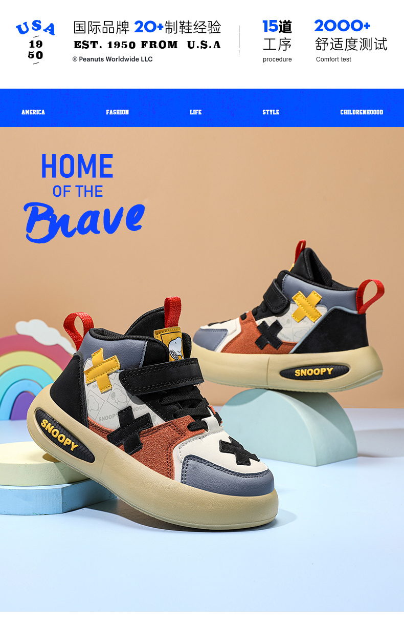 【史努比】儿童休闲鞋男女校园小白鞋高帮运动鞋26-37
